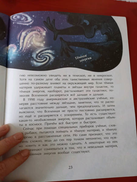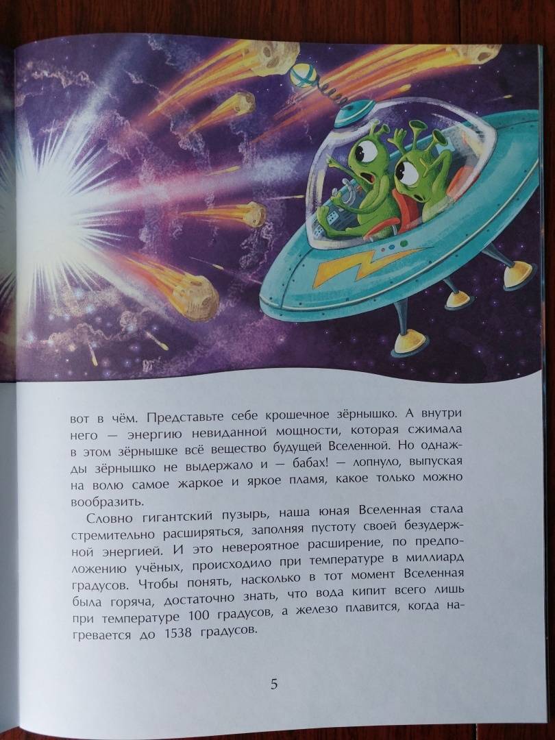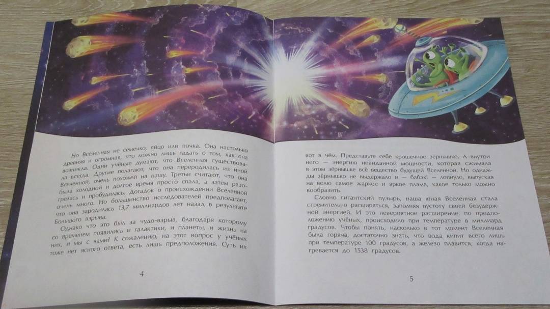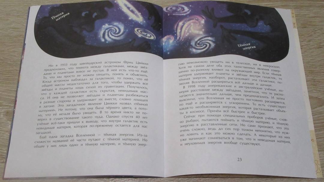 ОписаниеКак рождаются звезды и планеты? Откуда появляются галактики? Как действует гравитация? Что такое чёрные дыры и тёмная энергия, которую невозможно увидеть, и есть ли границы у Космоса? Эта книга о самой популярной версии учёных про возникновение нашей вселенной - теории Большого взрыва.Выпуск 228.2-е издание.Для младшего школьного возраста. Для чтения взрослыми детям.Как рождаются звезды и планеты? Откуда появляются галактики? Как действует гравитация? Что такое чёрные дыры и тёмная энергия, которую невозможно увидеть, и есть ли границы у Космоса? Эта книга о самой популярной версии учёных про возникновение нашей вселенной - теории Большого взрыва.Выпуск 228.2-е издание.Для младшего школьного возраста. Для чтения взрослыми детям.