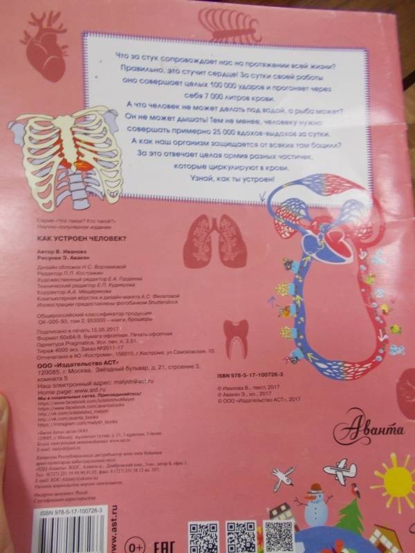ОписаниеКнига популяризатора науки Веры Ивановой "Как устроен человек?" расскажет и объяснит, для чего человек дышит, зачем бьётся сердце, из чего состоит кровь, как устроен организм человека в целом. Книга проиллюстрирована подробными схемами.Также, благодаря практическим советам, вы сможете оставаться здоровым и бодрым на протяжении всей жизни.Для младшего школьного возраста.Книга популяризатора науки Веры Ивановой "Как устроен человек?" расскажет и объяснит, для чего человек дышит, зачем бьётся сердце, из чего состоит кровь, как устроен организм человека в целом. Книга проиллюстрирована подробными схемами.Также, благодаря практическим советам, вы сможете оставаться здоровым и бодрым на протяжении всей жизни.Для младшего школьного возраста.