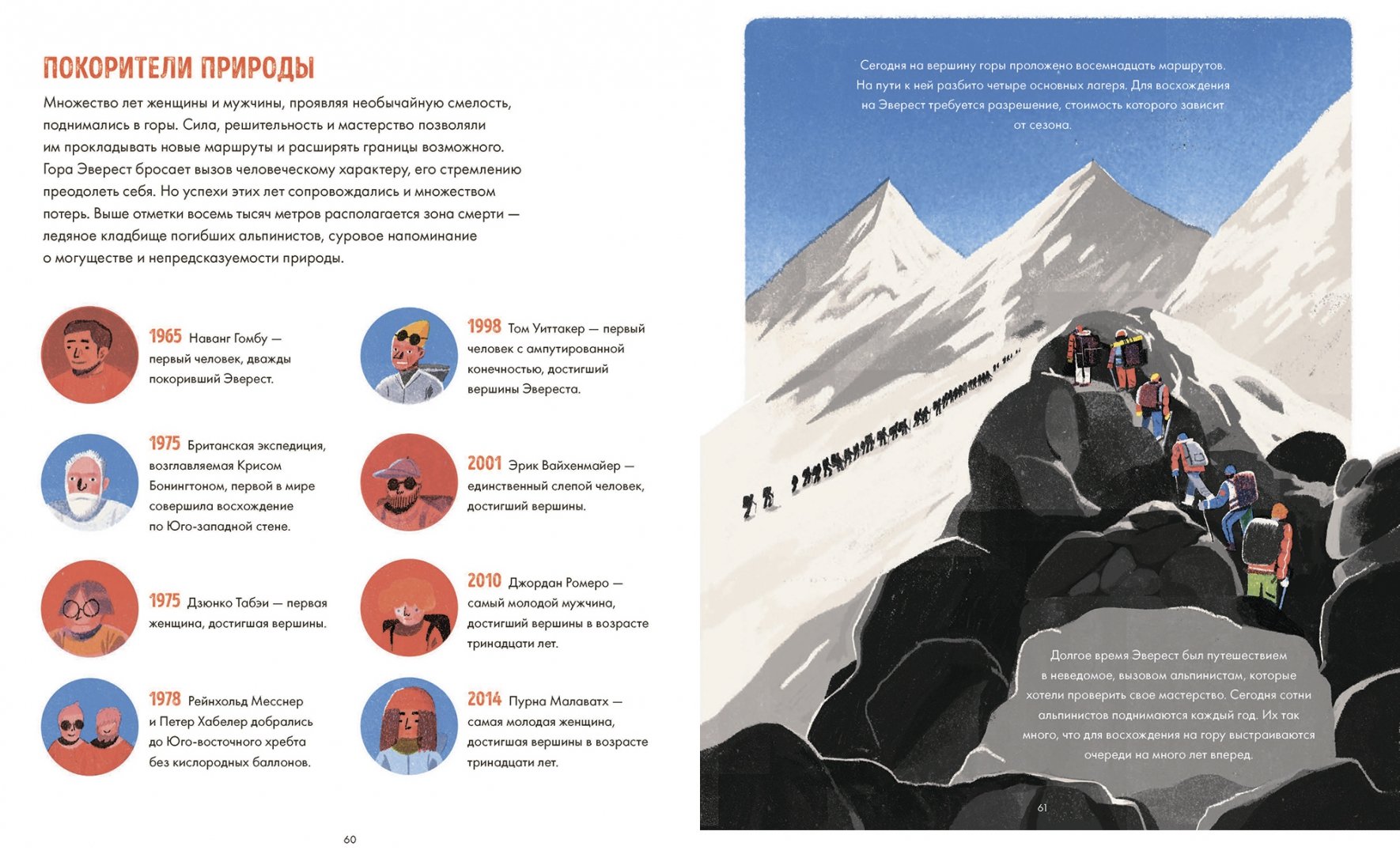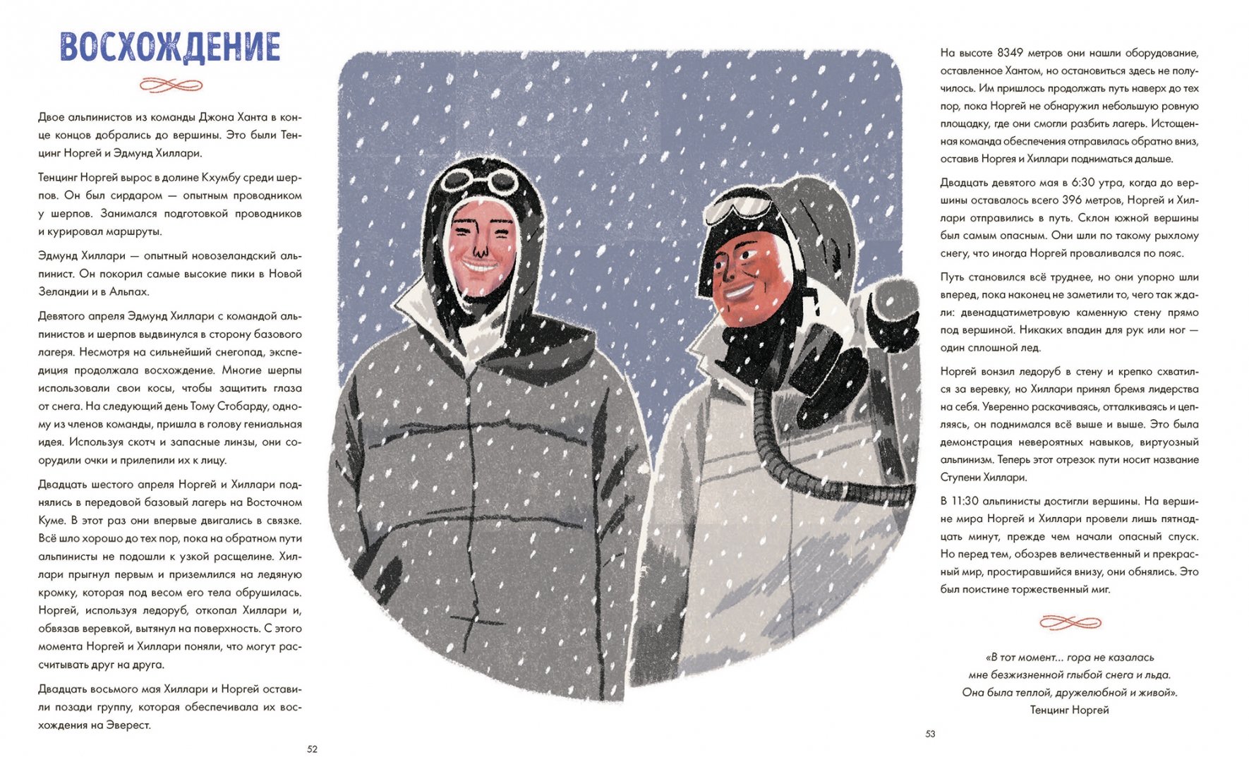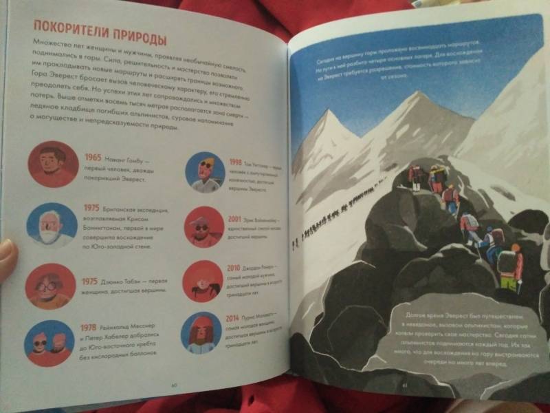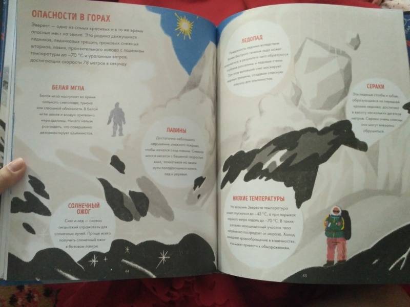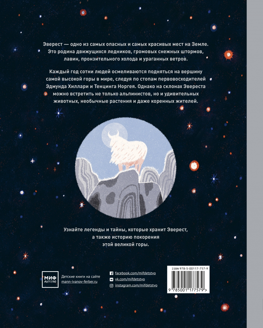 ОписаниеО книгеУверены, что на вопрос, какая гора в мире самая высокая, вы ответите не задумываясь. Но что еще вы знаете об Эвересте? Может, где находится эта горная вершина, как и когда она образовалась? Или знаете имена первовосходителей? Назовете удивительных животных и растения, которые обитают на склонах этой горы?Если вы не знаете ответов на эти вопросы - эта книга для вас. Ведь Эверест - одно из самых опасных и красивых мест на Земле. Это родина движущихся ледников, громовых снежных штормов, лавин, пронзительного холода и ураганных ветров. Тибетцы называют его Джомолунгмой, что означает "Божественная Мать жизненной энергии". А в Непале гора известна как Сагарматха, "Богиня небес".Узнайте легенды и тайны, которые хранит Эверест, а также историю покорения этой великой горы.Для кого эта книгаДля всех увлеченных миром и его возможностями детей в возрасте от 6 до 10 лет.Об авторахСангма Фрэнсис - писатель. Живет в Берлине.Лиск Фэнг - иллюстратор-фрилансер, обладатель нескольких профессиональных наград. Лиск родилась в Китае, сейчас живет в Нью-Йорке. Высшее художественное образование получила в Колледже искусств при институте Мэриленда. Во время учебы ее заказчиками были The New Yorker, Apple, Penguin, Airbnb, The New York Times, Chanel и другие. "Эверест" - первая книга, которую она проиллюстрировала. Сейчас на ее счету уже несколько детских книг.СвернутьО книгеУверены, что на вопрос, какая гора в мире самая высокая, вы ответите не задумываясь. Но что еще вы знаете об Эвересте? Может, где находится эта горная вершина, как и когда она образовалась? Или знаете имена первовосходителей? Назовете удивительных животных и растения, которые обитают на склонах этой горы?Если вы не знаете ответов на эти вопросы - эта книга для вас. Ведь Эверест - одно из самых опасных и красивых мест на Земле. Это родина движущихся ледников, громовых снежных штормов, лавин, пронзительного холода и ураганных ветров. Тибетцы называют его Джомолунгмой, что означает "Божественная Мать жизненной энергии". А в Непале гора известна как Сагарматха, "Богиня небес".Узнайте легенды и тайны, которые хранит Эверест, а также историю покорения этой великой горы.Для кого эта книгаДля всех увлеченных миром и его возможностями детей в возрасте от 6 до 10 лет.Об авторахСангма Фрэнсис - писатель. Живет в Берлине.Лиск Фэнг - иллюстратор-фрилансер, обладатель нескольких профессиональных наград. Лиск родилась в Китае, сейчас живет в Нью-Йорке. Высшее художественное образование получила в Колледже искусств при институте Мэриленда. Во время учебы ее заказчиками были The New Yorker, Apple, Penguin, Airbnb, The New York Times, Chanel и другие. "Эверест" - первая книга, которую она проиллюстрировала. Сейчас на ее счету уже несколько детских книг.СвернутьСвернуть