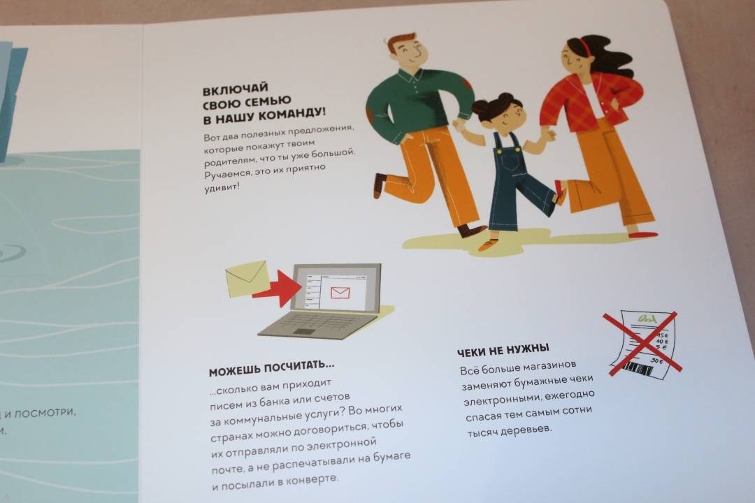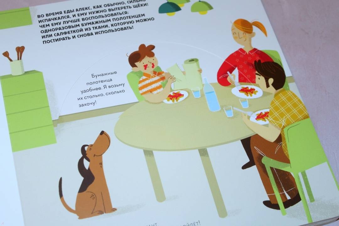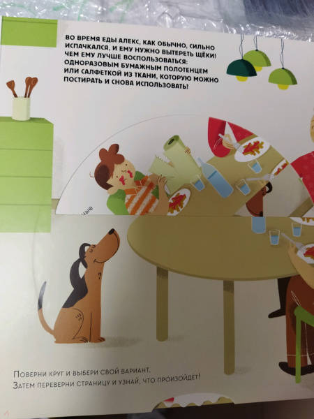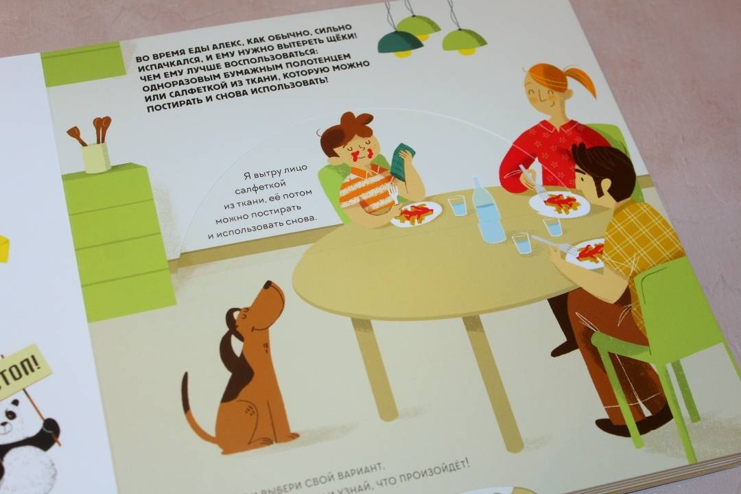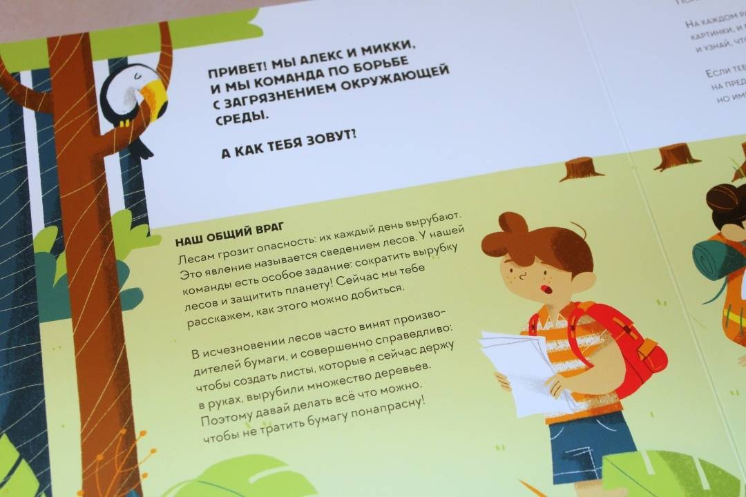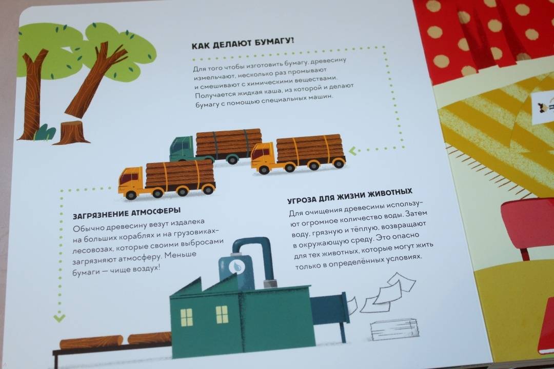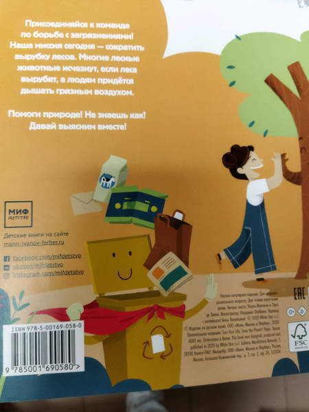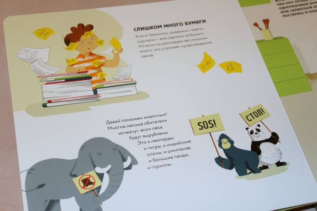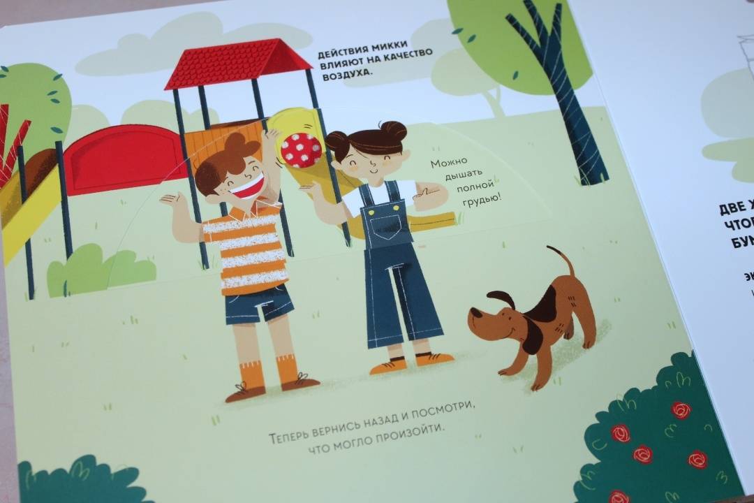 ОписаниеЭта книга-игра научит ребенка думать о том, как наши решения влияют на мир, в котором мы живем. Ребенок узнает, из чего делают бумагу, почему нужно беречь лес и как использовать бумажные изделия повторно.На каждом развороте вы найдете интерактивное колесо: вращая его, ребенок может выбрать один из вариантов решения проблемы, а на следующем развороте оценить результат, понять, как его решение повлияло на окружающую среду. Если произошло что-то плохое, ребенок всегда может извлечь урок из этого опыта и начать все сначала.Из книги ребенок узнает много нового об окружающей среде и о простых способах не тратить бумагу понапрасну - это поможет уберечь лес. Многие лесные животные исчезнут, если леса вырубят, а людям придется дышать грязным воздухом, поэтому так важно заботиться о природе.Фишки книгиИграя с книгой, ребенок учится размышлять, задавать вопросы и подвергать сомнению то, что он видит.Интерактивное колесо - на каждом развороте: ребенок сразу увидит, как его решения влияют на окружающую среду.В книге много идей, как использовать изделия из бумаги повторно. Например, смастерить бусы из страниц журнала или сделать игрушку из втулки туалетной бумаги.Для кого эта книгаДля родителей, которые хотят рассказать детям об экологии, но не знают как.Для детей от 4 лет.Для всех, кто беспокоится о будущем нашей планеты и хочет узнать, как мы можем ей помочь.СвернутьЭта книга-игра научит ребенка думать о том, как наши решения влияют на мир, в котором мы живем. Ребенок узнает, из чего делают бумагу, почему нужно беречь лес и как использовать бумажные изделия повторно.На каждом развороте вы найдете интерактивное колесо: вращая его, ребенок может выбрать один из вариантов решения проблемы, а на следующем развороте оценить результат, понять, как его решение повлияло на окружающую среду. Если произошло что-то плохое, ребенок всегда может извлечь урок из этого опыта и начать все сначала.Из книги ребенок узнает много нового об окружающей среде и о простых способах не тратить бумагу понапрасну - это поможет уберечь лес. Многие лесные животные исчезнут, если леса вырубят, а людям придется дышать грязным воздухом, поэтому так важно заботиться о природе.Фишки книгиИграя с книгой, ребенок учится размышлять, задавать вопросы и подвергать сомнению то, что он видит.Интерактивное колесо - на каждом развороте: ребенок сразу увидит, как его решения влияют на окружающую среду.В книге много идей, как использовать изделия из бумаги повторно. Например, смастерить бусы из страниц журнала или сделать игрушку из втулки туалетной бумаги.Для кого эта книгаДля родителей, которые хотят рассказать детям об экологии, но не знают как.Для детей от 4 лет.Для всех, кто беспокоится о будущем нашей планеты и хочет узнать, как мы можем ей помочь.СвернутьСвернуть