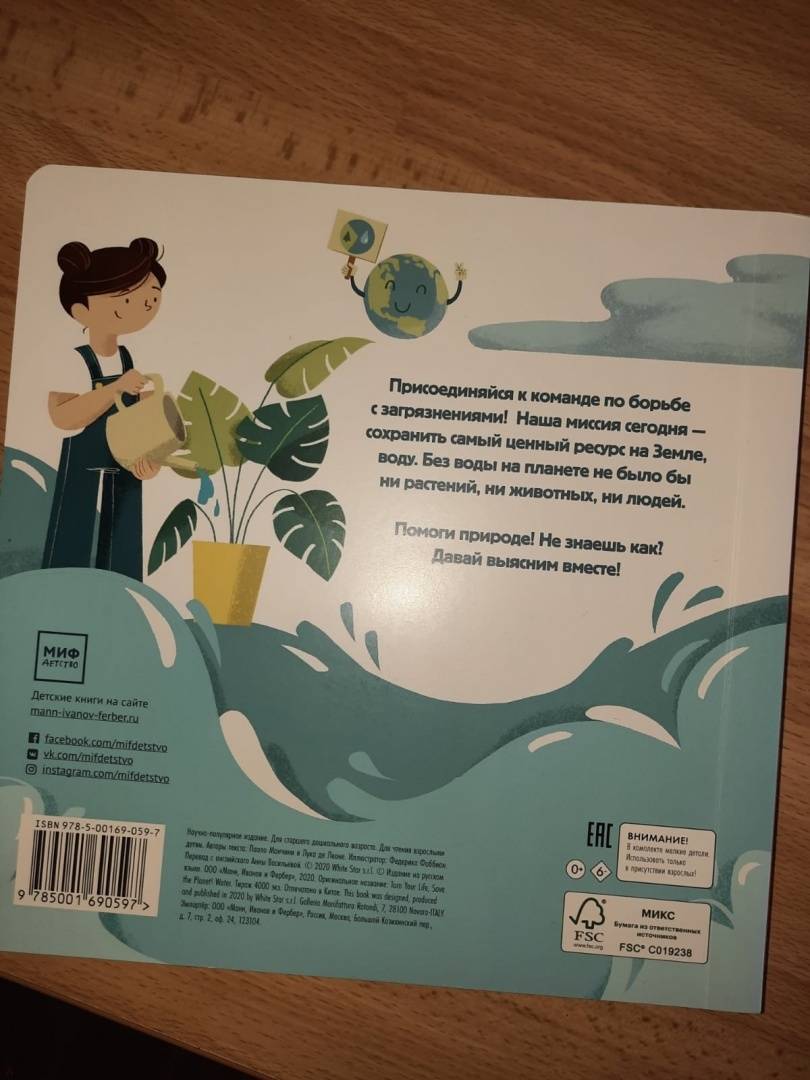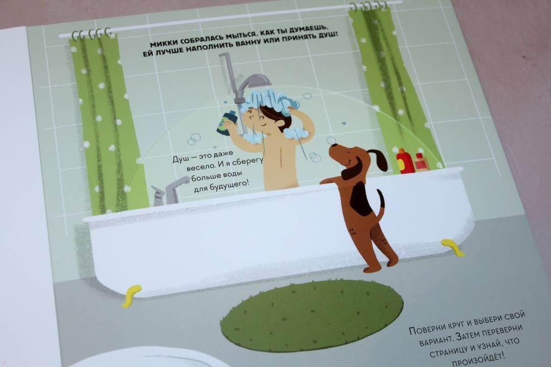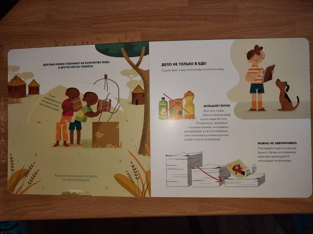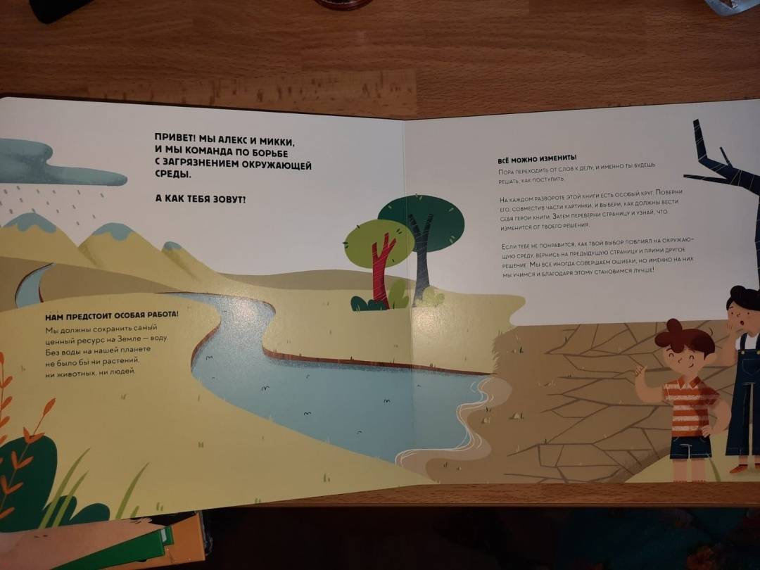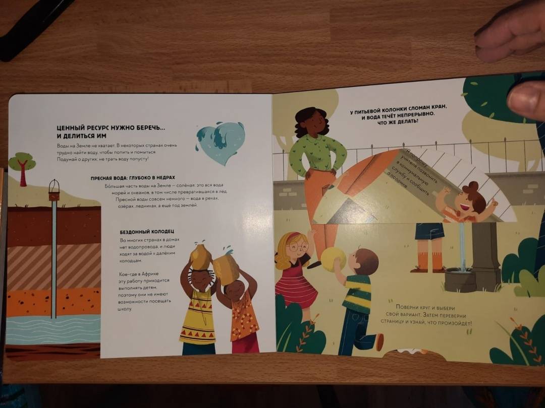 ОписаниеЭта книга-игра научит ребенка думать о том, как наши решения влияют на мир, в котором мы живем. Ребенок узнает, почему нужно беречь воду и как сохранить ее чистой.На каждом развороте вы найдете интерактивное колесо: вращая его, ребенок может выбрать один из вариантов решения проблемы, а на следующем развороте оценить результат, понять, как его решение повлияло на окружающую среду. Если произошло что-то плохое, ребенок всегда может извлечь урок из этого опыта и начать все сначала.Из книги ребенок узнает много нового об окружающей среде и о простых способах сохранить важный ресурс на планете — воду. Без нее на планете не было бы ни растений, ни животных, ни людей. Вот почему так важно заботиться о состоянии воды.Фишки книгиИграя с книгой, ребенок учится размышлять, задавать вопросы и подвергать сомнению то, что он видит.Интерактивное колесо — на каждом развороте: ребенок сразу увидит, как его решения влияют на окружающую среду.Для кого эта книгаДля родителей, которые хотят рассказать детям об экологии, но не знают как.Для детей от 4 лет.Для всех, кто беспокоится о будущем нашей планеты и хочет узнать, как мы можем ей помочь.СвернутьЭта книга-игра научит ребенка думать о том, как наши решения влияют на мир, в котором мы живем. Ребенок узнает, почему нужно беречь воду и как сохранить ее чистой.На каждом развороте вы найдете интерактивное колесо: вращая его, ребенок может выбрать один из вариантов решения проблемы, а на следующем развороте оценить результат, понять, как его решение повлияло на окружающую среду. Если произошло что-то плохое, ребенок всегда может извлечь урок из этого опыта и начать все сначала.Из книги ребенок узнает много нового об окружающей среде и о простых способах сохранить важный ресурс на планете — воду. Без нее на планете не было бы ни растений, ни животных, ни людей. Вот почему так важно заботиться о состоянии воды.Фишки книгиИграя с книгой, ребенок учится размышлять, задавать вопросы и подвергать сомнению то, что он видит.Интерактивное колесо — на каждом развороте: ребенок сразу увидит, как его решения влияют на окружающую среду.Для кого эта книгаДля родителей, которые хотят рассказать детям об экологии, но не знают как.Для детей от 4 лет.Для всех, кто беспокоится о будущем нашей планеты и хочет узнать, как мы можем ей помочь.СвернутьСвернуть