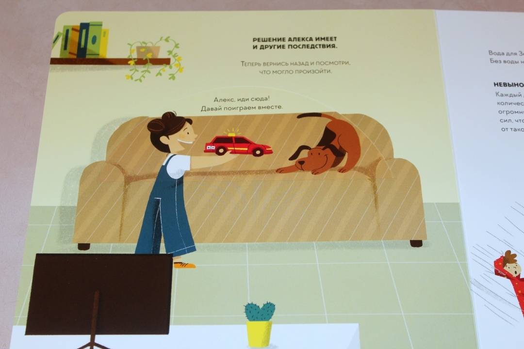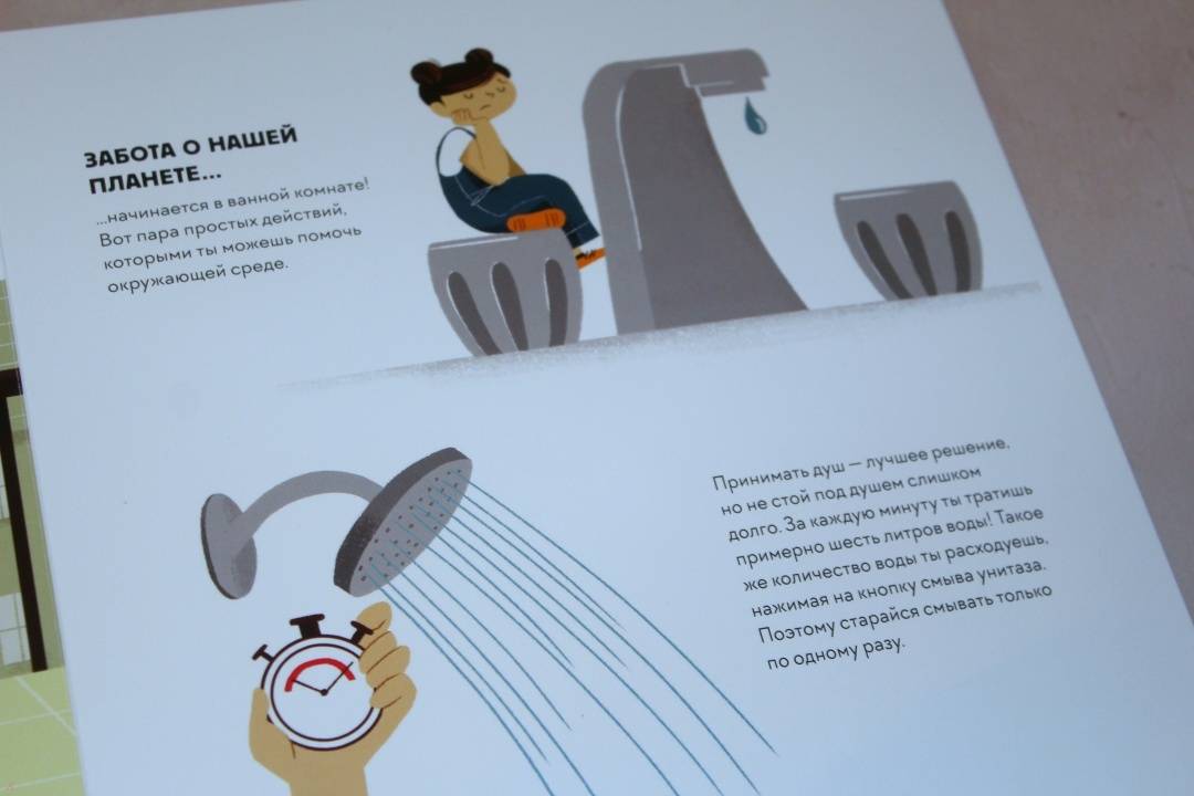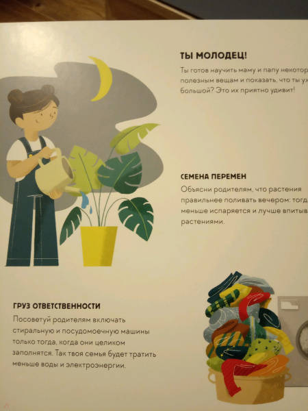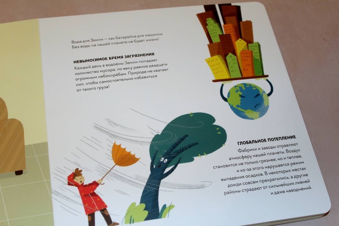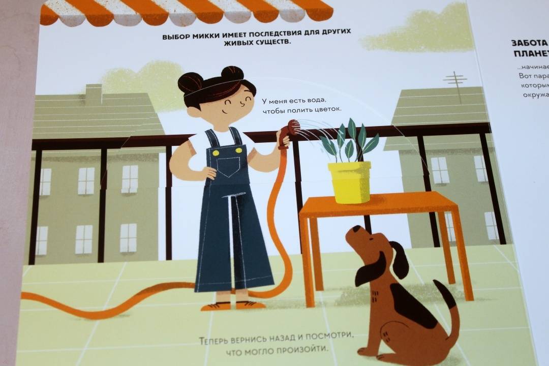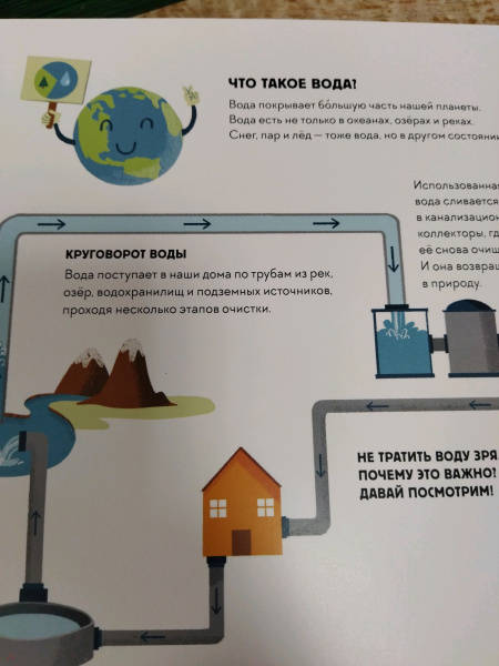 ОписаниеЭта книга-игра научит ребенка думать о том, как наши решения влияют на мир, в котором мы живем. Ребенок узнает, почему нужно беречь воду и как сохранить ее чистой.На каждом развороте вы найдете интерактивное колесо: вращая его, ребенок может выбрать один из вариантов решения проблемы, а на следующем развороте оценить результат, понять, как его решение повлияло на окружающую среду. Если произошло что-то плохое, ребенок всегда может извлечь урок из этого опыта и начать все сначала.Из книги ребенок узнает много нового об окружающей среде и о простых способах сохранить важный ресурс на планете — воду. Без нее на планете не было бы ни растений, ни животных, ни людей. Вот почему так важно заботиться о состоянии воды.Фишки книгиИграя с книгой, ребенок учится размышлять, задавать вопросы и подвергать сомнению то, что он видит.Интерактивное колесо — на каждом развороте: ребенок сразу увидит, как его решения влияют на окружающую среду.Для кого эта книгаДля родителей, которые хотят рассказать детям об экологии, но не знают как.Для детей от 4 лет.Для всех, кто беспокоится о будущем нашей планеты и хочет узнать, как мы можем ей помочь.СвернутьЭта книга-игра научит ребенка думать о том, как наши решения влияют на мир, в котором мы живем. Ребенок узнает, почему нужно беречь воду и как сохранить ее чистой.На каждом развороте вы найдете интерактивное колесо: вращая его, ребенок может выбрать один из вариантов решения проблемы, а на следующем развороте оценить результат, понять, как его решение повлияло на окружающую среду. Если произошло что-то плохое, ребенок всегда может извлечь урок из этого опыта и начать все сначала.Из книги ребенок узнает много нового об окружающей среде и о простых способах сохранить важный ресурс на планете — воду. Без нее на планете не было бы ни растений, ни животных, ни людей. Вот почему так важно заботиться о состоянии воды.Фишки книгиИграя с книгой, ребенок учится размышлять, задавать вопросы и подвергать сомнению то, что он видит.Интерактивное колесо — на каждом развороте: ребенок сразу увидит, как его решения влияют на окружающую среду.Для кого эта книгаДля родителей, которые хотят рассказать детям об экологии, но не знают как.Для детей от 4 лет.Для всех, кто беспокоится о будущем нашей планеты и хочет узнать, как мы можем ей помочь.СвернутьСвернуть