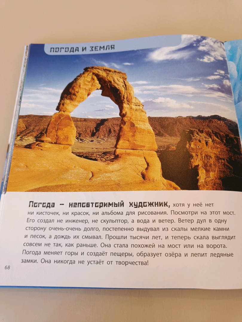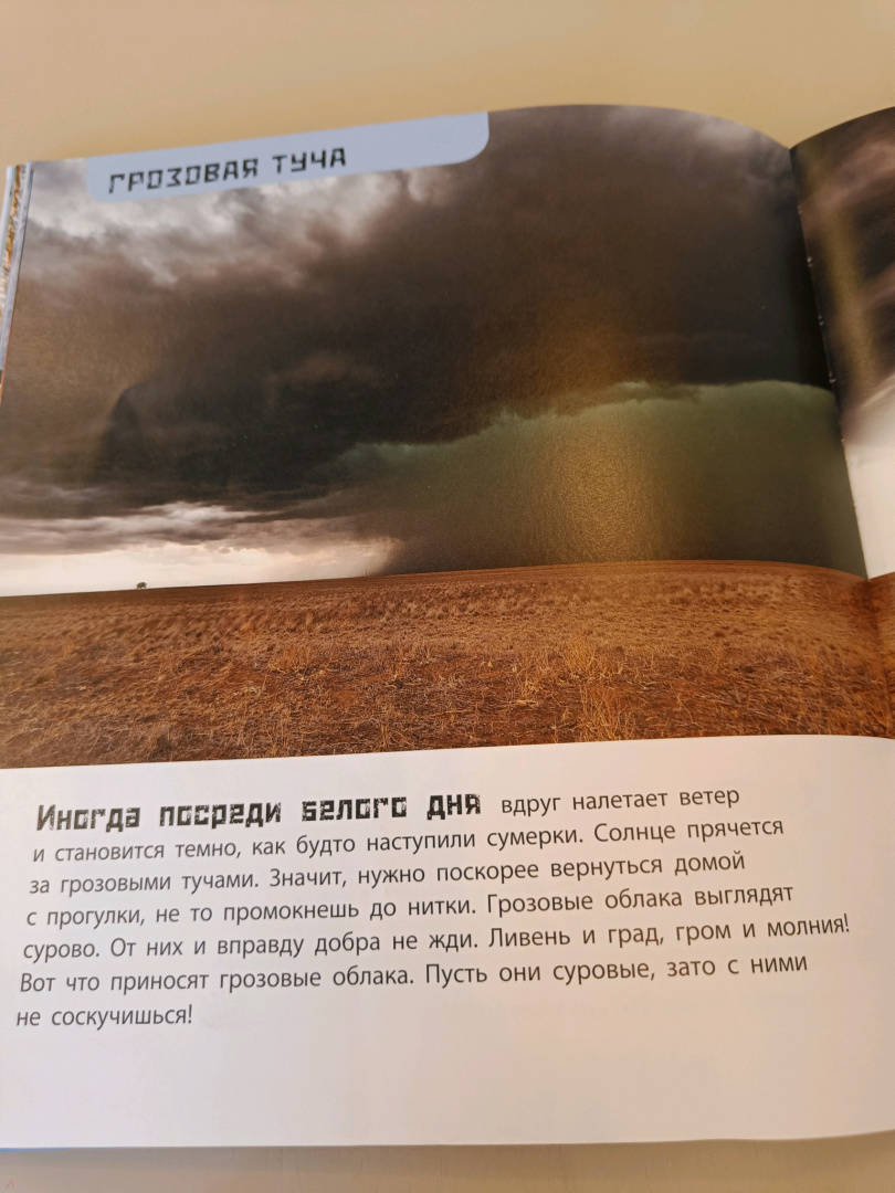 ОписаниеВ этой познавательной книге с великолепными фотографиями и забавными авторскими рисунками собраны истории о самых захватывающих и необычных явлениях природы. Погода каждый день меняется. Сегодня яркое солнце и синее небо, а завтра наползут грозовые облака и пойдёт дождь. Сегодня ветер настолько сильный, что сбивает с ног, а завтра тихо и торжественно полетят на землю белые снежинки. Погода - большая затейница, у неё в запасе немало невероятных сюрпризов. Среди них снежная метель, величественное торнадо, гроза, северное сияние и многое другое.Для детей 5-8 лет.В этой познавательной книге с великолепными фотографиями и забавными авторскими рисунками собраны истории о самых захватывающих и необычных явлениях природы. Погода каждый день меняется. Сегодня яркое солнце и синее небо, а завтра наползут грозовые облака и пойдёт дождь. Сегодня ветер настолько сильный, что сбивает с ног, а завтра тихо и торжественно полетят на землю белые снежинки. Погода - большая затейница, у неё в запасе немало невероятных сюрпризов. Среди них снежная метель, величественное торнадо, гроза, северное сияние и многое другое.Для детей 5-8 лет.