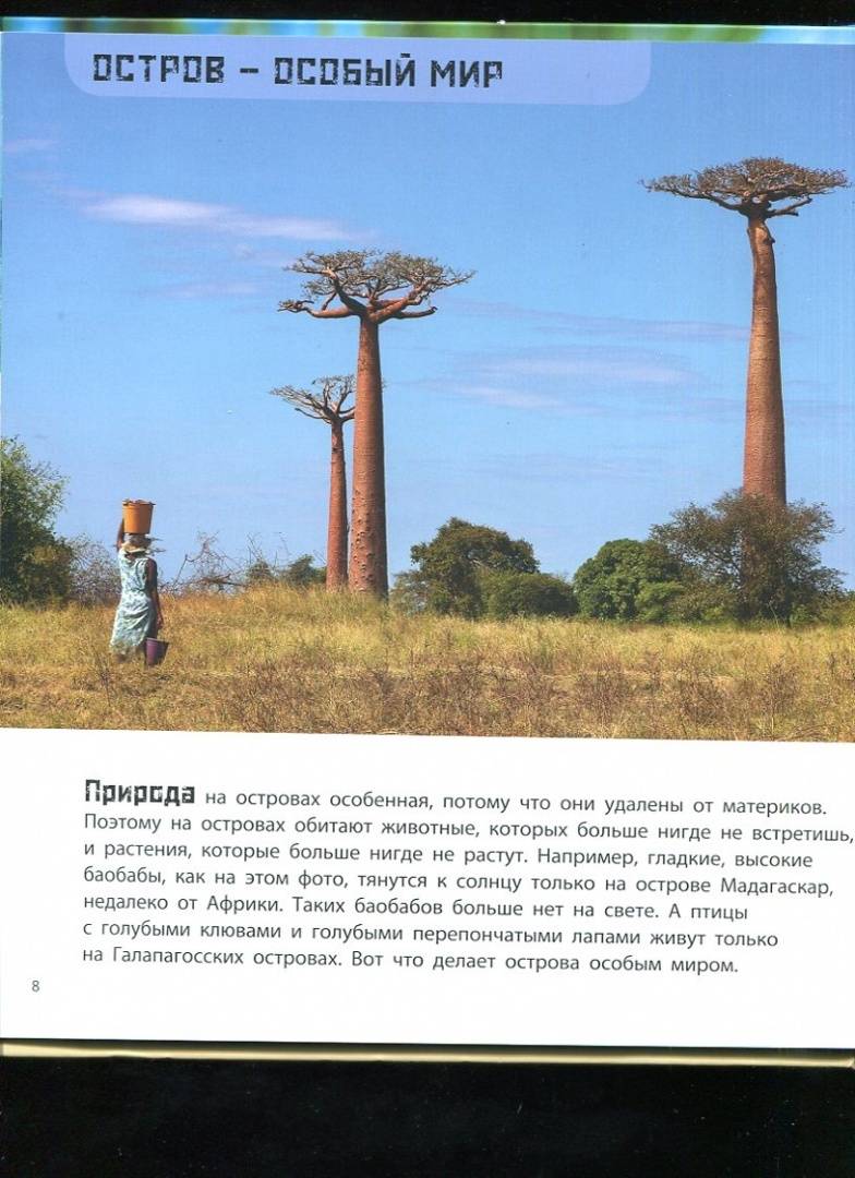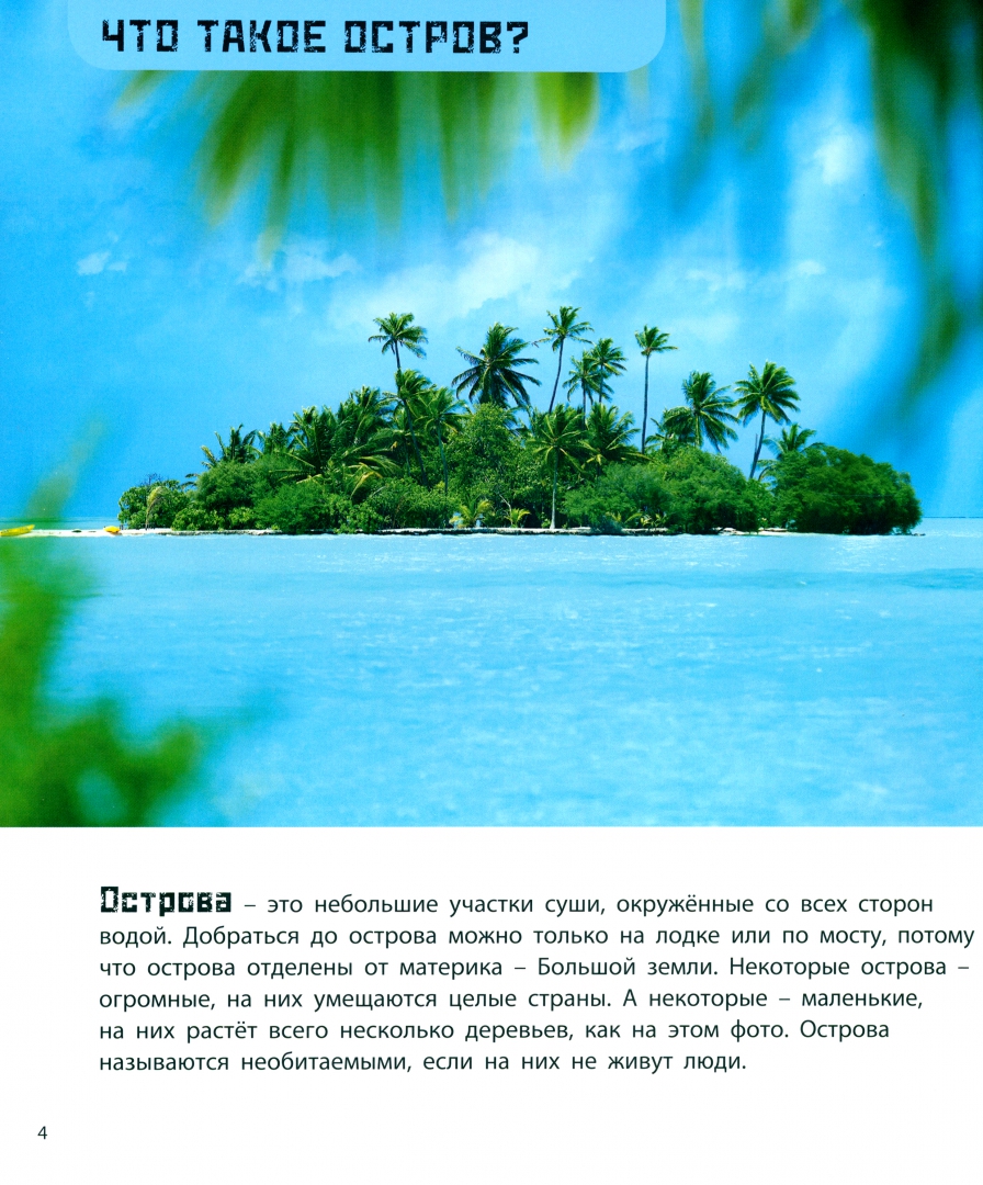 ОписаниеУчасток суши посреди реки, моря или океана называется островом. Как возникают острова? Почему на них складываются особые природные условия? Какие самые известные острова расположены в разных частях света? Простым, понятным языком автор расскажет маленьким читателям о Японии, Исландии, Бали, Мадагаскаре и многих других удивительных островах. Книга иллюстрирована высококачественными художественными фотографиями и забавными авторскими рисунками. А чтобы чтение было еще интереснее, на каждом развороте предлагается выполнить несложное задание.Для младшего школьного возраста.Участок суши посреди реки, моря или океана называется островом. Как возникают острова? Почему на них складываются особые природные условия? Какие самые известные острова расположены в разных частях света? Простым, понятным языком автор расскажет маленьким читателям о Японии, Исландии, Бали, Мадагаскаре и многих других удивительных островах. Книга иллюстрирована высококачественными художественными фотографиями и забавными авторскими рисунками. А чтобы чтение было еще интереснее, на каждом развороте предлагается выполнить несложное задание.Для младшего школьного возраста.