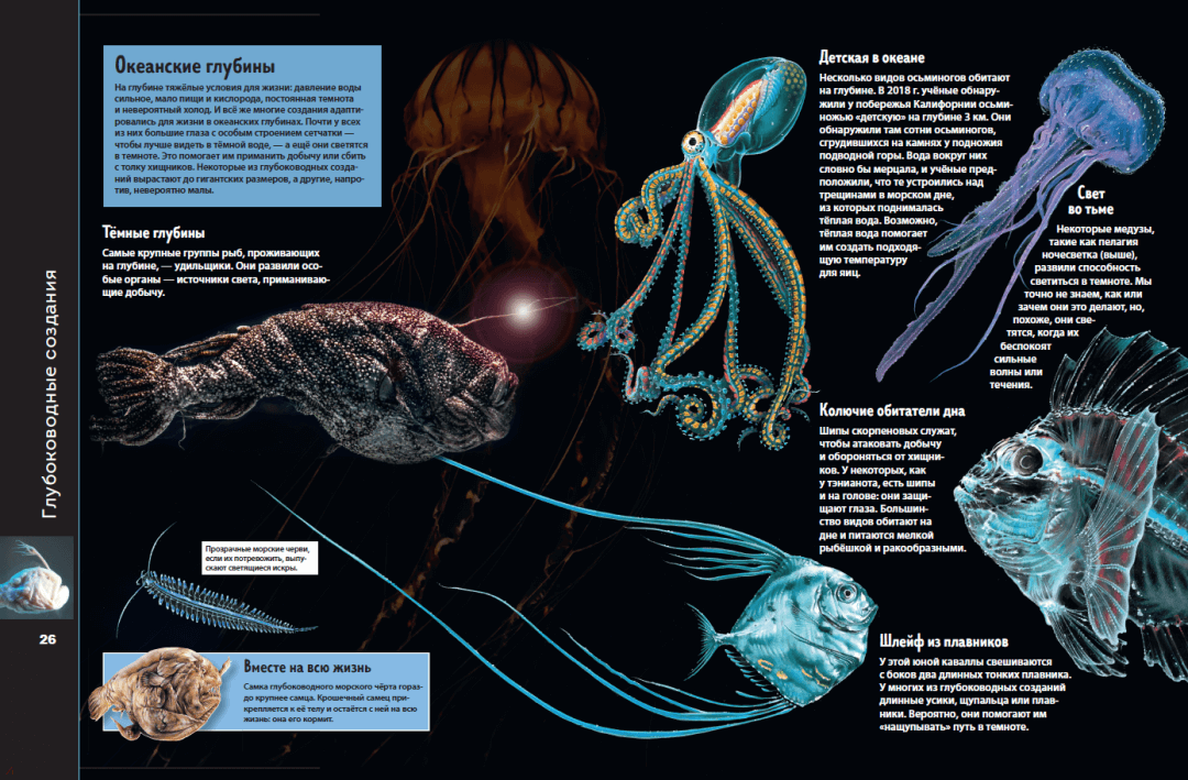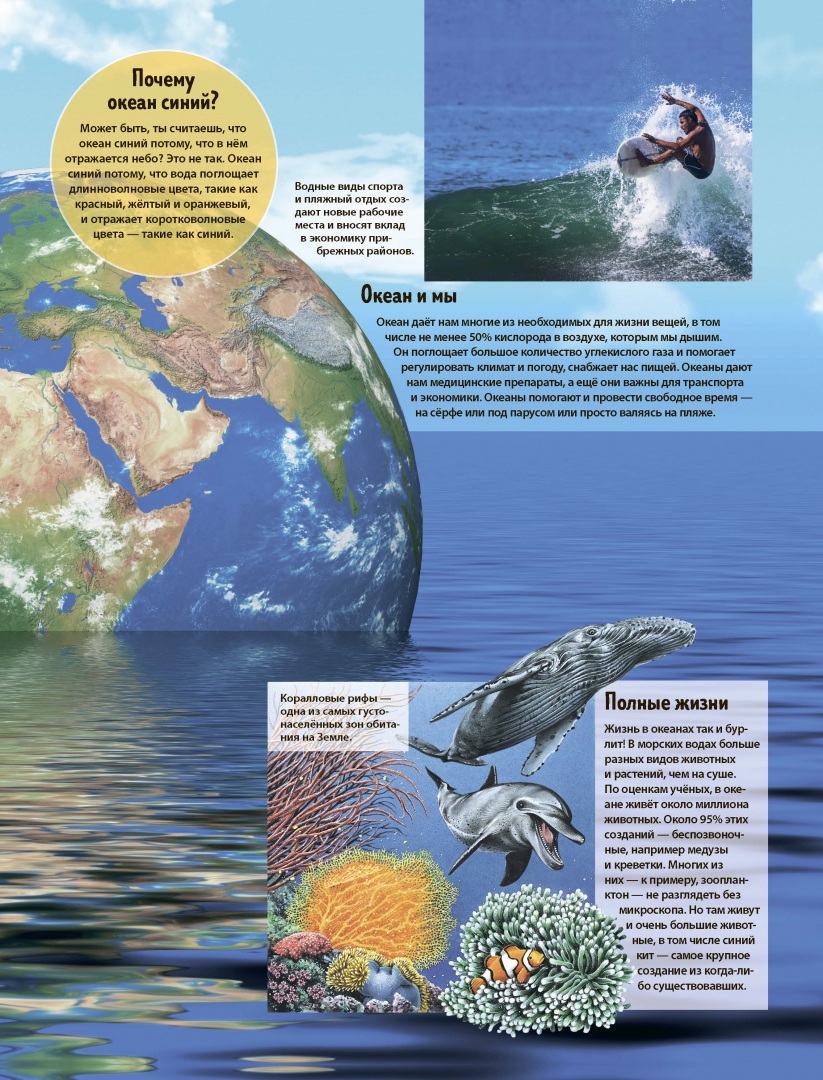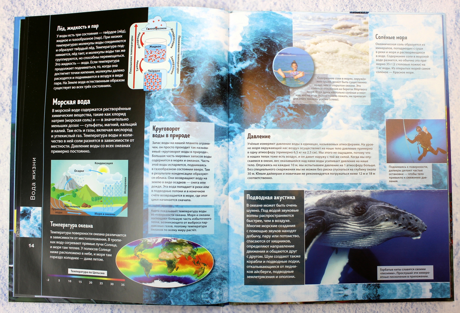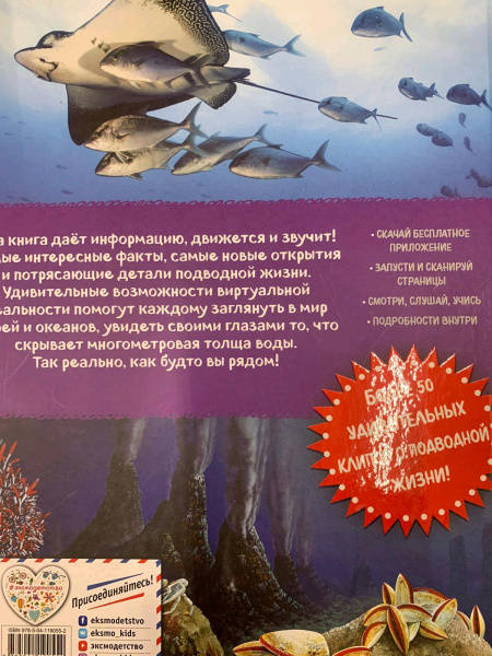 ОписаниеНашу планету можно было бы назвать Океаном — так много на ней воды. Откуда на дне «чёрные курильщики»? Кто может светиться в полной темноте? Зачем рыбам плавать стаями? Кто пасется на подводных лугах? Всё о строении океанского дна, волнах и цунами, приливах и отливах, загадочных подводных обитателях — в умной книге для умных читателей, которые ищут самую новую и достоверную информацию. Эта книга не только расскажет, но и покажет вам самые потрясающие детали подводной жизни. Более 50 удивительных клипов о подводной жизни, а также ответы на многие вопросы. Узнай и будь в курсе! Удивительные возможности виртуальной реальности помогут каждому заглянуть в мир морей и океанов, увидеть своими глазами то, что скрывает многометровая толща воды. Так реально, как будто ты рядом! Ссылка на бесплатное приложение и четкие инструкции внутри книги. Скачай, листай, слушай, смотри, удивляйся.Нашу планету можно было бы назвать Океаном — так много на ней воды. Откуда на дне «чёрные курильщики»? Кто может светиться в полной темноте? Зачем рыбам плавать стаями? Кто пасется на подводных лугах? Всё о строении океанского дна, волнах и цунами, приливах и отливах, загадочных подводных обитателях — в умной книге для умных читателей, которые ищут самую новую и достоверную информацию. Эта книга не только расскажет, но и покажет вам самые потрясающие детали подводной жизни. Более 50 удивительных клипов о подводной жизни, а также ответы на многие вопросы. Узнай и будь в курсе! Удивительные возможности виртуальной реальности помогут каждому заглянуть в мир морей и океанов, увидеть своими глазами то, что скрывает многометровая толща воды. Так реально, как будто ты рядом! Ссылка на бесплатное приложение и четкие инструкции внутри книги. Скачай, листай, слушай, смотри, удивляйся.