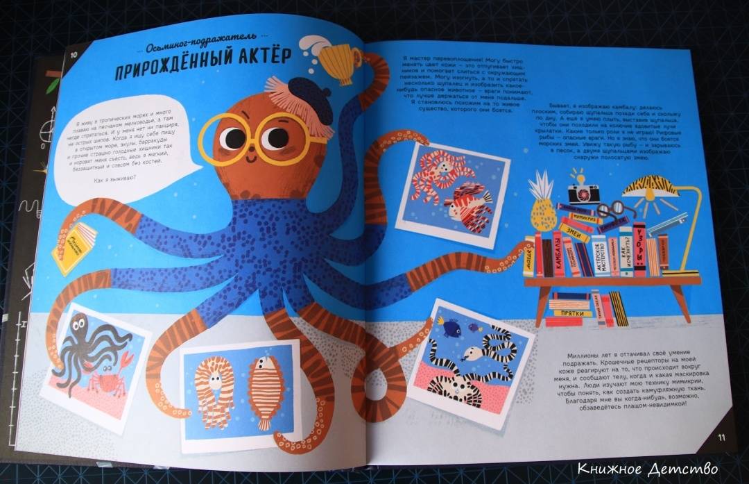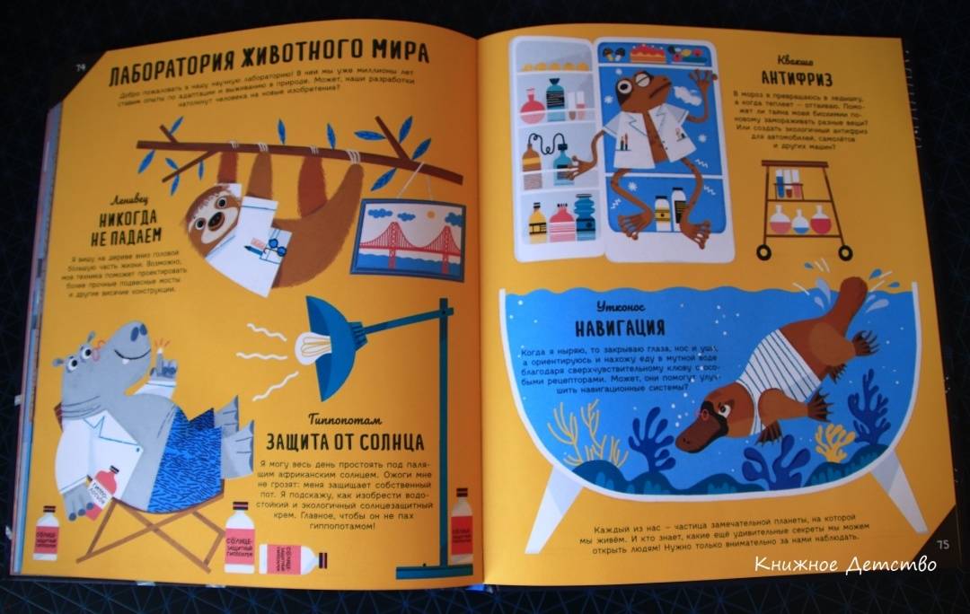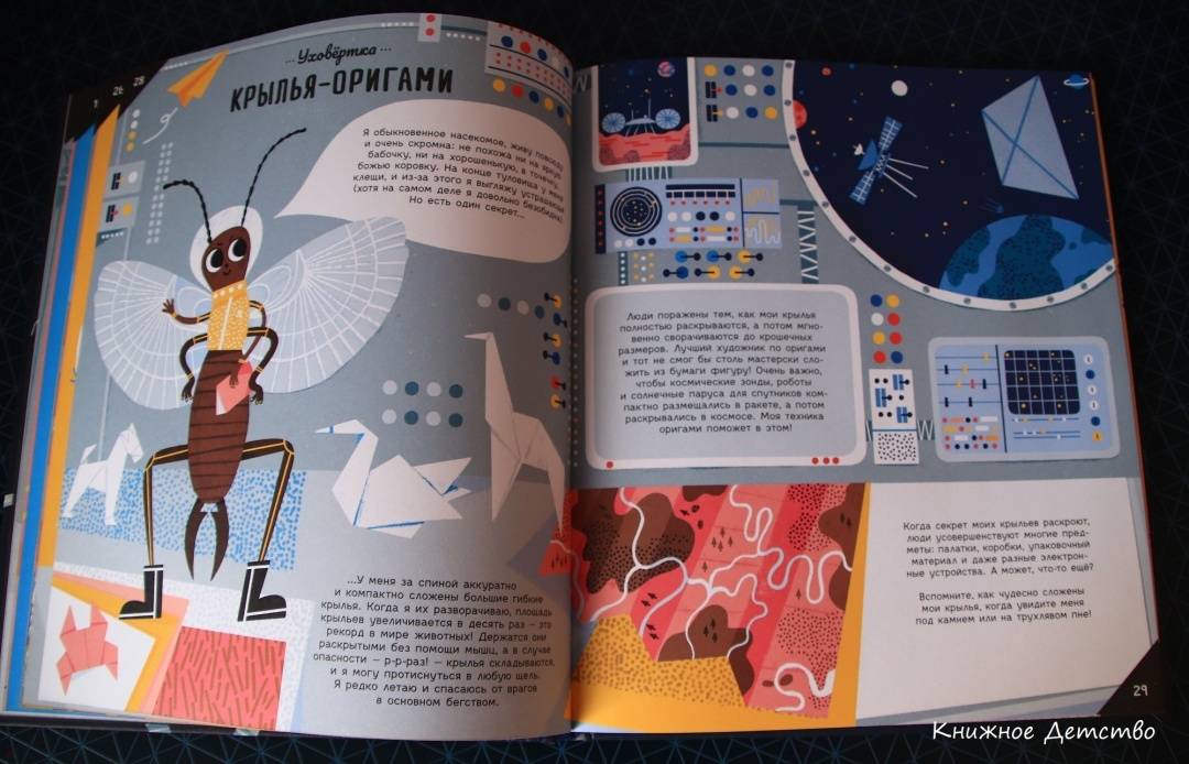 ОписаниеКакие идеи подсмотрел человек у природы? Эхолот и... и всё? Вовсе нет! Киты и кальмары, бобры и бабочки, слизни и стрекозы давным-давно приспособились к жизни в непростых условиях, добыванию пищи, строительству жилищ и защите от врагов. В книге подробно рассказывается о 32 уникальных технологиях, которые легли в основу человеческих изобретений - и тех, к которым учёные только присматриваются: универсальный камуфляж, охлаждение горячего воздуха без кондиционера, цепкие захваты для роботов, экономия топлива и беззвучное движение транспорта. Эффективное использование энергии, экологичные материалы с суперсвойствами, законы физики на службе изобретателей - у животных есть чему поучиться!Кому понравится: любителям животных, а также всем тем, кто хочет знать, как всё на свете устроено.Для детей 6-9 лет.Какие идеи подсмотрел человек у природы? Эхолот и... и всё? Вовсе нет! Киты и кальмары, бобры и бабочки, слизни и стрекозы давным-давно приспособились к жизни в непростых условиях, добыванию пищи, строительству жилищ и защите от врагов. В книге подробно рассказывается о 32 уникальных технологиях, которые легли в основу человеческих изобретений - и тех, к которым учёные только присматриваются: универсальный камуфляж, охлаждение горячего воздуха без кондиционера, цепкие захваты для роботов, экономия топлива и беззвучное движение транспорта. Эффективное использование энергии, экологичные материалы с суперсвойствами, законы физики на службе изобретателей - у животных есть чему поучиться!Кому понравится: любителям животных, а также всем тем, кто хочет знать, как всё на свете устроено.Для детей 6-9 лет.