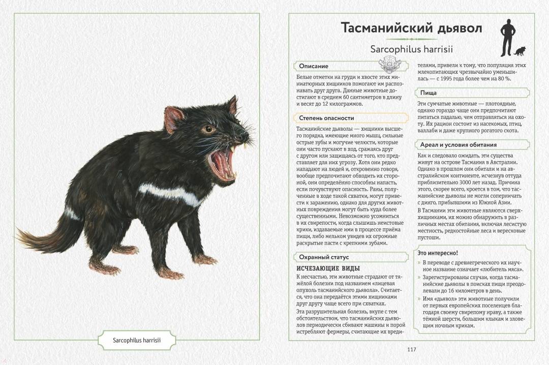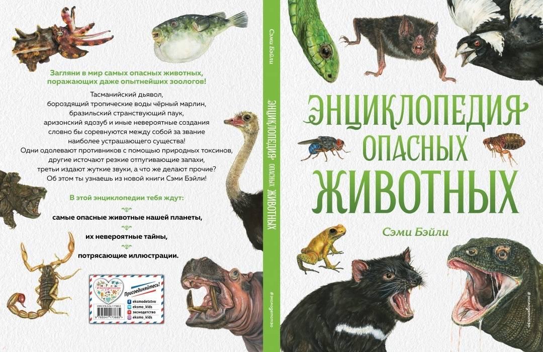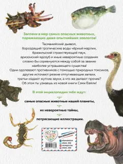 ОписаниеЭта энциклопедия расскажет о самых опасных животных со всех уголков нашей планеты, поражающих даже опытных зоологов! Правда ли, что от укуса одного из моллюсков до сих пор не придумано противоядия? Какая птица нагоняет страх на царя зверей — льва? Кто может накапливать в организме токсины своих жертв и впоследствии использовать их против собственных неприятелей? Что за кошмарные звуки и зачем издаёт тасманийский дьявол? Книга даст ответы на эти и многие другие вопросы о редких и порой пугающих обитателях Земли, а потрясающе реалистичные иллюстрации Сэми Бэйли позволят рассмотреть этих поистине удивительных существ во всех подробностях! • Самые устрашающие животные со всего света! • Поразительные факты об опасных представителях фауны! • Неповторимые авторские иллюстрации Сэми Бэйли!Для среднего школьного возраста.Эта энциклопедия расскажет о самых опасных животных со всех уголков нашей планеты, поражающих даже опытных зоологов! Правда ли, что от укуса одного из моллюсков до сих пор не придумано противоядия? Какая птица нагоняет страх на царя зверей — льва? Кто может накапливать в организме токсины своих жертв и впоследствии использовать их против собственных неприятелей? Что за кошмарные звуки и зачем издаёт тасманийский дьявол? Книга даст ответы на эти и многие другие вопросы о редких и порой пугающих обитателях Земли, а потрясающе реалистичные иллюстрации Сэми Бэйли позволят рассмотреть этих поистине удивительных существ во всех подробностях! • Самые устрашающие животные со всего света! • Поразительные факты об опасных представителях фауны! • Неповторимые авторские иллюстрации Сэми Бэйли!Для среднего школьного возраста.