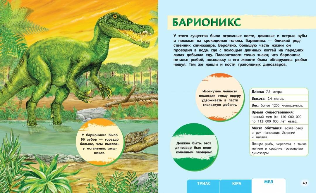ОписаниеЭта энциклопедия, как самая настоящая машина времени, поможет отправиться прямиком в мезозой! Она откроет все секреты хищных и травоядных динозавров, а также летающих и плавающих созданий доисторической эпохи. Какой древний ящер умел снова и снова отращивать зубы, будто акула? Правда ли, что неповоротливый с виду трицератопс на самом деле мог стремглав носиться по джунглям? Кто из птерозавров был ростом с сегодняшнего жирафа? Что за рыба считалась вымершей до того, как в 1938 году была обнаружена в Африке? Эта книга ответит на все эти и многие другие вопросы. А невероятные иллюстрации, вызывающие одновременно и ужас, и восторг, не оставят равнодушным ни одного маленького фаната первобытных владык Земли! • Лучшая энциклопедия о динозаврах за 66 000 000 лет!• 120 доисторических животных!• Иллюстрации, погружающие прямо в мезозой!• Самые потрясающие тайны древних ящеров и других первобытных существ!Эта энциклопедия, как самая настоящая машина времени, поможет отправиться прямиком в мезозой! Она откроет все секреты хищных и травоядных динозавров, а также летающих и плавающих созданий доисторической эпохи. Какой древний ящер умел снова и снова отращивать зубы, будто акула? Правда ли, что неповоротливый с виду трицератопс на самом деле мог стремглав носиться по джунглям? Кто из птерозавров был ростом с сегодняшнего жирафа? Что за рыба считалась вымершей до того, как в 1938 году была обнаружена в Африке? Эта книга ответит на все эти и многие другие вопросы. А невероятные иллюстрации, вызывающие одновременно и ужас, и восторг, не оставят равнодушным ни одного маленького фаната первобытных владык Земли! • Лучшая энциклопедия о динозаврах за 66 000 000 лет!• 120 доисторических животных!• Иллюстрации, погружающие прямо в мезозой!• Самые потрясающие тайны древних ящеров и других первобытных существ!