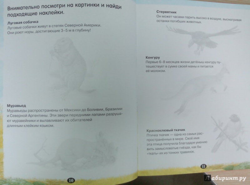ОписаниеКаких только животных нет на нашей планете! Огромные, как многоэтажный дом, голубые киты и крошечные рачки (криль), шустрые тушканчики и ленивцы, всю жизнь висящие на ветках деревьев, ящерицы, с удовольствием греющие спинки под палящим солнцем, и императорские пингвины, которым не страшны лютые морозы и пронизывающие ветры Антарктиды.В морях и лесах, в степях и реках, даже среди полярных льдов и бескрайних песков знойных пустынь живут удивительные создания, с которыми ты познакомишься в этой книжке. А еще тебя ждут красочные наклейки и занимательные задания.Для детей 5-7 лет.Каких только животных нет на нашей планете! Огромные, как многоэтажный дом, голубые киты и крошечные рачки (криль), шустрые тушканчики и ленивцы, всю жизнь висящие на ветках деревьев, ящерицы, с удовольствием греющие спинки под палящим солнцем, и императорские пингвины, которым не страшны лютые морозы и пронизывающие ветры Антарктиды.В морях и лесах, в степях и реках, даже среди полярных льдов и бескрайних песков знойных пустынь живут удивительные создания, с которыми ты познакомишься в этой книжке. А еще тебя ждут красочные наклейки и занимательные задания.Для детей 5-7 лет.
