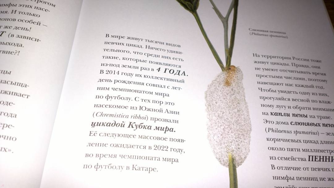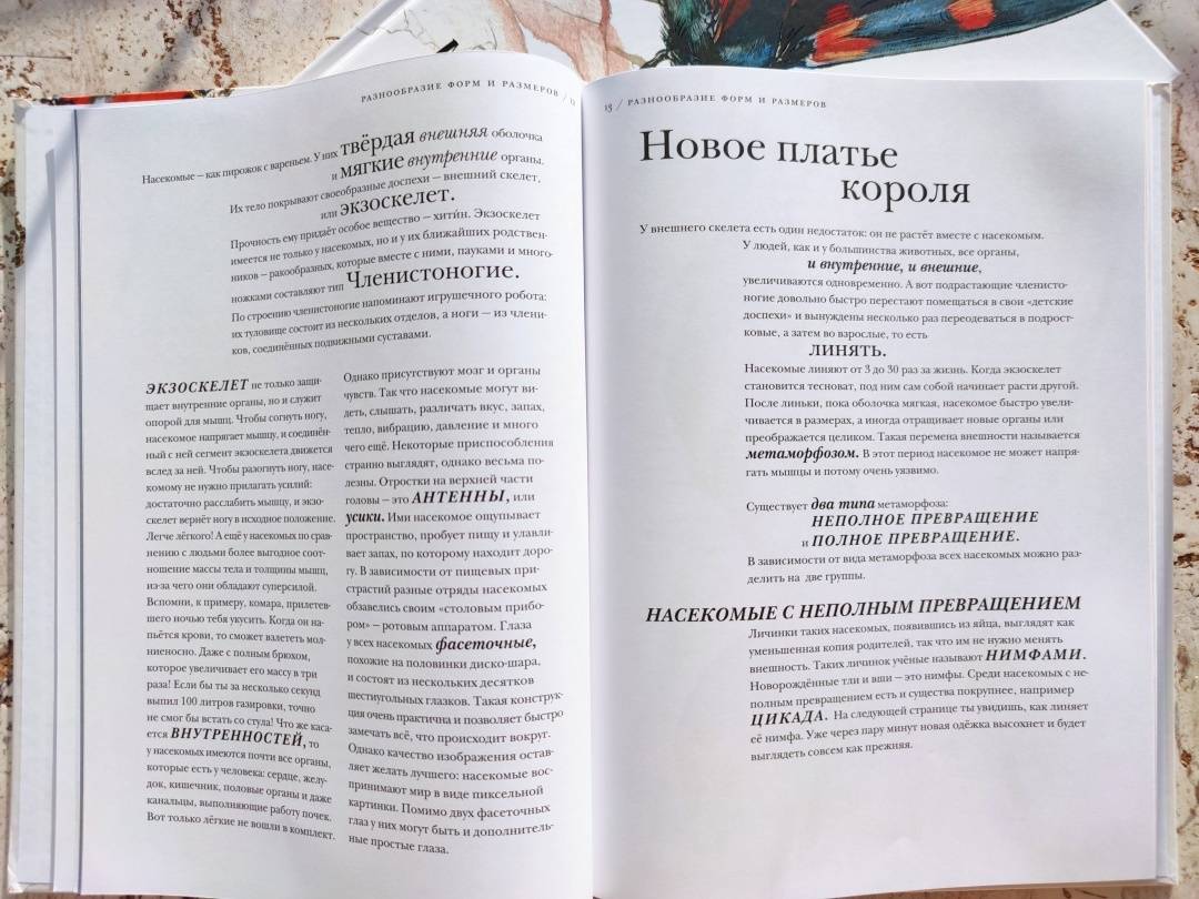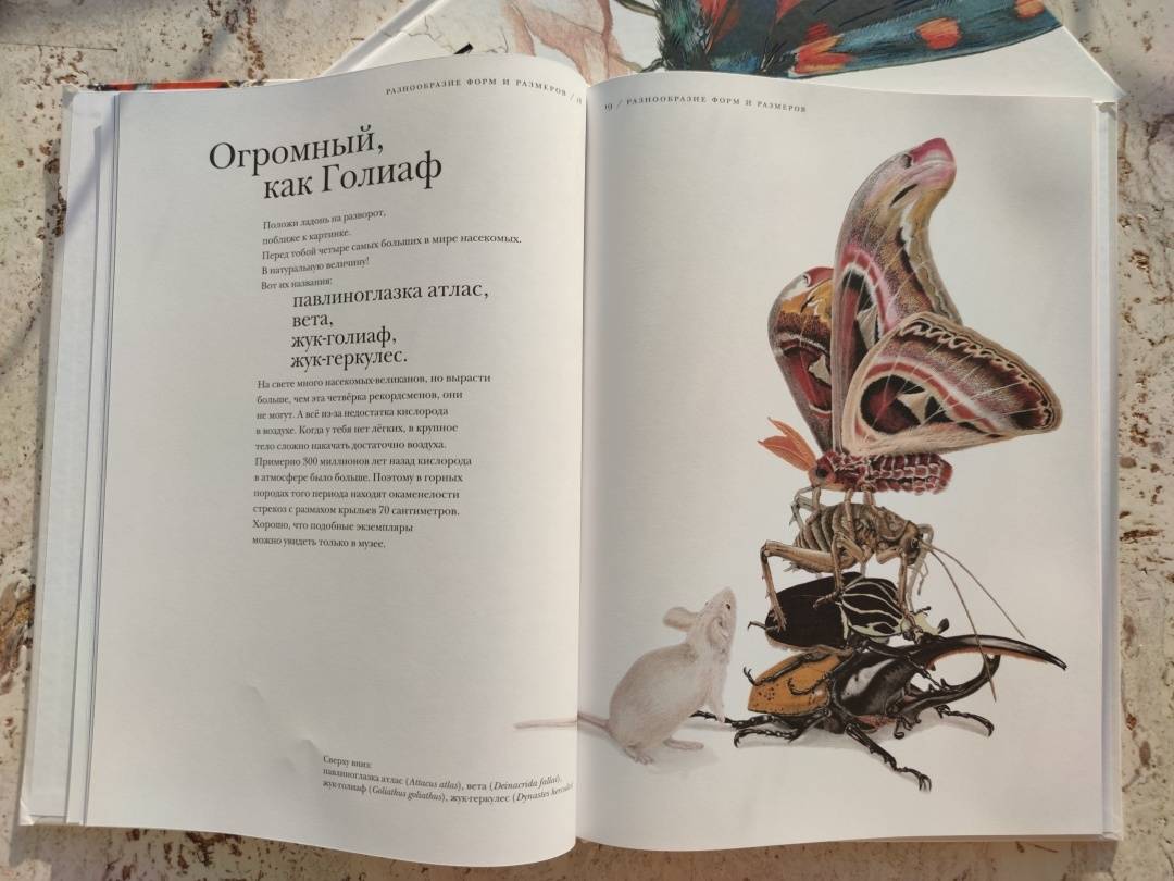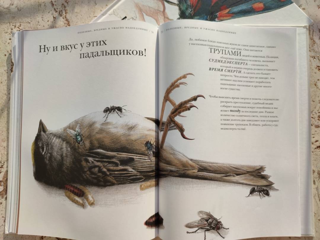 ОписаниеО книгеС этой книгой вы откроете для себя мир насекомых во всем его разнообразии.В этих маленьких существах поразительно все - от внутреннего строения до поведения. Вот несколько интересных фактов из книги:- сестры в пчелином улье относятся друг к другу лучше, чем к собственным детям;- волк в овечьей шкуре действительно существует;- светиться от любви - это не образное выражение;- под водой можно дышать, не имея жабр;- ветки иногда оживают;- некоторые насекомые-умельцы играют на барабанах и цимбалах без инструментов.В мире насекомых все это - обычное дело. Вместе с автором и художником книги вы проникнете в этот мини-мир, а пройдя по всем кусочкам текста, похожим на сегменты насекомого, удивитесь и, может быть, возьмете себе что-то на вооружение. Насекомые - чемпионы практически во всем. Достаточно прочесть о них одну-единственную книгу, и вы поймёте, что это самые сильные, самые полезные, самые надоедливые - в общем, самые поразительные существа на свете.Животный мир, и особенно мир насекомых, может быть жестоким и опасным. Такова дикая природа. На всякий случай отметим, что в книге есть глава про насекомых-трупоедов с иллюстрацией мертвой птицы и глава про медленное убийство таракана тараканьей осой. Лучше эти главы прочитать с ребенком и вместе обсудить прочитанное.Для кого эта книгаДля детей от 5 лет.Об автореБарт Россел - бельгийский ученый-биоинженер, изобретатель, предприниматель и папа трех неукротимых дочерей. Чтобы дать этим дочерям хорошее образование, он рассказывает им впечатляющие, но правдивые истории. Чаще всего о науке, людях, природе и изобретениях.СвернутьО книгеС этой книгой вы откроете для себя мир насекомых во всем его разнообразии.В этих маленьких существах поразительно все - от внутреннего строения до поведения. Вот несколько интересных фактов из книги:- сестры в пчелином улье относятся друг к другу лучше, чем к собственным детям;- волк в овечьей шкуре действительно существует;- светиться от любви - это не образное выражение;- под водой можно дышать, не имея жабр;- ветки иногда оживают;- некоторые насекомые-умельцы играют на барабанах и цимбалах без инструментов.В мире насекомых все это - обычное дело. Вместе с автором и художником книги вы проникнете в этот мини-мир, а пройдя по всем кусочкам текста, похожим на сегменты насекомого, удивитесь и, может быть, возьмете себе что-то на вооружение. Насекомые - чемпионы практически во всем. Достаточно прочесть о них одну-единственную книгу, и вы поймёте, что это самые сильные, самые полезные, самые надоедливые - в общем, самые поразительные существа на свете.Животный мир, и особенно мир насекомых, может быть жестоким и опасным. Такова дикая природа. На всякий случай отметим, что в книге есть глава про насекомых-трупоедов с иллюстрацией мертвой птицы и глава про медленное убийство таракана тараканьей осой. Лучше эти главы прочитать с ребенком и вместе обсудить прочитанное.Для кого эта книгаДля детей от 5 лет.Об автореБарт Россел - бельгийский ученый-биоинженер, изобретатель, предприниматель и папа трех неукротимых дочерей. Чтобы дать этим дочерям хорошее образование, он рассказывает им впечатляющие, но правдивые истории. Чаще всего о науке, людях, природе и изобретениях.СвернутьСвернуть