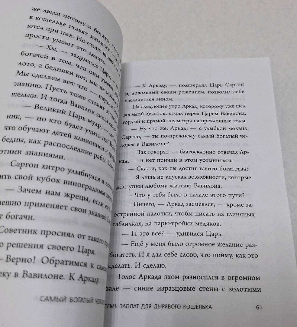 Описание10 всемирно известных притч, которые полностью меняют ваше мышление. Оригинальная версия главной книги о богатстве теперь в самом полном и благозвучном переводе. Все, что было написано о накоплении капитала после «Самого богатого человека в Вавилоне», лишь повторяет и развивает идеи Джона Клейсона, но принципиально нового не добавляет. Роберт Киосаки, Наполеон Хилл, Бодо Шефер — все они черпали мудрость из этого бестселлера. Книга переведена на 32 языка и издана в 56 странах мира. Продана тиражом больше 100 миллионов экземпляров (точный подсчет затруднен из-за невероятного количества переизданий). Если вы ищете одну, самую полезную книгу о богатстве, это без сомнения «Самый богатый человек в Вавилоне». В ней автор с помощью увлекательных историй объясняет, как: • безболезненно избавиться от долгов, во много раз превышающих ежемесячный доход; • скопить первичный капитал, который ляжет в основу будущего благосостояния; • перестать быть рабом денег и заставить их работать на себя; • заслужить уважение и глубочайшее почтение окружающих.Свернуть10 всемирно известных притч, которые полностью меняют ваше мышление. Оригинальная версия главной книги о богатстве теперь в самом полном и благозвучном переводе. Все, что было написано о накоплении капитала после «Самого богатого человека в Вавилоне», лишь повторяет и развивает идеи Джона Клейсона, но принципиально нового не добавляет. Роберт Киосаки, Наполеон Хилл, Бодо Шефер — все они черпали мудрость из этого бестселлера. Книга переведена на 32 языка и издана в 56 странах мира. Продана тиражом больше 100 миллионов экземпляров (точный подсчет затруднен из-за невероятного количества переизданий). Если вы ищете одну, самую полезную книгу о богатстве, это без сомнения «Самый богатый человек в Вавилоне». В ней автор с помощью увлекательных историй объясняет, как: • безболезненно избавиться от долгов, во много раз превышающих ежемесячный доход; • скопить первичный капитал, который ляжет в основу будущего благосостояния; • перестать быть рабом денег и заставить их работать на себя; • заслужить уважение и глубочайшее почтение окружающих.СвернутьСвернуть
