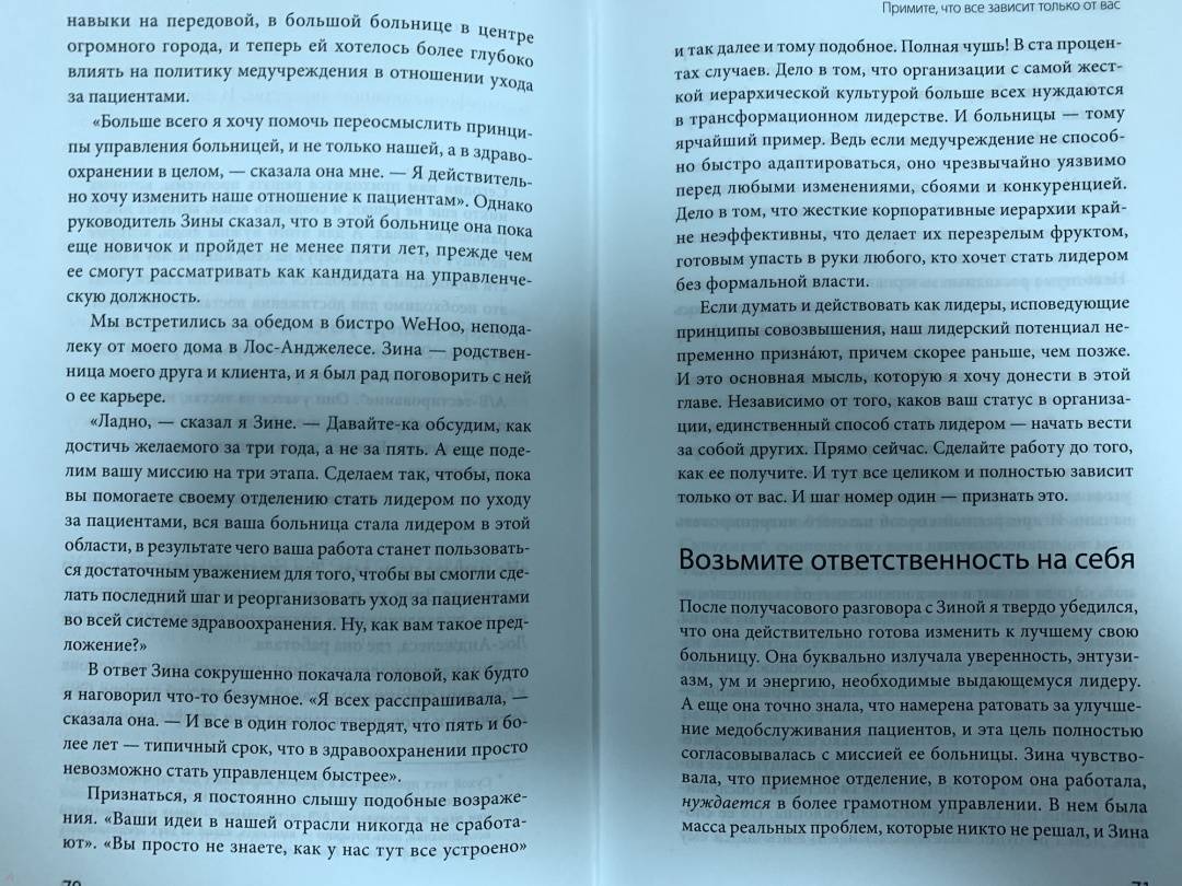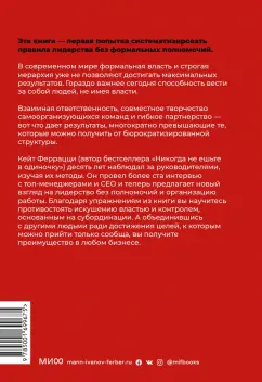 ОписаниеЛидерство без власти уверенно становится главной организационной моделью XXI века. Но проблема в том, что для большинства менеджеров секрет надежного и качественного применения этой модели по-прежнему остается секретом. Опрос консалтинговой компании Deloitte показал, что, хотя межфункциональные команды пользуются все большим вниманием и уважением, "всего 21 процент респондентов чувствуют себя экспертами в создании таких команд, и только 12 процентов понимают, как их люди сотрудничают в таких сетях". А так, согласитесь, дела не делаются.Как я уже говорил, старые правила игры больше не работают. И все же я каждый день наблюдаю, как люди цепляются за них кончиками пальцев. Почему? Да потому, что у них нет ни правил для новой игры, в которую мы уже начали играть, ни инструкций, как играть в нее правильно. Но теперь все изменится.Эта книга - первая попытка систематизировать эти правила в нашем новом мире труда. Она дает читателям полную, целостную и проверенную методологию достижения успеха в мире, в котором способность вести за собой людей, не имея формальной власти, считается важнейшей компетенцией на рабочем месте. Решения, которые я предлагаю в книге, потребуют от вас пробудиться к новому пониманию концепции лидерства без влияния и адаптировать к этому мышлению новую операционную систему рабочего места, которую я назвал совместным возвышением, или, коротко, совозвышением.Эта книга - плод более чем десятилетних исследований, наблюдений и тестирований, проведенных коучами, консультантами и научными исследователями Ferrazzi Greenlight, которые работали и работают с некоторыми величайшими в мире представителями трансформационного лидерства. Правила, практические упражнения и рецепты, описанные в ней, появились на свет во многом благодаря идеям и опыту сотен руководителей компаний, с которыми сотрудничала наша компания, а также огромнейшему числу рядовых сотрудников, которым мы помогали достичь большего.В рамках исследований для этой книги я взял интервью более чем у сотни СЕО и других топ-менеджеров, с которыми мне посчастливилось встретиться на профессиональном пути. Вы будете слушать их мнение из первых уст на протяжении всего нашего с вами разговора; они дадут полезные советы и поделятся опытом практического применения новых правил работы.Эта книга для:Топ-менеджеров. Они познакомятся с новой эффективной моделью сотрудничества и взаимодействия на высшем уровне компании и в результате смогут создать импульс для изменения поведенческих шаблонов в масштабах всей организации.Менеджеров среднего и высшего звена. Им книга поможет прояснить перспективу и приведет к прорывным результатам во всех ранее разрозненных структурах и системах подчинения, снижающих производительность.Новых сотрудников компании с очень ограниченными формальными управленческими полномочиями или вовсе без них. Для них книга может стать набором инструментов для демонстрации лидерского потенциала.Предпринимателей. Они узнают о новых возможностях командной работы.Для кого книгаДля топ-менеджеров и менеджеров среднего звена, которые хотят познакомиться с новой эффективной моделью сотрудничества и изменить взаимодействие в своей компании.Для предпринимателей, которые стремятся повысить продуктивность своего бизнеса.Для всех, кто интересуется со