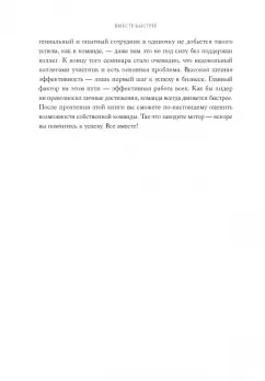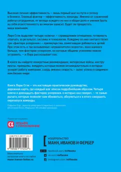 ОписаниеО книгеПервая в России книга о командной эффективности.Высокая личная эффективность - это лишь первый шаг к успеху в бизнесе; главный фактор успеха на этом пути - эффективность всей команды. Как бы лидер ни превозносил личные достижения, команда всегда движется быстрее. Прочтя эту книгу, вы сможете по-настоящему оценить возможности собственной команды.Главный фактор победы в современном мире - скорость. Знаменитый гонщик Марио Андретти сказал однажды: "Если кажется, что у тебя все под контролем, значит, ты просто едешь слишком медленно". Когда команда работает в полную силу, происходящее и правда может казаться ее членам хоть и управляемым, но все же хаосом - примерно это же вы чувствуете, когда разгоняете спортивный Corvette до максимальной скорости.Вы можете прочесть эту книгу самостоятельно, а потом попробовать применить предложенные мной рекомендации в своей команде. Если вы занимаете руководящую должность, вы наверняка найдете здесь немало идей относительно того, как сделать вашу команду более эффективной. Но максимальную отдачу от чтения этой книги вы получите, если станете осваивать изложенные здесь принципы вместе со всеми коллегами.Наиболее продуктивные команды владеют четырьмя особыми ключами, позволяющими добиваться роста эффективности; каждому из них посвящена одна из частей этой книги. Эти ключи: справедливое отношение, готовность отвечать за результат, систем и технологии.Для кого эта книгаДля CEO, менеджеров высшего и среднего звена, для каждого, кто заинтересован в повышении продуктивности своей команды.Об автореЛора Стэк, известный и востребованный консультант, получившая титул Мастер Продуктивности (The Productivity Pro®), предлагает лидерам инструменты для повышения личной и командной эффективности. Вот уже двадцать пять лет ее выступления и семинары помогают клиентам формировать корпоративную культуру, ориентированную на достижение максимальных результатов, а также добиваться все более высоких целей и эффективно расходовать рабочее время.В 1992 году Лора основала компанию The Productivity Pro, Inc., основная цель которой - помощь клиентам в достижении максимальных результатов в минимально короткие сроки (Maximum Results in Minimum Time®). Статьи Лоры о подходах к повышению эффективности работы и развитии человеческого потенциала публикуются в журналах The Business Journal, Huffington Post, Time Management. Благодаря кипучей энергии и новаторским подходам Лора способна учить, увлекать, мотивировать аудиторию - и гарантированно помогает клиентам добиваться успеха. В 2011-2012 годах Лора занимала пост президента Национальной ассоциации спикеров США и получила квалификацию профессионального спикера (CSP). В 2015 году Лора получила от ассоциации престижную премию Council of Peers Award for Excellence и удостоилась чести попасть в Зал Славы Национальной ассоциации спикеров США (менее 175 человек по всему миру удостоены этой чести).Лора - автор семи бестселлеров, опубликованных издательствами Random House, Wiley, Broadway Books и Berrett-Koehler. Ее книги выходили в двадцати странах мира и переведены на многие языки.СвернутьО книгеПервая в России книга о командной эффективности.Высокая личная эффективность - это лишь первый шаг к успеху в бизнесе; главный фактор успеха на этом пути - эффективность всей команды. Как бы лидер ни превозносил личные достижения, команда всегда движется быстрее. Прочт