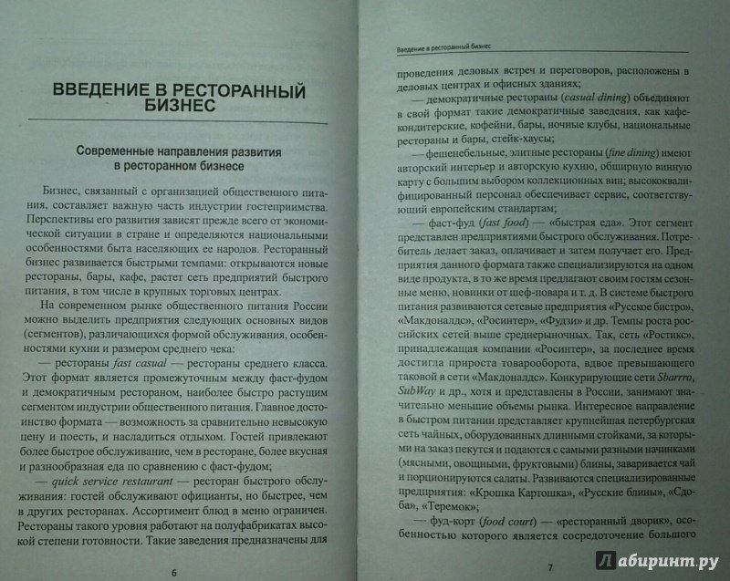 ОписаниеВ учебном пособии подробно освещены вопросы организации обслуживания в современных ресторанах, барах. Рассмотрены перспективы развития ресторанного бизнеса в России как составной части индустрии гостеприимства, требования к обслуживающему персоналу, организации обслуживания гостей в зале. Изложены современные направления сервировки столов, украшения их цветами, аксессуарами. Рассмотрены приемы декантации и аэрации вин, техники подачи выдержанных, коллекционных и игристых вин, закусок, блюд и напитков разными методами. Даны рекомендации по обслуживанию приемов, банкетов, праздничных вечеров и других мероприятий ("шведский стол", кофе-брейк, бизнес-ланч, воскресный бранч, кейтеринг). Большое внимание уделено обслуживанию иностранных туристов.Рассмотрены исторические аспекты возникновения и развития баров, использования в баре посуды и инвентаря; характеристика напитков, правила их отпуска: приемы работы бармена за барной стойкой; правила составления карт вин и коктейлей бара. Даны практические рекомендации по приготовлению смешанных напитков и коктейлей. Учебное пособие написано с учетом ФГОС при освоении рабочей программы МДК 02.01 "Организация обслуживания в организациях общественного питания" профессионального модуля ПМ.02 по профессии 43.02.01 "Организация обслуживания в общественном питании" и может быть использовано студентами профильных вузов, лицеев, а также работниками ресторанов, баров, кафе, ночных клубов и других предприятий общественного питания.СвернутьВ учебном пособии подробно освещены вопросы организации обслуживания в современных ресторанах, барах. Рассмотрены перспективы развития ресторанного бизнеса в России как составной части индустрии гостеприимства, требования к обслуживающему персоналу, организации обслуживания гостей в зале. Изложены современные направления сервировки столов, украшения их цветами, аксессуарами. Рассмотрены приемы декантации и аэрации вин, техники подачи выдержанных, коллекционных и игристых вин, закусок, блюд и напитков разными методами. Даны рекомендации по обслуживанию приемов, банкетов, праздничных вечеров и других мероприятий ("шведский стол", кофе-брейк, бизнес-ланч, воскресный бранч, кейтеринг). Большое внимание уделено обслуживанию иностранных туристов.Рассмотрены исторические аспекты возникновения и развития баров, использования в баре посуды и инвентаря; характеристика напитков, правила их отпуска: приемы работы бармена за барной стойкой; правила составления карт вин и коктейлей бара. Даны практические рекомендации по приготовлению смешанных напитков и коктейлей. Учебное пособие написано с учетом ФГОС при освоении рабочей программы МДК 02.01 "Организация обслуживания в организациях общественного питания" профессионального модуля ПМ.02 по профессии 43.02.01 "Организация обслуживания в общественном питании" и может быть использовано студентами профильных вузов, лицеев, а также работниками ресторанов, баров, кафе, ночных клубов и других предприятий общественного питания.СвернутьСвернуть