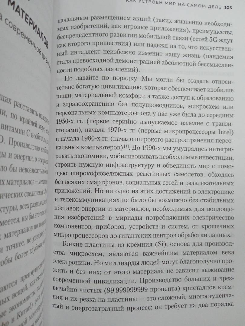 ОписаниеНаша сегодняшняя жизнь перенасыщена информацией, однако большинство людей все же не знают, как на самом деле устроен наш мир. Эта книга освещает основные темы, связанные с обеспечением нашего выживания и благополучия: энергия, производство продуктов питания, важнейшие долговечные материалы, глобализация, оценка рисков, окружающая среда и удущее человека. Поиск эффективного решения проблем требует изучения фактов - мы узнаем, например, что глобализация не была неизбежной и что наше общество все сильнее зависит от ископаемого топлива, поэтому любые обещания декарбонизации к 2050 году - не более чем сказка. Что на каждый выращенный в теплице томат требуется энергия, эквивалентная пяти столовым ложкам дизельного топлива, и что мы не знаем таких способов массового производства стали, цемента и пластика, которые не оставляли бы гигантский углеродный след. Кроме этого, канадский ученый, эколог и политолог Вацлав Смил, знаменитый своими работами о связи энергетики с экологией, демографией и реальной политикой, а также виртуозным умением обращаться с большими массивами статистических данных, ищет ответ на самый главный вопрос нашего времени: обречено ли человечество на гибель или нас ждет счастливый новый мир? Убедительная, изобилующая данными, нестандартная, отличающаяся широким междисциплинарным взглядом, эта книга отвергает обе крайности. Количественный взгляд на мир открывает истины, которые меняют наше отношение к прошлому, настоящему и неопределенному грядущему. "Я не пессимист и не оптимист; я ученый, пытающийся объяснить, как на самом деле функционирует мир, и я буду использовать это понимание, чтобы помочь нам лучше осознать будущие ограничения и возможности". (Вацлав Смил)СвернутьНаша сегодняшняя жизнь перенасыщена информацией, однако большинство людей все же не знают, как на самом деле устроен наш мир. Эта книга освещает основные темы, связанные с обеспечением нашего выживания и благополучия: энергия, производство продуктов питания, важнейшие долговечные материалы, глобализация, оценка рисков, окружающая среда и удущее человека. Поиск эффективного решения проблем требует изучения фактов - мы узнаем, например, что глобализация не была неизбежной и что наше общество все сильнее зависит от ископаемого топлива, поэтому любые обещания декарбонизации к 2050 году - не более чем сказка. Что на каждый выращенный в теплице томат требуется энергия, эквивалентная пяти столовым ложкам дизельного топлива, и что мы не знаем таких способов массового производства стали, цемента и пластика, которые не оставляли бы гигантский углеродный след. Кроме этого, канадский ученый, эколог и политолог Вацлав Смил, знаменитый своими работами о связи энергетики с экологией, демографией и реальной политикой, а также виртуозным умением обращаться с большими массивами статистических данных, ищет ответ на самый главный вопрос нашего времени: обречено ли человечество на гибель или нас ждет счастливый новый мир? Убедительная, изобилующая данными, нестандартная, отличающаяся широким междисциплинарным взглядом, эта книга отвергает обе крайности. Количественный взгляд на мир открывает истины, которые меняют наше отношение к прошлому, настоящему и неопределенному грядущему. "Я не пессимист и не оптимист; я ученый, пытающийся объяснить, как
