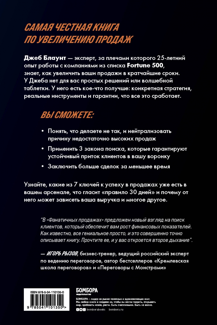 -Джеб Блаунт: Фанатичные продажи. Принципы экстремально быстрого поиска новых клиентовСтрахованиеУправление качеством. ИнновацииМаркетингДелопроизводствоРеклама. PRЛичные финансыКопирайтинг. Визуализация. Деловая перепискаЛогистикаТуристический бизнесЭлектронная коммерцияУправление персоналомМенеджмент. Управление предприятиемБанковское дело. ФинансыПсихология бизнеса. Бизнес-этикетТаможенное регулированиеРесторанный бизнесЭкономикаБизнес. ЭкономикаБлоги и социальные сетиНедвижимостьБухгалтерский учет и аудитВедение бизнеса