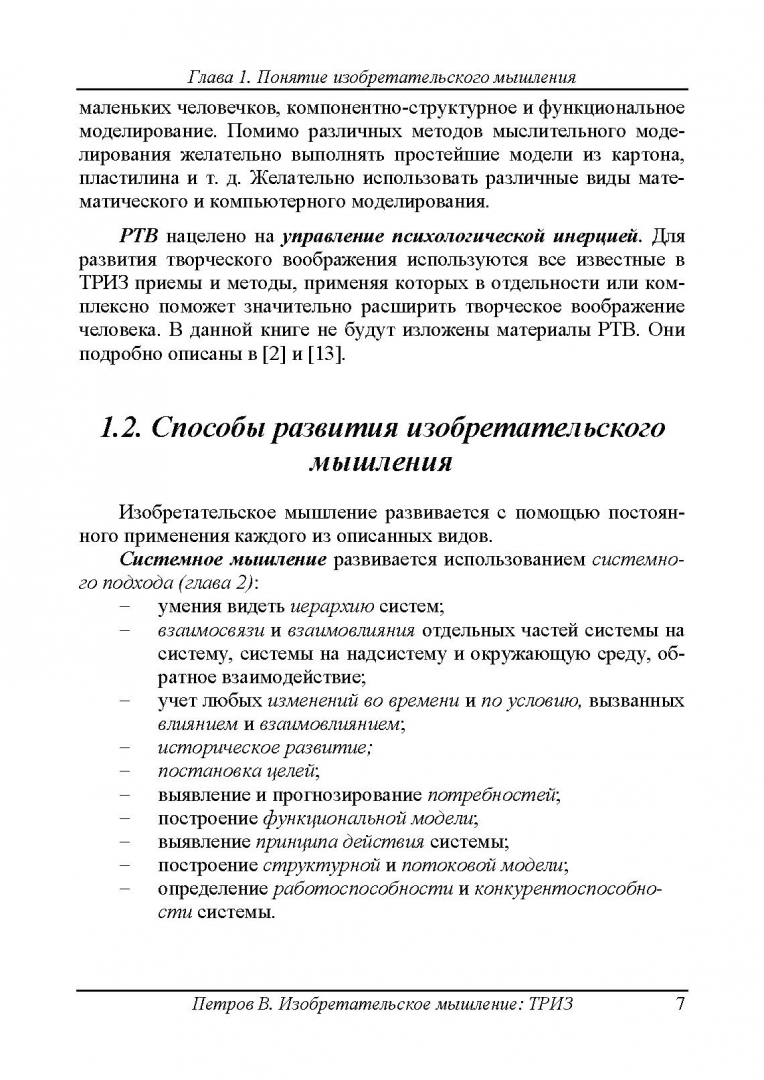 ОписаниеЭто учебник изобретательского мышления, которое также называют творческое, сильное, талантливое мышление.Изобретательское мышление состоит из следующих составляющих: системное мышление, эволюционное мышление, мышление через противоречия, мышление с использованием ресурсов, мышление с использованием моделей и развитие творческого воображения.Данная книга описывает все составляющие этого мышления. Основное внимание уделено отработке навыков Изобретательского мышления.Книга рассчитана на широкий круг читателей от детей до взрослых разных специальностей (бизнесменов, политиков, менеджеров, проектировщиков, преподавателей ТРИЗ и т. п). Она будет полезна тем, кто хочет быстро получать новые идеи и иметь развитое талантливое мышление.Это учебник изобретательского мышления, которое также называют творческое, сильное, талантливое мышление.Изобретательское мышление состоит из следующих составляющих: системное мышление, эволюционное мышление, мышление через противоречия, мышление с использованием ресурсов, мышление с использованием моделей и развитие творческого воображения.Данная книга описывает все составляющие этого мышления. Основное внимание уделено отработке навыков Изобретательского мышления.Книга рассчитана на широкий круг читателей от детей до взрослых разных специальностей (бизнесменов, политиков, менеджеров, проектировщиков, преподавателей ТРИЗ и т. п). Она будет полезна тем, кто хочет быстро получать новые идеи и иметь развитое талантливое мышление.