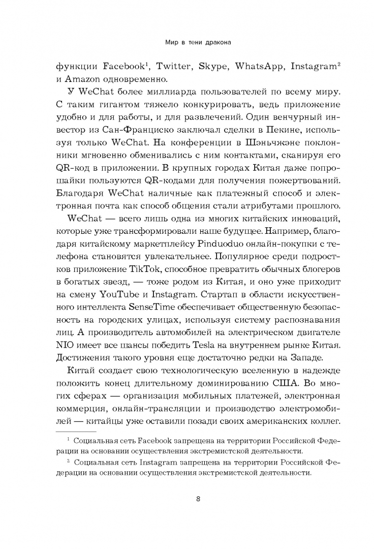 ОписаниеСегодня тренды на рынке технологий задает Китай. TikTok стал самым скачиваемым приложением в мире, а функции WeChat внедряют российские разработчики из VK и "Тинькофф". С этой книгой вы вдохновитесь восточными практиками ведения бизнеса и начнете видеть возможности, которые западные бизнес-гуру никогда не разглядят. Узнаете, как китайская Кремниевая долина прошла путь от копирования американских технологий до разработки собственных инновационных продуктов. В чем уникальность ее управленческих методов и бизнес-стратегий. Ребекка А. Фаннин - ведущий эксперт по китайскому технологическому сектору и основатель информационного бизнес-портала Silicon Dragon Ventures. Автор статей Harvard Business Review, колумнист Forbes и корреспондент CNBC.Сегодня тренды на рынке технологий задает Китай. TikTok стал самым скачиваемым приложением в мире, а функции WeChat внедряют российские разработчики из VK и "Тинькофф". С этой книгой вы вдохновитесь восточными практиками ведения бизнеса и начнете видеть возможности, которые западные бизнес-гуру никогда не разглядят. Узнаете, как китайская Кремниевая долина прошла путь от копирования американских технологий до разработки собственных инновационных продуктов. В чем уникальность ее управленческих методов и бизнес-стратегий. Ребекка А. Фаннин - ведущий эксперт по китайскому технологическому сектору и основатель информационного бизнес-портала Silicon Dragon Ventures. Автор статей Harvard Business Review, колумнист Forbes и корреспондент CNBC.