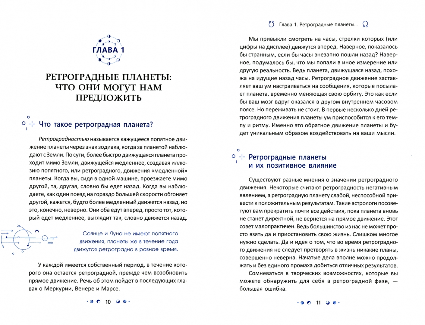 ОписаниеПозвольте представить вам книгу, в которой рассказывается о том, как благополучно пережить ретроградные периоды планет. Вы сможете вооружиться знаниями и защитить себя в тех сферах, на которые ретроградная планета, скорее всего, повлияет. Вы поймете, как в этот период избегать негативных мыслей и принимать более обоснованные решения по вопросам взаимоотношений, общения и бизнеса. И, что еще важнее, научитесь использовать возможности, предлагаемые ретроградными планетами.Основное внимание в этой книге уделяется "советам по выживанию". Например, вы узнаете, стоит ли подписывать контракт, если Меркурий находится в ретроградной фазе, или в этот период новую карьеру лучше не начинать.На мой взгляд, ретроградные планеты могут творить чудеса, потому что порой награждают нас новыми идеями и озарениями. Как вы сами убедитесь, даже в эти периоды вы вполне можете оказаться на волне успеха. Неважно, астролог ли вы со стажем, только обучаетесь или просто хотите знать, как с наименьшим ущербом пережить ретроградный период, - вам в руки попала нужная книга.Берни ЭшменО чем книгаВ первой главе Берни Эшмен раскрывает понятие ретроградности в астрологии и рассказывает о том, что это означает для каждого из нас - в нашей повседневной жизни. В последующих главах автор описывает влияние ретроградных периодов Меркурия, Венеры и Марса на разные знаки зодиака и дает советы, помогающие нейтрализовать его.В последней главе Эшмен отвечает на самые популярные вопросы, касающиеся ретроградной фазы: что делать, если именно в этот период вы получили заманчивое деловое предложение, познакомились со сногсшибательным мужчиной или нуждаетесь в операции.Почему книгу стоит прочитатьАвтор задает не только общее направление действий - например, в ретроградный период Венеры избегайте крупных покупок и идите на уступки в отношениях. (А если вы представитель огненного знака - то вам в этой фазе вообще желательно не "отсвечивать"). Но и рассуждает о конкретных ситуациях - стоит ли назначать дату свадьбу на ретроградный период, покупать машину, подписывать договоры, поступать в институт или отправляться в отпуск.Для кого эта книгаДля тех, кто:- интересуется астрологией;- хочет получить конкретные советы, которые можно использовать при планировании -бизнес-процессов, отпуска, серьезного разговора об отношениях - в неблагоприятные астрологические периоды;- стремится обезопасить себя и своих близких от негативного влияния ретроградного движения планет.Почему решили издатьКнига Берни Эшмена посвящена очень важному аспекту астрологии - ретроградным периодам движения планет, которые традиционно считаются неблагоприятными или даже несущими угрозу. Автор предлагает посмотреть на них с другой стороны - вы можете проявлять агрессию, а можете - использовать ту же энергию, чтобы действовать более напористо. Вступать в конфликты - или научиться терпению. Переживать из-за того, что дела тормозятся, - или заняться анализом ошибок и более трезвым планированием.Вам больше не нужно терять время, просто пережидая неблагоприятные периоды. Рекомендации автора помогут разумно перенаправить силы таким образом, чтобы продолжать двигаться к цели, сохраняя позитивный настрой и хорошие отношения с коллегами и членами семьи.Информация об автореБерни Эшмен уже более трид