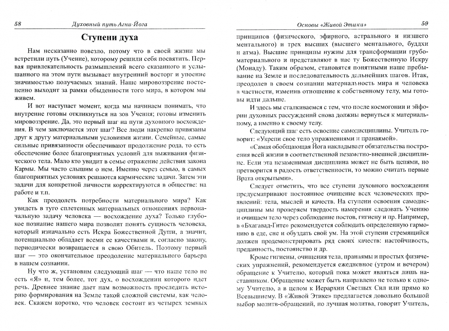 ОписаниеЭто издание включает в себя две книги, являющиеся практическим руководством по Агни-йоге. Практики, предлагаемые здесь, не сложны, однако их применение требует наличия у практикующего огненных качеств - служения, смирения, бесстрашия. Книга "Духовный путь Агни-Йога" - это обмен опытом и предложение изучить некоторые фундаментальные вопросы духовного продвижения. Здесь нет каких бы то ни было ограничений для идущих по пути познания, поскольку авторы отдают себе отчет в том, что сколько людей, столько и путей ко Всевышнему. Между тем книга научит самодисциплине - этому универсальному для большинства духовных направлений способу мобилизации человека. Вторая книга, "Путь сердца", предназначена тем, кто уже принял твердое решение следовать учению "Живой Этики", которую называют "мостом между мирами". Здесь представлены темы в порядке их изложения в оригинальном варианте книг "Мир Огненный". Подобная последовательность дает четкое представление о системе Учения.Составитель В. В. Перевалов.2-е издание.СвернутьЭто издание включает в себя две книги, являющиеся практическим руководством по Агни-йоге. Практики, предлагаемые здесь, не сложны, однако их применение требует наличия у практикующего огненных качеств - служения, смирения, бесстрашия. Книга "Духовный путь Агни-Йога" - это обмен опытом и предложение изучить некоторые фундаментальные вопросы духовного продвижения. Здесь нет каких бы то ни было ограничений для идущих по пути познания, поскольку авторы отдают себе отчет в том, что сколько людей, столько и путей ко Всевышнему. Между тем книга научит самодисциплине - этому универсальному для большинства духовных направлений способу мобилизации человека. Вторая книга, "Путь сердца", предназначена тем, кто уже принял твердое решение следовать учению "Живой Этики", которую называют "мостом между мирами". Здесь представлены темы в порядке их изложения в оригинальном варианте книг "Мир Огненный". Подобная последовательность дает четкое представление о системе Учения.Составитель В. В. Перевалов.2-е издание.СвернутьСвернуть
