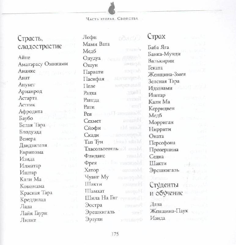 ОписаниеВ этой книге описаны более четырехсот богинь: их роль в мировой культуре, свойства, которыми они обладают, соответствия с четырьмя природными стихиями и цветами радуги. Вы сможете определить богиню, способную оказать вам помощь в самых разных областях жизни - финансы, карьера, отношения, воспитание детей. Узнаете, как обращаться к богине, какие подношения следует делать для получения божественного дара и многое другое. Вы можете уточнить, каким богиням соответствуют те или иные женские архетипы, живущие внутри вас, и рассмотреть аспекты, которые хотите привлечь, усилить или ослабить в вашей собственной жизни.В этой книге описаны более четырехсот богинь: их роль в мировой культуре, свойства, которыми они обладают, соответствия с четырьмя природными стихиями и цветами радуги. Вы сможете определить богиню, способную оказать вам помощь в самых разных областях жизни - финансы, карьера, отношения, воспитание детей. Узнаете, как обращаться к богине, какие подношения следует делать для получения божественного дара и многое другое. Вы можете уточнить, каким богиням соответствуют те или иные женские архетипы, живущие внутри вас, и рассмотреть аспекты, которые хотите привлечь, усилить или ослабить в вашей собственной жизни.