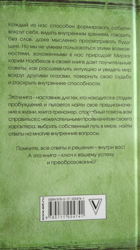 ОписаниеКаждый из нас способен формировать события вокруг себя, видеть внутренним зрением, говорить без слов, даже мысленно просматривать будущее. Но мы не умеем пользоваться этими возможностями, заложенными в нас природой! Мирзакарим Норбеков в своей книге дает поучительные советы, как расшевелить интуицию и увидеть мир вокруг другими глазами, повернуть свою судьбу и раскрыть внутренние способности.Эта книга - наставник для тех, кто находится в стадии пробуждения и пытается найти свое предназначение в жизни, книга-тренажер, способный помочь вам справиться с нежелательными проявлениями своего характера, выбрать собственный путь в мире, найти ответы на многие внутренние вопросы.Помните, все ответы и решения - внутри вас! А эта книга - ключ к вашему успеху и преобразованию!Каждый из нас способен формировать события вокруг себя, видеть внутренним зрением, говорить без слов, даже мысленно просматривать будущее. Но мы не умеем пользоваться этими возможностями, заложенными в нас природой! Мирзакарим Норбеков в своей книге дает поучительные советы, как расшевелить интуицию и увидеть мир вокруг другими глазами, повернуть свою судьбу и раскрыть внутренние способности.Эта книга - наставник для тех, кто находится в стадии пробуждения и пытается найти свое предназначение в жизни, книга-тренажер, способный помочь вам справиться с нежелательными проявлениями своего характера, выбрать собственный путь в мире, найти ответы на многие внутренние вопросы.Помните, все ответы и решения - внутри вас! А эта книга - ключ к вашему успеху и преобразованию!