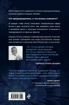 ОписаниеКнига известного индийского учителя посвящена судьбе и вопросу, которым задается каждый человек: что предопределено, а что можно изменить?В каждой главе автор описывает определенную сферу бытия и дает читателю ключ, как направить свою жизнь в желаемое русло с помощью осознанного отношения к повседневности и простых практик.Камлеш Патель передает современным языком глубочайшие знания, показывая, как наши собственные убеждения формируют и внешние обстоятельства, и нашу волю. Камлеш Патель (Дааджи) – мастер практики "Путь сердца" (Heartfulness), которая помогла миллионам людей по всему миру создать свою судьбу.«То, что мы делаем сегодня, определяет наше будущее. То, что мы сделали в прошлом, уже определило наше настоящее. Именно таким образом мы создаем свою судьбу.