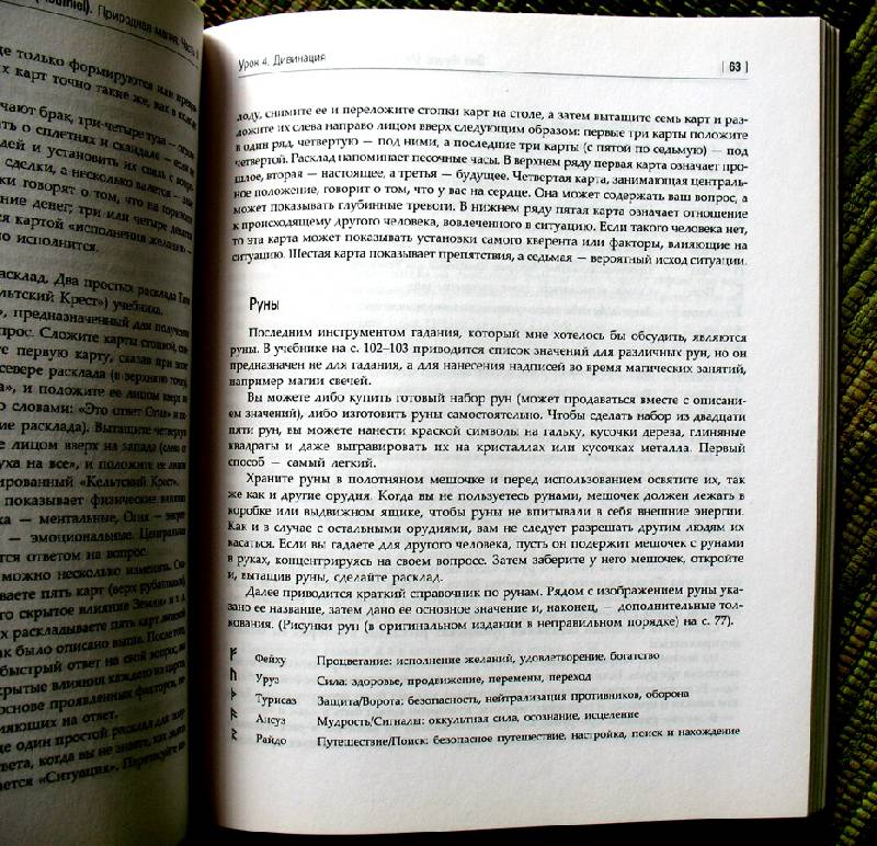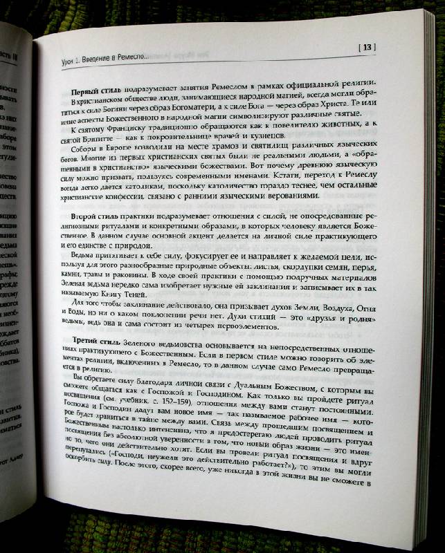 Описание"Природная магия. Учебное пособие" - это третья, заключительная часть трилогии о Викке, древней практике, которая представляет собой синтез религии, магии и философии и основывается на почитании сил и энергии природы.Книга представляет собой оригинальный курс обучения основным викканским практикам и включает в себя восемь уроков, по числу саббатов - викканских праздников. Удобная и продуманная структура данного учебного пособия поможет в освоении материала: каждый урок начинается с повторения пройденного и заканчивается практическими заданиями и контрольными вопросами. В книге содержится широчайший спектр викканских практик, включающий в себя: обустройство рабочего пространства, создание магического круга, медитативные техники, дивинации с использованием хрустального шара и черного зеркала, основы хиромантии, создание и посыл заклинаний, магия трав, основы магии свечей, применение камней, кристаллов и трав в магических целях и многое другое.В процессе повествования автор периодически обращается к первой и второй частям трилогии "Природная магия", поэтому желательно иметь возможность пользоваться этими книгами во время обучения.Книга рассчитана на людей, которые стремятся в совершенстве самостоятельно освоить Природную магию и быть уверенными в своих силах и познаниях.Свернуть"Природная магия. Учебное пособие" - это третья, заключительная часть трилогии о Викке, древней практике, которая представляет собой синтез религии, магии и философии и основывается на почитании сил и энергии природы.Книга представляет собой оригинальный курс обучения основным викканским практикам и включает в себя восемь уроков, по числу саббатов - викканских праздников. Удобная и продуманная структура данного учебного пособия поможет в освоении материала: каждый урок начинается с повторения пройденного и заканчивается практическими заданиями и контрольными вопросами. В книге содержится широчайший спектр викканских практик, включающий в себя: обустройство рабочего пространства, создание магического круга, медитативные техники, дивинации с использованием хрустального шара и черного зеркала, основы хиромантии, создание и посыл заклинаний, магия трав, основы магии свечей, применение камней, кристаллов и трав в магических целях и многое другое.В процессе повествования автор периодически обращается к первой и второй частям трилогии "Природная магия", поэтому желательно иметь возможность пользоваться этими книгами во время обучения.Книга рассчитана на людей, которые стремятся в совершенстве самостоятельно освоить Природную магию и быть уверенными в своих силах и познаниях.СвернутьСвернуть