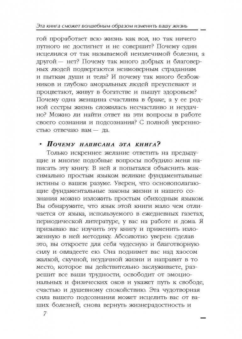 ОписаниеЭта книга даст вам ключ к великим переменам! Она написана специально для вас. Автор предлагает вам познакомиться с законами, согласно которым могущественная Сила Разума управляет жизнью на земле, и ежедневно применять их ради собственного здоровья, счастья и процветания.Эта книга даст вам ключ к великим переменам! Она написана специально для вас. Автор предлагает вам познакомиться с законами, согласно которым могущественная Сила Разума управляет жизнью на земле, и ежедневно применять их ради собственного здоровья, счастья и процветания.