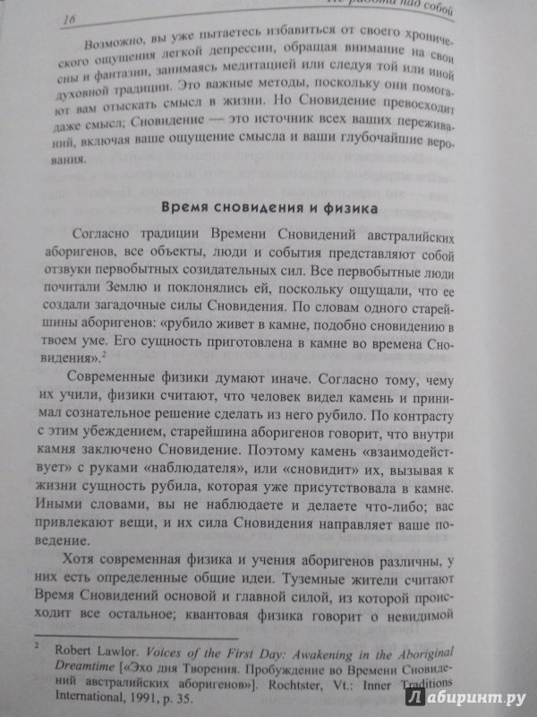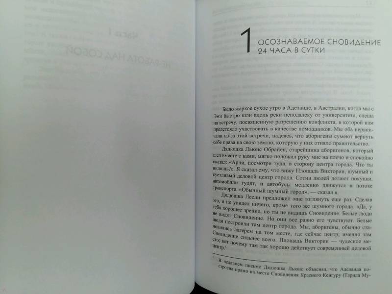 Описание"Эта книга посвящена тому, чтобы научить вас жить, воспринимая силу Сновидения. Мы вместе пустимся в это путешествие, исследуя территорию, где шаманизм пересекает границы физики, где сны становятся телесными переживаниями, и где повседневная жизнь сливается с бессмертием.Моя цель состоит не в том, чтобы лишь время от времени замечать Сновидение, а в развитии постоянного осознания мира снов. С помощью нового метода, который я назвал 24-часовым Осознаваемым Сновидением, мы будем учиться проходить через реальность повседневной жизни за ее пределы, исследуя мир целительства, прорицания и бессмертия". - Арнольд Минделл."Эта книга посвящена тому, чтобы научить вас жить, воспринимая силу Сновидения. Мы вместе пустимся в это путешествие, исследуя территорию, где шаманизм пересекает границы физики, где сны становятся телесными переживаниями, и где повседневная жизнь сливается с бессмертием.Моя цель состоит не в том, чтобы лишь время от времени замечать Сновидение, а в развитии постоянного осознания мира снов. С помощью нового метода, который я назвал 24-часовым Осознаваемым Сновидением, мы будем учиться проходить через реальность повседневной жизни за ее пределы, исследуя мир целительства, прорицания и бессмертия". - Арнольд Минделл.