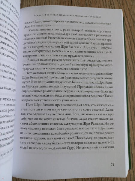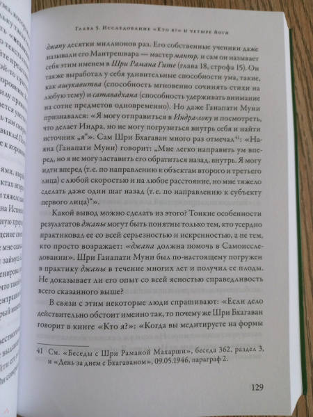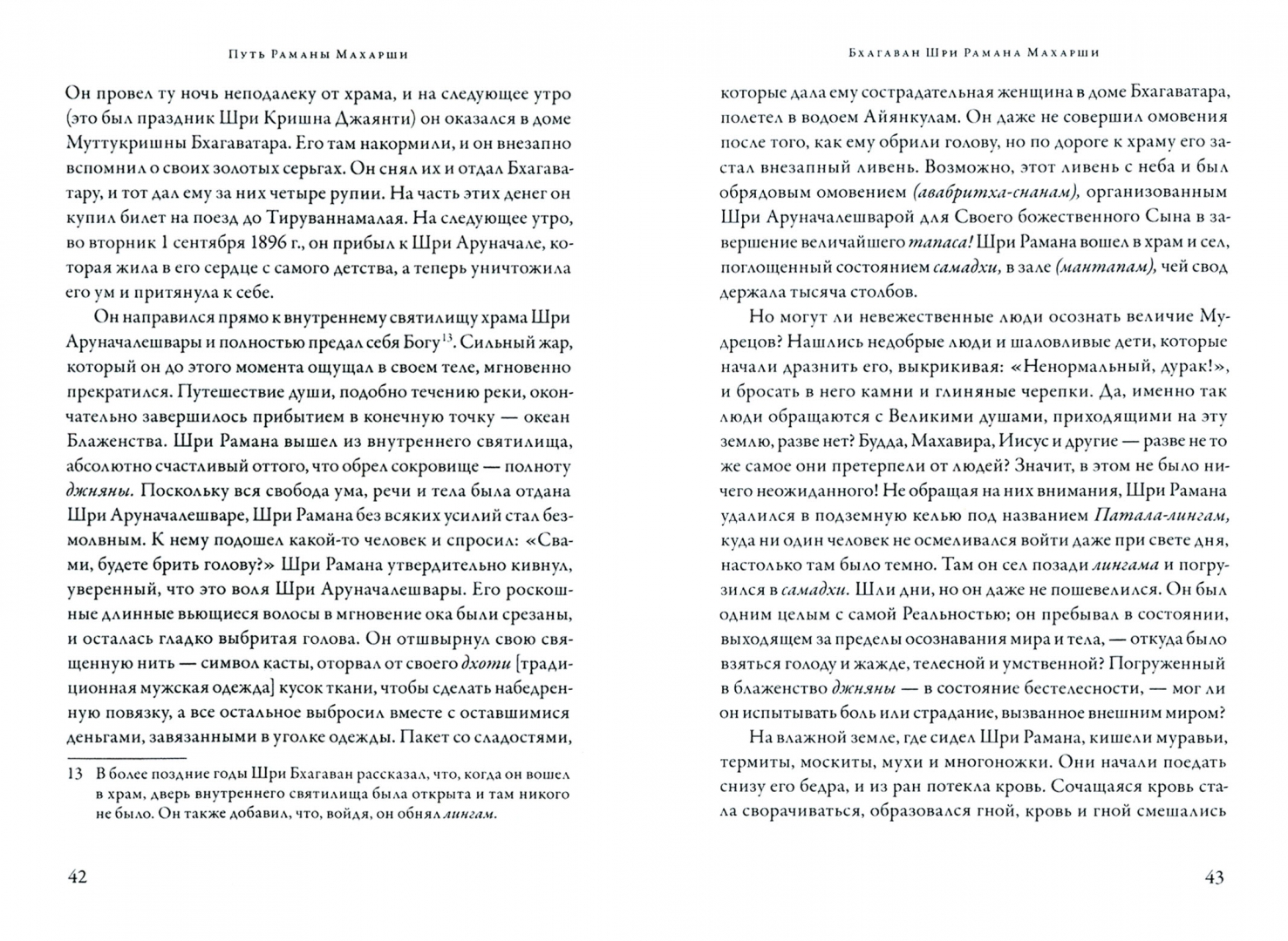 ОписаниеСадху Ом - один из самых выдающихся учеников Раманы МахаршН, наиболее известного и почитаемого учителя адвайты (недвойственности). Эта книга представляет собой исчерпывающее изложение путей Самоисследования и Бхакти (Любви), предлагаемых Раманой Махарши, а также разъяснения его наставлений, касающихся Бога, мира и кармы. Но это не просто пересказ всем известных идей, которые уже есть в других книгах. В ней содержится множество наставлений Раманы Махарши, расположенных в логическом порядке, а также новые и оригинальные изложения многих идей, которые в других книгах упоминаются лишь вскользь. Такая свежесть и оригинальность изложения стала возможной только благодаря тому, что автор сам прошел тот путь, который указал Рамана Махарши, и познал на собственном опыте цель этого пути. В книгу также вошли точный перевод Садху Ома с тамильского языка работы Раманы Махарши "Кто я?" и переводы отдельных строф "Ул- ладу Нарпаду" с его комментариями.Книга предназначена главным образом для зрелых людей, которых невозможно заставить слепо верить во что-либо.СвернутьСадху Ом - один из самых выдающихся учеников Раманы МахаршН, наиболее известного и почитаемого учителя адвайты (недвойственности). Эта книга представляет собой исчерпывающее изложение путей Самоисследования и Бхакти (Любви), предлагаемых Раманой Махарши, а также разъяснения его наставлений, касающихся Бога, мира и кармы. Но это не просто пересказ всем известных идей, которые уже есть в других книгах. В ней содержится множество наставлений Раманы Махарши, расположенных в логическом порядке, а также новые и оригинальные изложения многих идей, которые в других книгах упоминаются лишь вскользь. Такая свежесть и оригинальность изложения стала возможной только благодаря тому, что автор сам прошел тот путь, который указал Рамана Махарши, и познал на собственном опыте цель этого пути. В книгу также вошли точный перевод Садху Ома с тамильского языка работы Раманы Махарши "Кто я?" и переводы отдельных строф "Ул- ладу Нарпаду" с его комментариями.Книга предназначена главным образом для зрелых людей, которых невозможно заставить слепо верить во что-либо.СвернутьСвернуть
