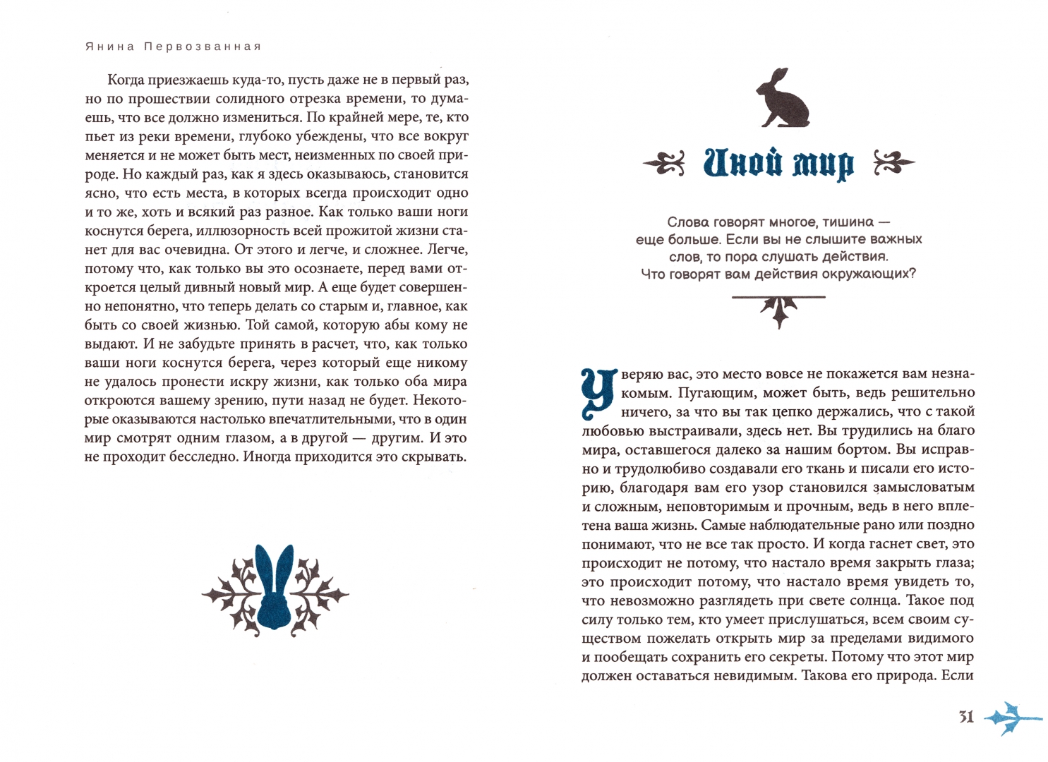 ОписаниеМы отправляемся в путешествие в мир, где живут тени, - мир мертвых. Тень знает, как пройти там, где нет дорог и где при любых других обстоятельствах вы затерялись бы среди прочих несчастных. Она знает о вас то, что сами вы от себя скрываете, научит вас принимать свою двойственность и ходить всеми дорогами всех миров, а не только теми, по которым "можно". Если хорошо постараетесь, вы научитесь не только самостоятельно попадать в мир Тени, но и возвращаться обратно. А если заблудитесь по дороге, то я научу вас читать руны так, как не умеют другие. И вы сможете увидеть по ним обратный путь, так же как прочесть затем любую книгу, даже если она не написана или написана наполовину словами, а наполовину молчанием, которое, по мнению большинства, прочесть невозможно. Я предлагаю вам перестать быть большинством и стать собой. Я предлагаю вам пройти Посвящение.Янина ПервозваннаяМы отправляемся в путешествие в мир, где живут тени, - мир мертвых. Тень знает, как пройти там, где нет дорог и где при любых других обстоятельствах вы затерялись бы среди прочих несчастных. Она знает о вас то, что сами вы от себя скрываете, научит вас принимать свою двойственность и ходить всеми дорогами всех миров, а не только теми, по которым "можно". Если хорошо постараетесь, вы научитесь не только самостоятельно попадать в мир Тени, но и возвращаться обратно. А если заблудитесь по дороге, то я научу вас читать руны так, как не умеют другие. И вы сможете увидеть по ним обратный путь, так же как прочесть затем любую книгу, даже если она не написана или написана наполовину словами, а наполовину молчанием, которое, по мнению большинства, прочесть невозможно. Я предлагаю вам перестать быть большинством и стать собой. Я предлагаю вам пройти Посвящение.Янина Первозванная