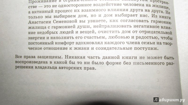 ОписаниеС далекой древности люди испытывали почтительное отношение к своему жилищу. У разных народов и в наше время сохранились ритуалы, связанные с очищением дома от злых духов и наполнением его энергией любви, здоровья и благополучия. Жителям современных мегаполисов становится все труднее сохранить гармоничное равновесие между собственной ранимой душой и циничным миром многоэтажных зданий. Квартира становится своеобразным островком безопасности, где можно укрыться от суеты и чужого влияния. Но и она нуждается в нашей защите. Книга Анастасии Семеновой поможет определить слабые места в энергетическом пространстве жилища, научит эффективному взаимодействию с собственным домом, даст рекомендации, как подобрать для каждой вещи правильное место в соответствии с индивидуальным восприятием мира. Звуки, запахи, цветовая гамма, материал, из которого изготовлены предметы интерьера, стороны света и другие привычные для нас аспекты бытия предстают в книге не как обыденные мелочи, а как важные факторы счастливой жизни в мире и согласии.СвернутьС далекой древности люди испытывали почтительное отношение к своему жилищу. У разных народов и в наше время сохранились ритуалы, связанные с очищением дома от злых духов и наполнением его энергией любви, здоровья и благополучия. Жителям современных мегаполисов становится все труднее сохранить гармоничное равновесие между собственной ранимой душой и циничным миром многоэтажных зданий. Квартира становится своеобразным островком безопасности, где можно укрыться от суеты и чужого влияния. Но и она нуждается в нашей защите. Книга Анастасии Семеновой поможет определить слабые места в энергетическом пространстве жилища, научит эффективному взаимодействию с собственным домом, даст рекомендации, как подобрать для каждой вещи правильное место в соответствии с индивидуальным восприятием мира. Звуки, запахи, цветовая гамма, материал, из которого изготовлены предметы интерьера, стороны света и другие привычные для нас аспекты бытия предстают в книге не как обыденные мелочи, а как важные факторы счастливой жизни в мире и согласии.СвернутьСвернуть