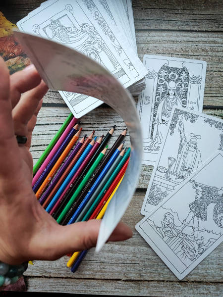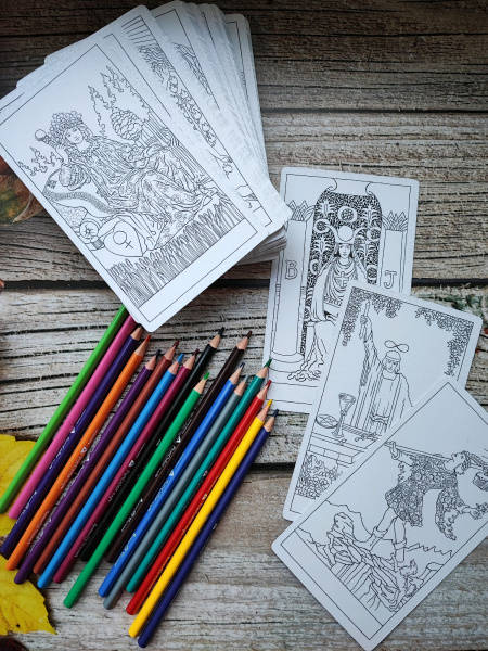ОписаниеКлассическая колода карт Таро А.Э. Уэйта и П.К. Смит представлена в виде, удобном для самостоятельного раскрашивания. Эта своего рода медитативная работа с изображениями позволит создать колоду карт с комфортной для пользователя цветовой гаммой. Кроме того можно быть уверенным, что ни один - даже самый маленький - элемент рисунка не ускользнет от внимания и в результате сформируется наиболее полное представление о символическом наполнении этой колоды карт.Классическая колода карт Таро А.Э. Уэйта и П.К. Смит представлена в виде, удобном для самостоятельного раскрашивания. Эта своего рода медитативная работа с изображениями позволит создать колоду карт с комфортной для пользователя цветовой гаммой. Кроме того можно быть уверенным, что ни один - даже самый маленький - элемент рисунка не ускользнет от внимания и в результате сформируется наиболее полное представление о символическом наполнении этой колоды карт.
