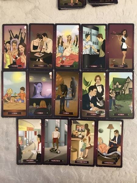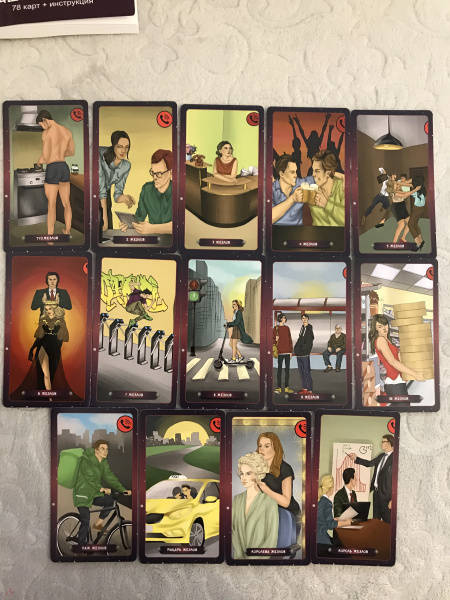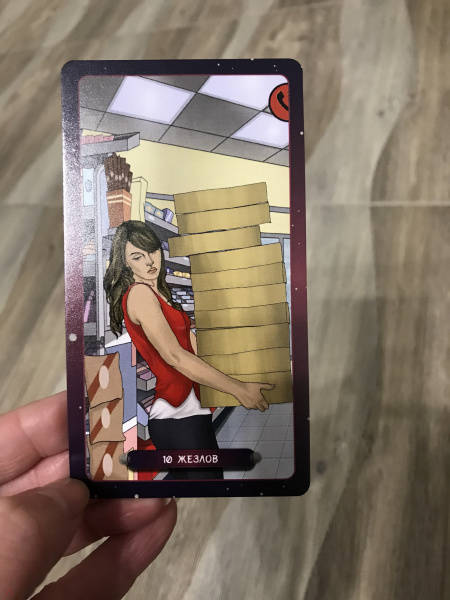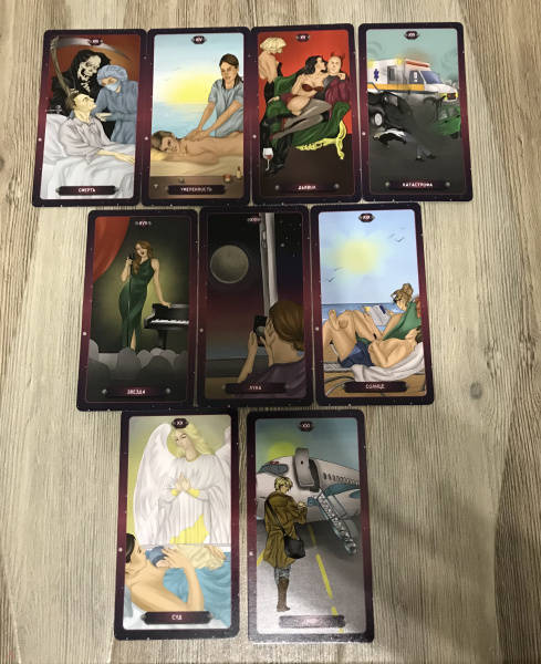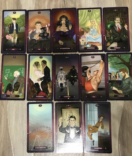ОписаниеКолода «Таро нашего времени» представляет собой интереснейший гадательный инструмент.Арканы наполнены глубоким символизмом, который мы регулярно встречаем в повседневном мире. Архетипы, изображенные на картах, приятно удивят своей простотой и помогут взглянуть по-новому на привычные вещи и события.Данная колода доступна каждому, кто захочет проанализировать те или иные события с помощью карт. Она поможет принять верное решение, понять мотивы поведения другого человека (и свои собственные), выбрать ту или иную стратегию и многое-многое другое…Герои арканов напомнят вам самих себя или знакомых вам людей, а показанные ситуации пробудят подсознательные воспоминания и задействуют силу ассоциативного восприятия.Основой описания карт стали мой многолетний опыт и наблюдения, которые я собрала воедино и вложила в уникальную и доступную для понимания систему. Я от всей души желаю вам успехов в работе с картами Таро и благодарю за выбор этой колоды!Размер карт 66х120 мм.Колода «Таро нашего времени» представляет собой интереснейший гадательный инструмент.Арканы наполнены глубоким символизмом, который мы регулярно встречаем в повседневном мире. Архетипы, изображенные на картах, приятно удивят своей простотой и помогут взглянуть по-новому на привычные вещи и события.Данная колода доступна каждому, кто захочет проанализировать те или иные события с помощью карт. Она поможет принять верное решение, понять мотивы поведения другого человека (и свои собственные), выбрать ту или иную стратегию и многое-многое другое…Герои арканов напомнят вам самих себя или знакомых вам людей, а показанные ситуации пробудят подсознательные воспоминания и задействуют силу ассоциативного восприятия.Основой описания карт стали мой многолетний опыт и наблюдения, которые я собрала воедино и вложила в уникальную и доступную для понимания систему. Я от всей души желаю вам успехов в работе с картами Таро и благодарю за выбор этой колоды!Размер карт 66х120 мм.