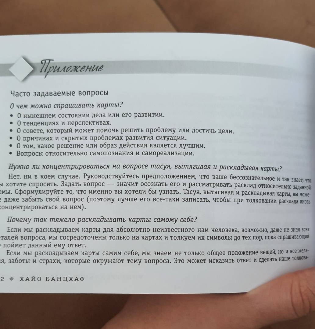 ОписаниеУниверсальное Таро Уэйта - это переработанная версия самой популярной в мире колоды Таро Райдера-Уэйта, созданной в начале XX века известным эзотериком Артуром Эдвардом Уэйтом и художницей Памелой Колман Смит, сумевшей перенести на бумагу образы карт, придуманные Уэйтом. В 1991 году эта колода была обновлена экспертом в области Таро Мэри Хэнсон-Робертс.В этой книге Хайо Банцхаф, опытнейший таролог в мире, рассказывает об истории происхождения Таро и зарождении культуры гадания на картах, а также дает самую полную инструкцию по самостоятельной работе с картами.Вы узнаете, как задавать вопрос перед гаданием, как тасовать и раскладывать карты, какие расклады подходят для тех или иных вопросов, какое значение имеет порядок карт в раскладе и как правильно читать их послание.Каждому из арканов Таро в книге дается подробное описание, включая символику отдельных деталей, описание общего значения карты, а также ключевые слова, которые будут помогать вам в дальнейшей работе с Таро.Почему книгу стоит прочитатьВнимательно изучив эту книгу, вы с легкостью овладеете искусством толкования карт - познакомитесь с символикой Старших и Младших арканов, научитесь выполнять расклады для разных типов вопросов и читать послания карт в раскладах.Для кого эта книгаКнига адресована всем, кто интересуется Таро и предсказаниями, ищет ответы на вопросы о своем месте в мире, о взаимоотношениях и перспективах развития в том или ином направлении. Благодаря доступному изложению авторитетного автора, она будет полезна как новичкам, так и опытным практикам Таро.Почему решили издатьРаботы Хайо Банцхафа признаны во всем мире как авторитетные исследования по психологии, магии, астрологии и Таро."Универсальное таро Уэйта" - одна из самых популярных работ Хайо Банцхафа, созданная им специально для удобной практической работы с картами.Информация об автореХайо Банцхаф (1949-2009). Изучал языки во Франции, философию в Мюнхенском университете, после окончания которого 12 лет проработал банковским служащим, изучая астрологию, психологию и Таро в свободное время. С 1985 года Хайо Банцхаф вел жизнь свободного предпринимателя, проводил семинары и лекции, занимался частной астрологической практикой и консультировал несколько издательств. Написал более 20 книг.СвернутьУниверсальное Таро Уэйта - это переработанная версия самой популярной в мире колоды Таро Райдера-Уэйта, созданной в начале XX века известным эзотериком Артуром Эдвардом Уэйтом и художницей Памелой Колман Смит, сумевшей перенести на бумагу образы карт, придуманные Уэйтом. В 1991 году эта колода была обновлена экспертом в области Таро Мэри Хэнсон-Робертс.В этой книге Хайо Банцхаф, опытнейший таролог в мире, рассказывает об истории происхождения Таро и зарождении культуры гадания на картах, а также дает самую полную инструкцию по самостоятельной работе с картами.Вы узнаете, как задавать вопрос перед гаданием, как тасовать и раскладывать карты, какие расклады подходят для тех или иных вопросов, какое значение имеет порядок карт в раскладе и как правильно читать их послание.Каждому из арканов Таро в книге дается подробное описание, включая символику отдельных деталей, описание общего значения карты, а также ключевые слова, которые будут помогать вам в дальнейшей работе с Таро.Почему книгу стоит проч