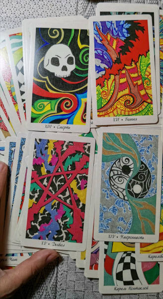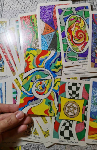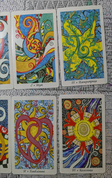 Описание"Таро интуиции" - авторская колода удивительной красоты от талантливого художника Дарьи Тарасовой. Каждая карта несет определенную энергию и вызывает поток ассоциаций. Вы смотрите на рисунок и погружаетесь в особое медитативное состояние, в котором легко подключиться к интуиции и подсознанию и получить ответы на интересующие вопросы, исследовать свой внутренний мир, увидеть, какая энергия наполняет те или иные процессы в вашей жизни.В подарочный набор входит колода из 78 карт в отдельной коробочке, мини блокнот, чтобы делать заметки во время практики, и книга с комментариями, в которой представлена вся необходимая информация:- история создания колоды, принципы работы с картами;- подробное описание 22 Старших и 56 Младших Арканов;- толкование каждой карты в положительном и отрицательном значениях;- авторский способ гадания, а также два классических расклада для прояснения вопросов во всех областях - любовные отношения, перспективы в карьере, духовное развитие.Желаем приятной и продуктивной практики!О чем книгаКолода "Таро интуиции" - это 78 карт с сильными по энергии абстрактными изображениями. Автор создавала колоду с целью пробудить в вас интуицию - способность ясно понимать и проникать в самую суть волнующих вопросов на любую тему, благодаря озарениям, инсайтам и посланиям из подсознания.Карты отличаются от традиционного Таро. Яркие, затейливые узоры, линии, символизирующие потоки энергий, которые наполняют наш мир. Увидеть их могут лишь избранные, но "Таро интуиции" откроет вам это уникальное восприятие реальности.На картах есть подсказки - ключевые узоры и цвета, от которых можно отталкиваться при расшифровке и толковании. Например, черно-белые клетки означают рациональность; цвета соответствуют стихиям мастей; если общая композиция рисунка вертикальная, то это путь или стремление вверх, необходимость развития, а если горизонтальная - спокойствие или стабильность. Каждая масть соотносится со своей стихией и отвечает за определенную сферу. Мечи - стихия Воздуха: ум, логика, идеалы. Пентакли - стихия Земли: деньги, материальные ценности, здоровье. Жезлы - стихия Огня: воля, амбиции, реализация своих желаний. Чаши - Вода: эмоции, чувства, общение.Почему карты стоит купить- "Таро интуиции" - это уникальная авторская колода с красивейшими иллюстрациями. Эксклюзивные рисунки, которые создавались автором из особого медитативного состояния, идеально подходят для духовной практики, обретения гармонии и погружения в свой внутренний мир. А еще это действенный инструмент для предсказаний и прояснений интересующих вас вопросов в любой области жизни - отношения, любовь, карьера, финансы и т.д.- Для работы с картами не требуется особенной подготовки, они откроются и будут разговаривать с вами, даже если вы впервые практикуете Таро. Главное, чтобы у вас было желание познать себя, взглянуть на мир и происходящие в нем процессы, получить ценный совет от Высших Сил - тогда колода станет надежным помощником, верным другом и личным инструментом для самопознания.- Эта колода поможет вам тренироваться слышать себя и доверять своей интуиции.Для кого эти картыК колоде прилагается книга с подробными комментариями, поэтому работать с картами смогут даже новички в области эзотерики и Таро.В целом карты адресованы всем, кто:- интересуется пр