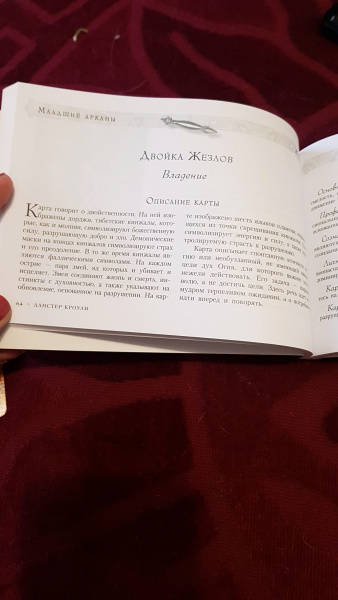 ОписаниеКолода «Таро Тота» создана в 40-х годах XX столетия Алистером Кроули — известным магом, поэтом, писателем и основоположником философии Телемы. В этой колоде, названной по имени древнеегипетского бога мудрости, Кроули представил все свои магические знания, а леди Фрида Харрис, талантливая художница, запечатлела их в рисунках. Благодаря своей неоднозначности карты Алистера Кроули стали одной из самых популярных колод нашего времени. Если в ранних колодах Таро тема той или иной карты передавалась с помощью простых и ясных образов, то Кроули сделал изображения на картах абстрактными, выражая значение арканов сложной символикой, берущей начало в мире магии, астрологии, алхимии, каббалы, средиземноморских и кельтских традиций, а также в тайной мифологии Древнего Египта. О чем книга и картыВ данный комплект входит колода из 78 карт и книга с комментариями, в которой вы найдете:• историю создания Таро Тота, а также биографию Алистера Кроули и леди Фриды Харрис;• интересный и обстоятельный рассказ о том, как работать с колодой Кроули;• ключи к пониманию символики каждой карты;• интерпретацию карт по вопросам личных отношений, профессии и развития сознания;• подробное описание шести раскладов, которые помогают прояснить различные жизненные ситуации и принять правильное решение;• метод, разработанный Алистером Кроули, который позволяет определить ваши личные карты - карту личности, карту характера и карту роста.Почему карты стоить купитьПомимо чисто эстетического удовольствия от созерцания замечательных иллюстраций, читатель может приобщиться к святая святых западной эзотерики — ее богатому и многозначному символизму. Что, безусловно, позволит ему не только расширить кругозор, но и откроет двери к более глубокому пониманию произведений литературы, живописи и архитектуры, где тематика сакральных знаков часто играет не последнюю роль.Кроули сделал мотивы карт абстрактными, выражая значение арканов сложной разветвленной символикой, истоками имеющей мир магии, астрологии, алхимии, каббалы, средиземноморских и кельтских традиций, а также в мифологии Древнего Египта. Его карты обладают огромной притягательной силой.Для кого эти картыКолода представляет собой интерес как для самого широкого читательского круга, так, в особенности, для любителей (и, конечно же, профессионалов) «раскинуть карты», чтобы умерить, например, обеспокоенность будущим или укрепить уверенность в эффективности намечаемых действий. Кроме того, набор по достоинству оценят все, кто интересуется историей оккультных наук и магией. Почему решили издать«Таро Тота» — не просто карты, дающие любознательному уму бесценные подсказки. Это бесценное культурное наследие выдающейся личности — мага, поэта, гроссмейстера Алистера Кроули. Интерес читателей к Кроули неисчерпаем: вокруг имени автора всегда было огромное количество тайн и мифов.Гадание на картах Таро пользуется широкой популярностью как среди предсказателей-экстрасенсов, так и среди самых обычных людей. Книга и карты Алистера Кроули позволяют найти более глубокие и точные толкования бесконечно разнообразным, сравнимым разве что с разнообразием человеческих судеб, карточным раскладам.Информация об авторахАлистер Кроули«Имя Алистера Кроули действует на людей как страшное заклинание, у