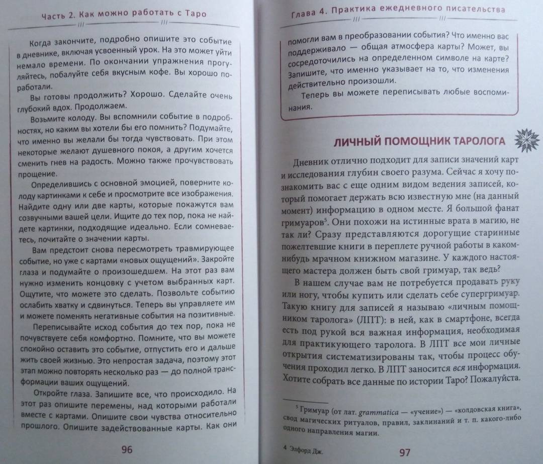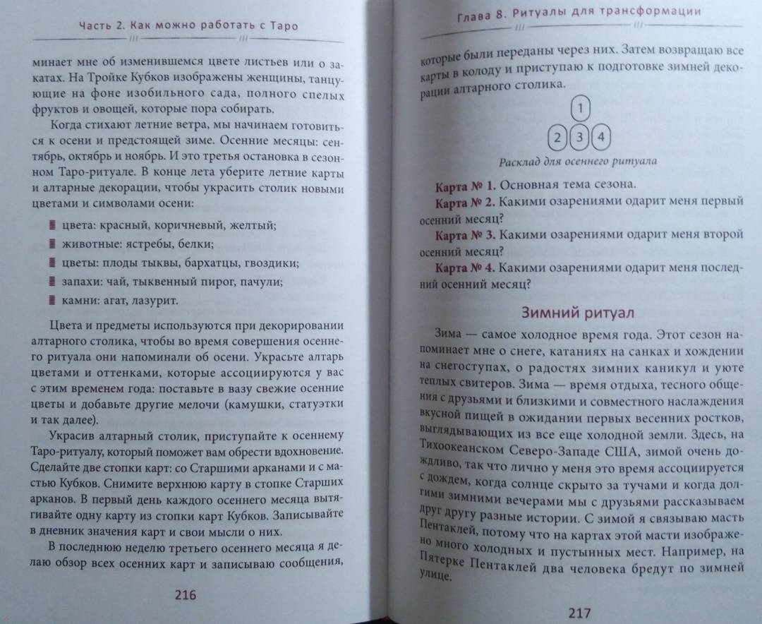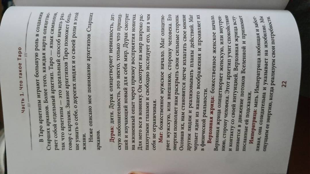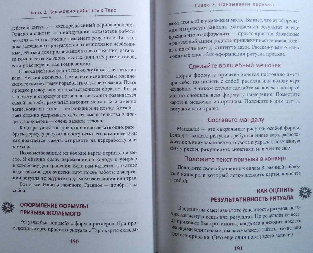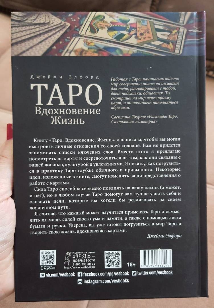 Описание"Таро - это больше, чем колода для гадания. Это удивительный инструмент для исследования самого себя и мира вокруг. Карты Таро привносят спокойствие и гармонию в жизнь, где события пролетают с сумасшедшей скоростью. Они помогают выбрать лучший для вас путь и решение в сложной ситуации. Таро обладают силой, способной изменить вашу жизнь - нужно лишь "расколоть орешек и добраться до ядра".Вы уже знакомы с картами Таро? Прекрасно. В книге "Таро. Вдохновение. Жизнь" описаны эксперименты и идеи, которые помогут углубить ваши знания. Эта книга - практикум по исследованию новых вариантов взаимодействия с любимой колодой" (Джейми Элфорд).Автор описывает различные способы работы с картами Таро. Классические - расклады для прояснения тех или иных вопросов и предсказания будущего. И методы, дополняющие традиционную практику. Вы узнаете, что к Таро можно обращаться за помощью в решении повседневных дел, для обретения вдохновения в творчестве, для медитации, а также, чтобы призвать желаемое и провести ритуалы. Советы и рекомендации автора будут работать с любой колодой.О чем книгаО том, как с помощью карт улучшить свою жизнь и разнообразить тарологическую практику.В первой части вы познакомитесь с историей Таро, поймете, как выбрать первую колоду и установить связь с картами. Материал второй части выходит за пределы привычной системы гадания. Вы узнаете, как исследовать творческую часть себя, как призывать в свою жизнь желаемое и проводить ритуалы, а также как с помощью колоды общаться с духами-наставниками. В третьей части рассказывается, как войти в сообщество тарологов.Благодаря книге вы:- познакомитесь с мифами и историей карт, структурой колоды и особенностями системы Таро;- узнаете, как расшифровать код каждой карты с помощью четырех способов толкования;- поймете, как работают расклады Таро, как их читать и создавать собственные версии;- в компании личного Таро-помощника начнете вести дневник вашего путешествия по миру Таро;- персонализируете колоду, изменив ее размер или раскрасив, изготовите чехол для хранения колоды;- сможете вдохновляться картами в творчестве;- освоите медитацию на образы арканов Таро;- научитесь привлекать желаемое с помощью ритуалов Таро.Почему книгу стоит прочитатьКнигу "Таро. Вдохновение. Жизнь" я написала, чтобы вы могли выстроить личные отношения со своей колодой. Вам не придется запоминать списки ключевых слов. Вместо этого я предлагаю посмотреть на карты и сосредоточиться на том, как они связаны с вашей жизнью, культурой и увлечениями. Я покажу, как погрузиться в практику Таро глубже обычного и привычного. Некоторые идеи, изложенные в книге, смогут изменить ваши представления о работе с картами.Сила Таро способна серьезно повлиять на вашу жизнь (а может, и нет), но в любом случае Таро помогут вам лучше узнать себя и осознать цели, которые вы хотели бы реализовать на своем жизненном пути.Джейми ЭлфордДля кого эта книгаКнига будет интересна:- новичкам и опытным тарологам - каждый найдет здесь полезную информацию;- тем, кто намерен узнать больше о способах применения карт и углубить свою практику Таро;- тем, кто интересуется мистическим символизмом, эзотерикой и тайными учениями.Почему решили издатьМиллионы людей по всем у миру обращаются к картам Таро за советом и прогнозом о будущих событиях. Однако