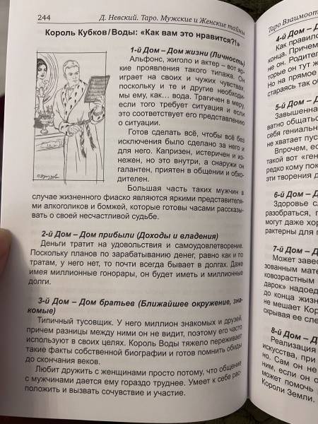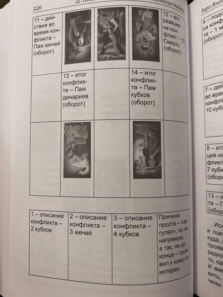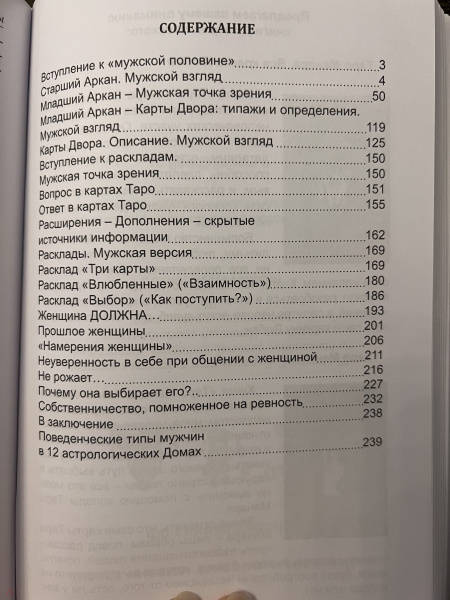 ОписаниеПеред вами книга, посвященная колоде "Таро. Мужские и Женские тайны". С одной стороны, эта книга в большей своей части может быть использована с любой колодой карт Таро - расклады, интерпретации, акценты трактовок.В книге подробно и с примерами разобраны 17 уникальных раскладов: "Развитие женских достоинств", "Ошибки разведенных - поиск причин развода", "Неуверенность в себе в общении с мужчиной", "Понимание мужчины и его намерений", "Почему не зовут замуж?", "Как оценить/подчеркнуть свои достоинства и спрятать свои недостатки", "Неполная семья", "Требования в мужчине - за или против? Формулы корректного управления", "Хочу - ради чего, во имя чего, для чего - три вида мужчин - бежим, лежим, волочимся", "Дрессировка и приучение", "Женщина ДОЛЖНА...", "Прошлое женщины", "Намерения женщины", "Неуверенность в себе в общении с женщиной", "Не рожает...", "Почему выбирает его?..", "Собственничество, помноженное на ревность".А еще? Еще - подробный и детальный разбор каждой карты колоды "Таро. Мужские и Женские тайны" с демонстрацией работы в "мужском" и "женском" режимах ответов. Как видите, скучно не будет!Книга-перевертыш.СвернутьПеред вами книга, посвященная колоде "Таро. Мужские и Женские тайны". С одной стороны, эта книга в большей своей части может быть использована с любой колодой карт Таро - расклады, интерпретации, акценты трактовок.В книге подробно и с примерами разобраны 17 уникальных раскладов: "Развитие женских достоинств", "Ошибки разведенных - поиск причин развода", "Неуверенность в себе в общении с мужчиной", "Понимание мужчины и его намерений", "Почему не зовут замуж?", "Как оценить/подчеркнуть свои достоинства и спрятать свои недостатки", "Неполная семья", "Требования в мужчине - за или против? Формулы корректного управления", "Хочу - ради чего, во имя чего, для чего - три вида мужчин - бежим, лежим, волочимся", "Дрессировка и приучение", "Женщина ДОЛЖНА...", "Прошлое женщины", "Намерения женщины", "Неуверенность в себе в общении с женщиной", "Не рожает...", "Почему выбирает его?..", "Собственничество, помноженное на ревность".А еще? Еще - подробный и детальный разбор каждой карты колоды "Таро. Мужские и Женские тайны" с демонстрацией работы в "мужском" и "женском" режимах ответов. Как видите, скучно не будет!Книга-перевертыш.СвернутьСвернуть