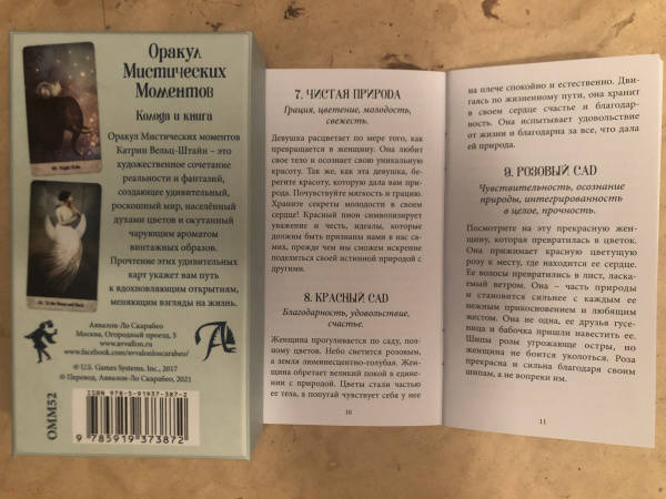 ОписаниеОракул Мистических моментов Катрин Вельц-Штайн - это художественное сочетание реальности и фантазий, создающее удивительный, роскошный мир, населённый духами цветов и окутанный чарующим ароматом винтажных образов. Прочтение этих удивительных карт укажет вам путь к вдохновляющим открытиям, меняющим взгляды на жизнь.Автор: Катрин Вельц-ШтайнКомплектация: 52 карты с инструкцией на русском языке.Размеры:70х127 мм.Материал: картон, бумага.Оракул Мистических моментов Катрин Вельц-Штайн - это художественное сочетание реальности и фантазий, создающее удивительный, роскошный мир, населённый духами цветов и окутанный чарующим ароматом винтажных образов. Прочтение этих удивительных карт укажет вам путь к вдохновляющим открытиям, меняющим взгляды на жизнь.Автор: Катрин Вельц-ШтайнКомплектация: 52 карты с инструкцией на русском языке.Размеры:70х127 мм.Материал: картон, бумага.