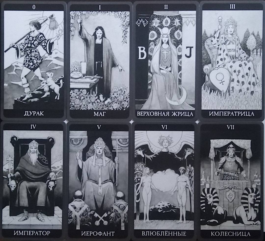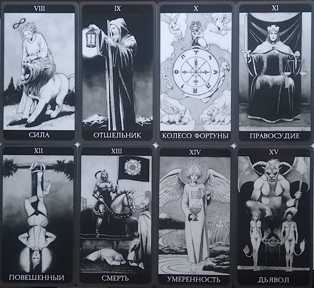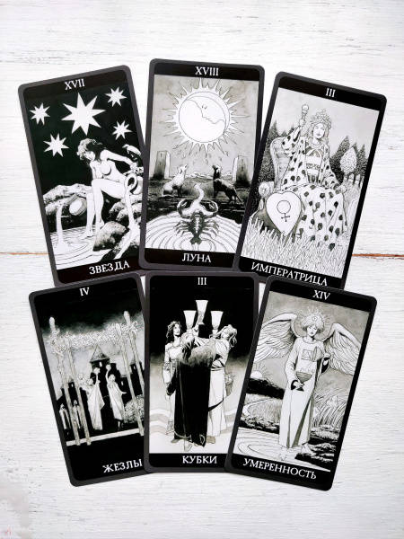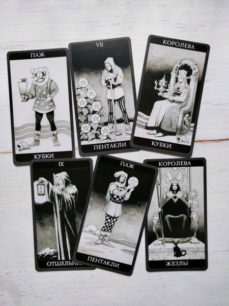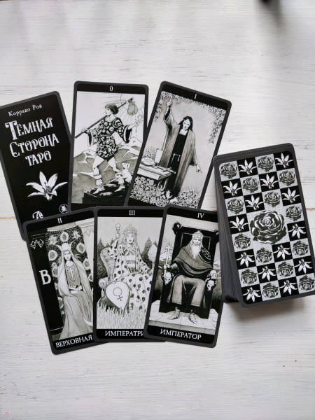 ОписаниеРабота Коррадо Рой приглашает всех окунуться в Тёмную Сторону Таро. Эта колода, продолжающая традиции Таро А.Э. Уэйта и П.К. Смит, но выполнена в монохромном варианте, показывает нам тёмные стороны нашего бытия, порой пугающие, но необходимые, чтобы проникнуть в самые глубины подсознания.Размеры:66х120 мм.Работа Коррадо Рой приглашает всех окунуться в Тёмную Сторону Таро. Эта колода, продолжающая традиции Таро А.Э. Уэйта и П.К. Смит, но выполнена в монохромном варианте, показывает нам тёмные стороны нашего бытия, порой пугающие, но необходимые, чтобы проникнуть в самые глубины подсознания.Размеры:66х120 мм.
