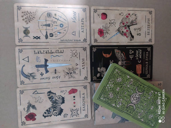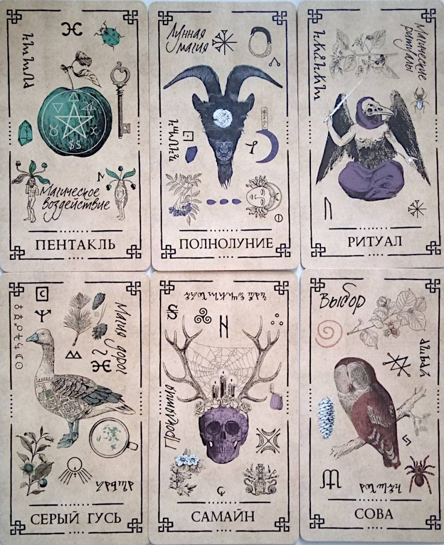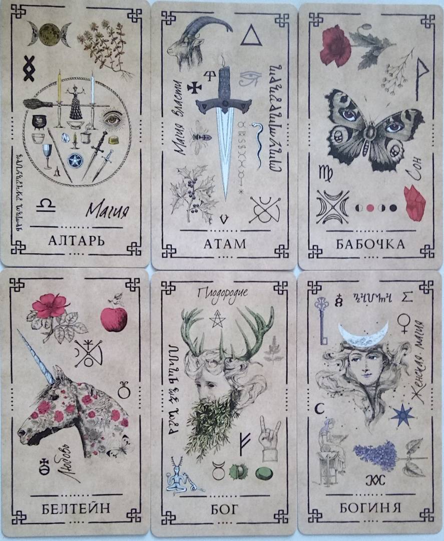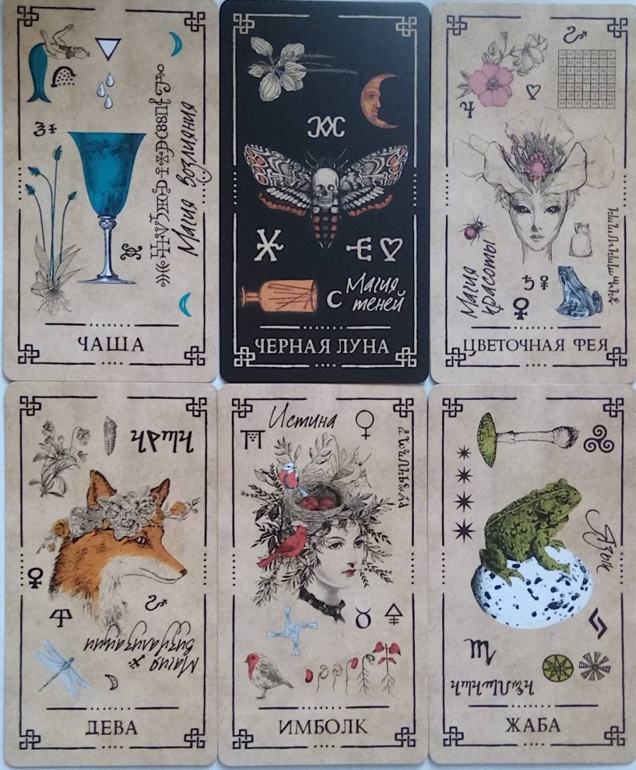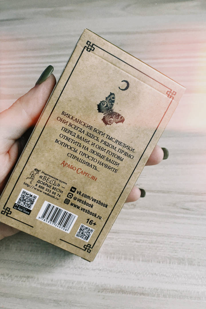 Описание"Оракул Теней" - он архаичен, прост и понятен, дик и первороден, он дышит лесом и пахнет свежей травой. На нем следы кроличьих лап, он шепотом рассказывает историю обителей мира Викки и передает вам их мудрые послания...Иллюстрации карт и саму систему придумал, разработал и воплотил в жизнь один и тот же человек - викканский маг Арабо Саргсян. В Оракуле нет мастей, Старших и Младших Арканов. Здесь все как на полке в шкафчике лесной ведьмы: каждая карта индивидуальна и передает нам свою мудрость, как и любая трава или корень. Вы можете задать вопрос викканским богам и вытащить карту либо воспользоваться раскладами, данными в книге. Однако Оракул предназначен не только для предсказаний, но и для магической работы. В книге вы найдете разные необычные задания: вы будете проводить с картой день, создавать из колоды талисманы и амулеты, сжигать карты, сшивать, раскрашивать и т. д.Необязательно следовать викканской вере, чтобы пользоваться этими картами. Зеленые боги знают, что вам посоветовать - вне зависимости от вашей религии (Арабо Саргсян).48 карт.Свернуть"Оракул Теней" - он архаичен, прост и понятен, дик и первороден, он дышит лесом и пахнет свежей травой. На нем следы кроличьих лап, он шепотом рассказывает историю обителей мира Викки и передает вам их мудрые послания...Иллюстрации карт и саму систему придумал, разработал и воплотил в жизнь один и тот же человек - викканский маг Арабо Саргсян. В Оракуле нет мастей, Старших и Младших Арканов. Здесь все как на полке в шкафчике лесной ведьмы: каждая карта индивидуальна и передает нам свою мудрость, как и любая трава или корень. Вы можете задать вопрос викканским богам и вытащить карту либо воспользоваться раскладами, данными в книге. Однако Оракул предназначен не только для предсказаний, но и для магической работы. В книге вы найдете разные необычные задания: вы будете проводить с картой день, создавать из колоды талисманы и амулеты, сжигать карты, сшивать, раскрашивать и т. д.Необязательно следовать викканской вере, чтобы пользоваться этими картами. Зеленые боги знают, что вам посоветовать - вне зависимости от вашей религии (Арабо Саргсян).48 карт.СвернутьСвернуть