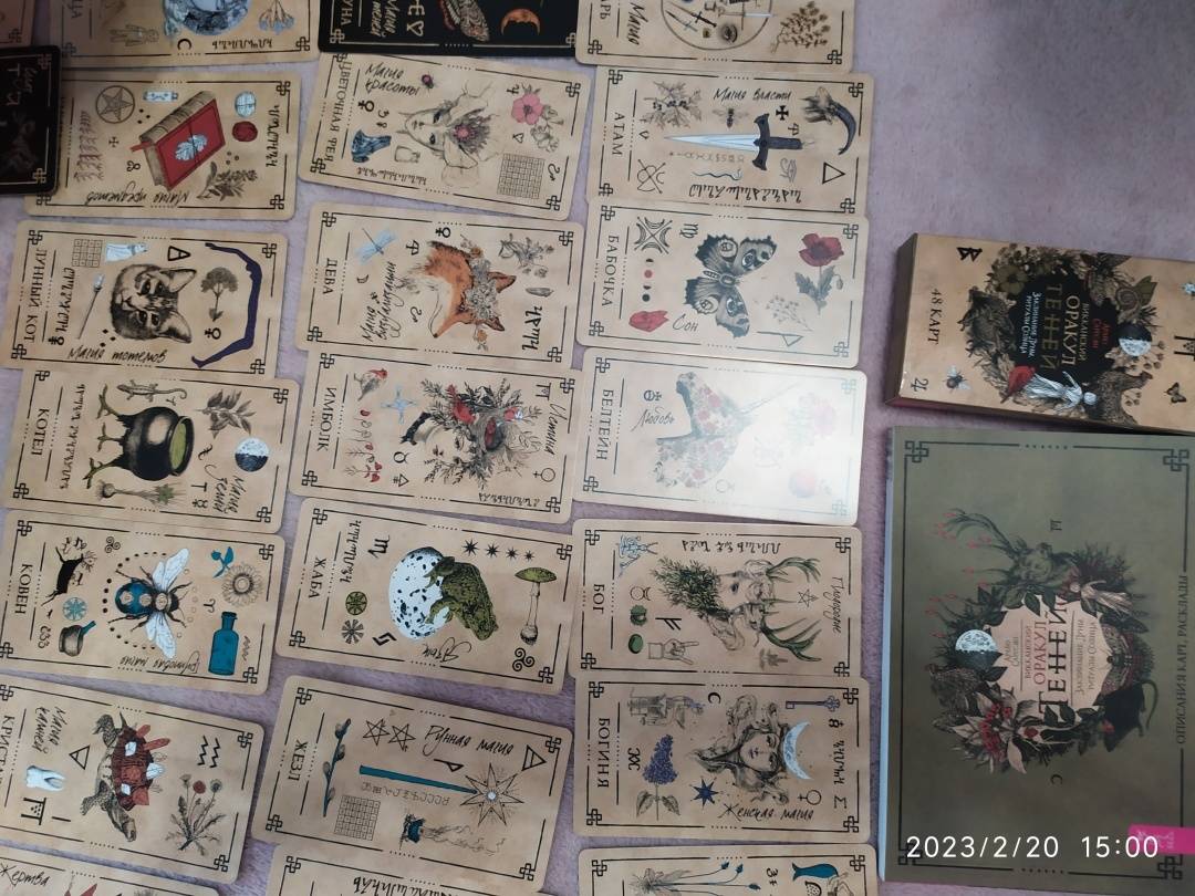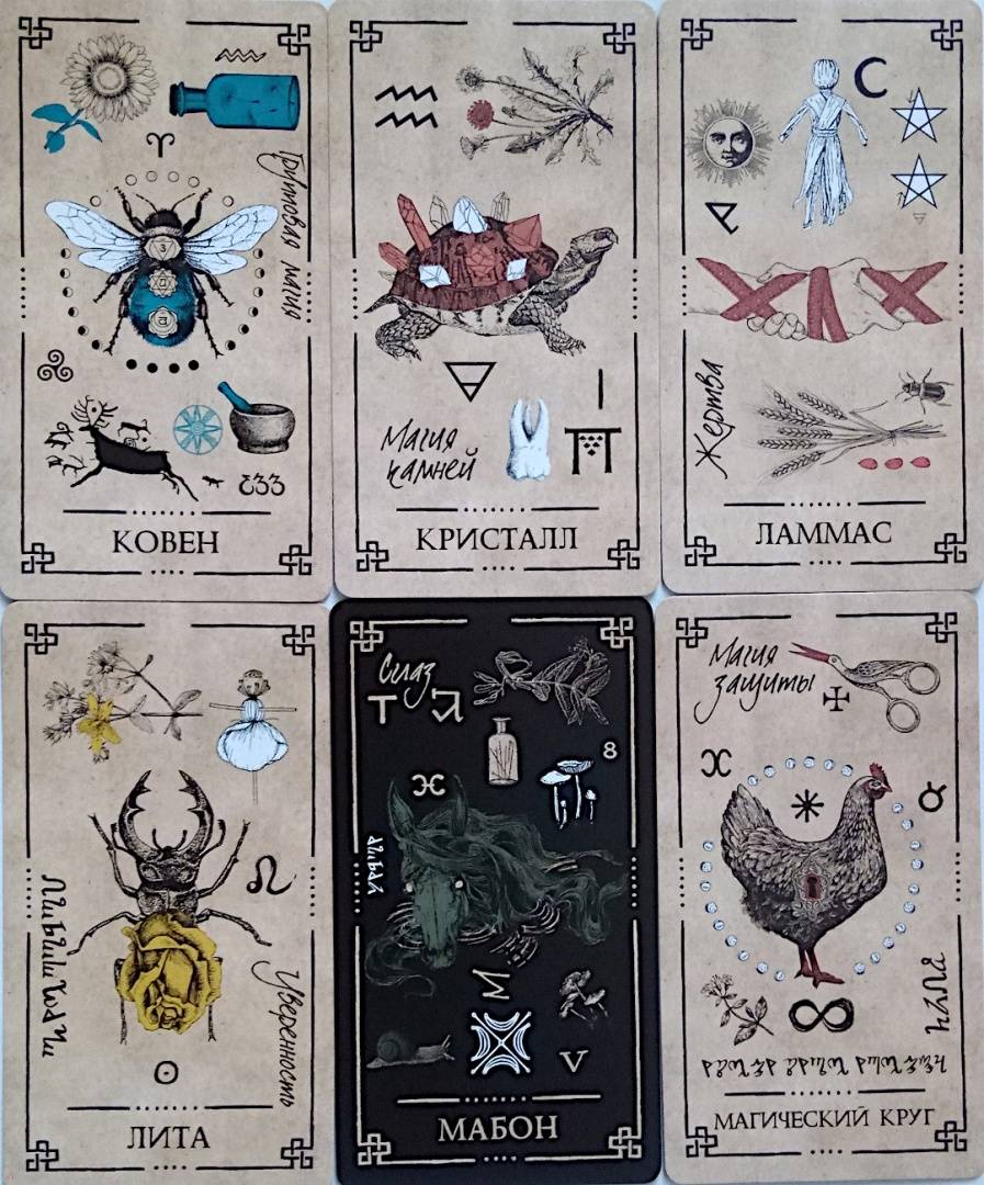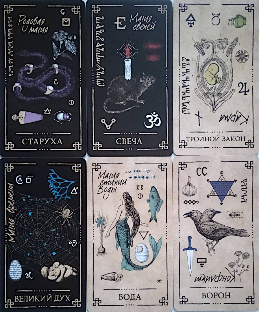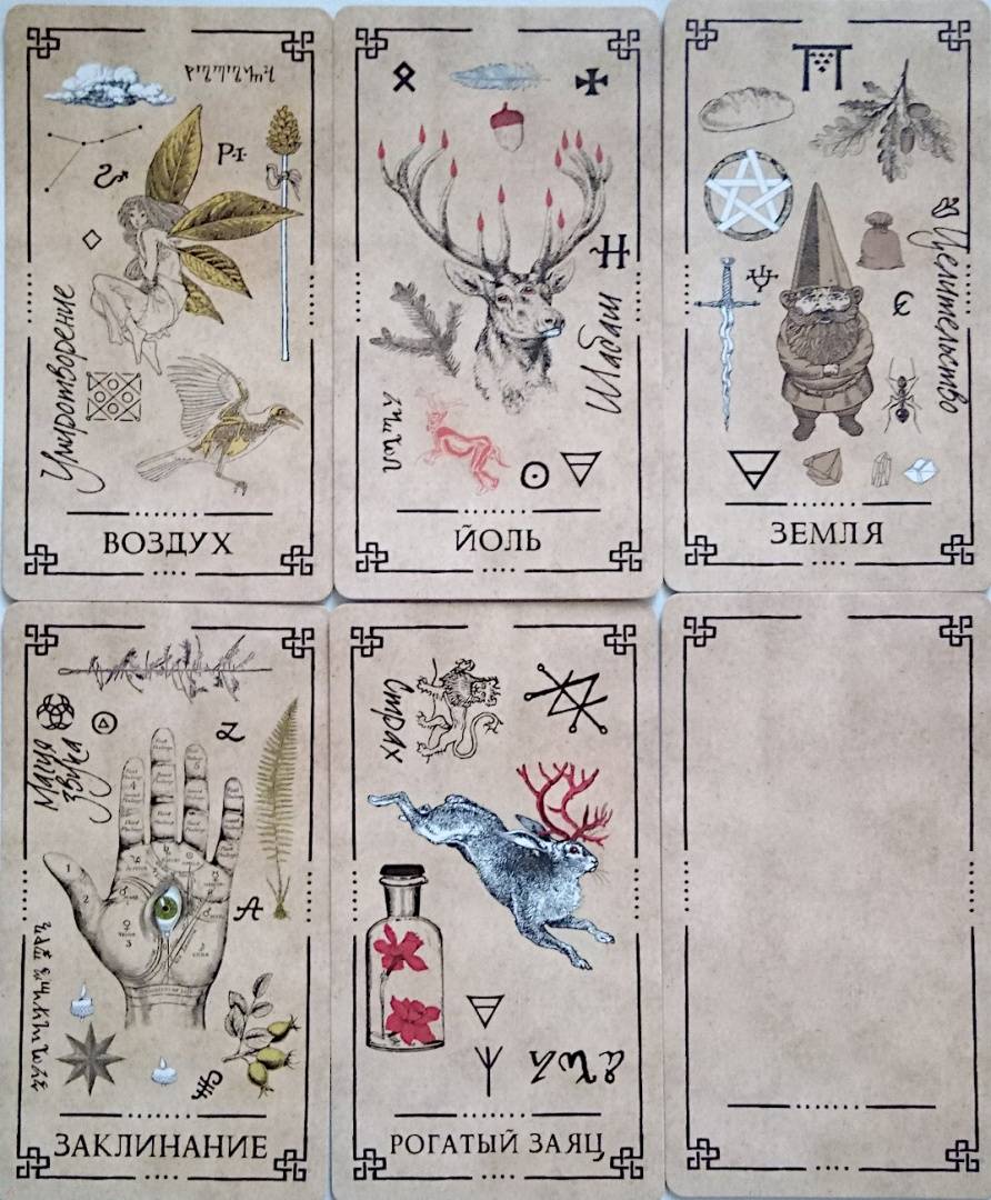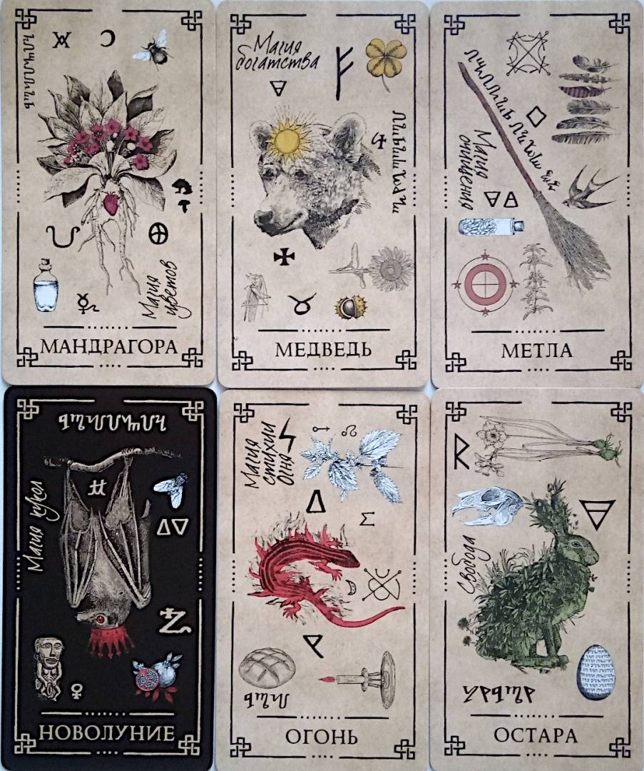 Описание"Оракул Теней" - он архаичен, прост и понятен, дик и первороден, он дышит лесом и пахнет свежей травой. На нем следы кроличьих лап, он шепотом рассказывает историю обителей мира Викки и передает вам их мудрые послания...Иллюстрации карт и саму систему придумал, разработал и воплотил в жизнь один и тот же человек - викканский маг Арабо Саргсян. В Оракуле нет мастей, Старших и Младших Арканов. Здесь все как на полке в шкафчике лесной ведьмы: каждая карта индивидуальна и передает нам свою мудрость, как и любая трава или корень. Вы можете задать вопрос викканским богам и вытащить карту либо воспользоваться раскладами, данными в книге. Однако Оракул предназначен не только для предсказаний, но и для магической работы. В книге вы найдете разные необычные задания: вы будете проводить с картой день, создавать из колоды талисманы и амулеты, сжигать карты, сшивать, раскрашивать и т. д.Необязательно следовать викканской вере, чтобы пользоваться этими картами. Зеленые боги знают, что вам посоветовать - вне зависимости от вашей религии (Арабо Саргсян).48 карт.Свернуть"Оракул Теней" - он архаичен, прост и понятен, дик и первороден, он дышит лесом и пахнет свежей травой. На нем следы кроличьих лап, он шепотом рассказывает историю обителей мира Викки и передает вам их мудрые послания...Иллюстрации карт и саму систему придумал, разработал и воплотил в жизнь один и тот же человек - викканский маг Арабо Саргсян. В Оракуле нет мастей, Старших и Младших Арканов. Здесь все как на полке в шкафчике лесной ведьмы: каждая карта индивидуальна и передает нам свою мудрость, как и любая трава или корень. Вы можете задать вопрос викканским богам и вытащить карту либо воспользоваться раскладами, данными в книге. Однако Оракул предназначен не только для предсказаний, но и для магической работы. В книге вы найдете разные необычные задания: вы будете проводить с картой день, создавать из колоды талисманы и амулеты, сжигать карты, сшивать, раскрашивать и т. д.Необязательно следовать викканской вере, чтобы пользоваться этими картами. Зеленые боги знают, что вам посоветовать - вне зависимости от вашей религии (Арабо Саргсян).48 карт.СвернутьСвернуть