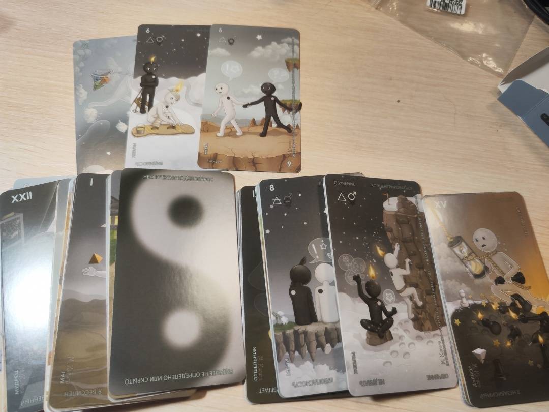Описание"Таро Инь и Ян" - уникальная колода, посвященная взаимодействию мужского и женского начала, которые присутствуют в каждом из нас. Это две первозданные энергии, баланс которых влияет на отношения в паре, духовное развитие, карьеру и все остальные сферы жизни. Когда гармония Инь и Ян нарушается, это приводит к конфликтам, недовольству собой и другими. А когда они уравновешены, вы можете легко преодолевать трудности, не боитесь мечтать и стремиться к звездам.Структура колоды во многом отличается от классического Таро: добавлен Старший аркан "Мудрец"; все карты имеют свои имена, по принципу оракула; многие трактовки и названия не совпадают с привычными. Но внешние различия лишь помогают обнажить внутреннюю структуру Таро, ее суть: путешествие души, развитие личности от одного состояния к другому. Это грандиозная история - обмен энергиями между Инь и Ян, который разворачивается и внутри отдельных карт, и на уровне колоды в целом.Карты наполнены уникальной авторской символикой. Карты помогут вам разобраться в причинах конфликтов и травм, научиться доверять себе и миру, загадывать смелые желания и воплощать их в жизнь.Свернуть"Таро Инь и Ян" - уникальная колода, посвященная взаимодействию мужского и женского начала, которые присутствуют в каждом из нас. Это две первозданные энергии, баланс которых влияет на отношения в паре, духовное развитие, карьеру и все остальные сферы жизни. Когда гармония Инь и Ян нарушается, это приводит к конфликтам, недовольству собой и другими. А когда они уравновешены, вы можете легко преодолевать трудности, не боитесь мечтать и стремиться к звездам.Структура колоды во многом отличается от классического Таро: добавлен Старший аркан "Мудрец"; все карты имеют свои имена, по принципу оракула; многие трактовки и названия не совпадают с привычными. Но внешние различия лишь помогают обнажить внутреннюю структуру Таро, ее суть: путешествие души, развитие личности от одного состояния к другому. Это грандиозная история - обмен энергиями между Инь и Ян, который разворачивается и внутри отдельных карт, и на уровне колоды в целом.Карты наполнены уникальной авторской символикой. Карты помогут вам разобраться в причинах конфликтов и травм, научиться доверять себе и миру, загадывать смелые желания и воплощать их в жизнь.СвернутьСвернуть