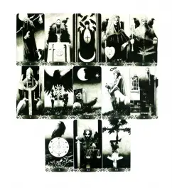 ОписаниеЭта колода принадлежит к новой серии Таро, в которой главным персонажем карт является чёрный Ворон. Он частый спутник ворожбы и колдовства. Его присутствие порой пугает, предвещая беды и напасти, так как вороны первыми появляются там, где горе и смерть. Но Ворон также самая мудрая птица, и знает, как избежать этих несчастий, давая свой полезный совет через это Таро.78 карт в новом удобном формате 60х113 ммИнструкция на русском языке по QR-кодуКомплектация: 78 карт с инструкцией на русском языке по QR-кодуМатериал: картон, бумагаРазмеры: 60х113 ммЭта колода принадлежит к новой серии Таро, в которой главным персонажем карт является чёрный Ворон. Он частый спутник ворожбы и колдовства. Его присутствие порой пугает, предвещая беды и напасти, так как вороны первыми появляются там, где горе и смерть. Но Ворон также самая мудрая птица, и знает, как избежать этих несчастий, давая свой полезный совет через это Таро.78 карт в новом удобном формате 60х113 ммИнструкция на русском языке по QR-кодуКомплектация: 78 карт с инструкцией на русском языке по QR-кодуМатериал: картон, бумагаРазмеры: 60х113 мм