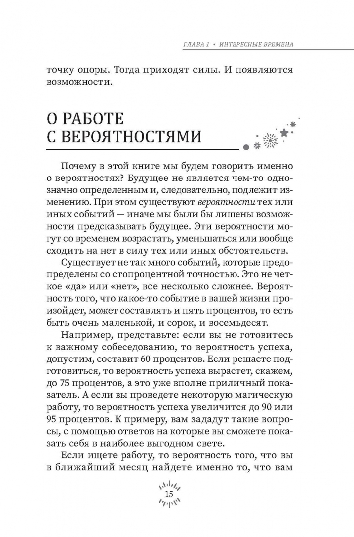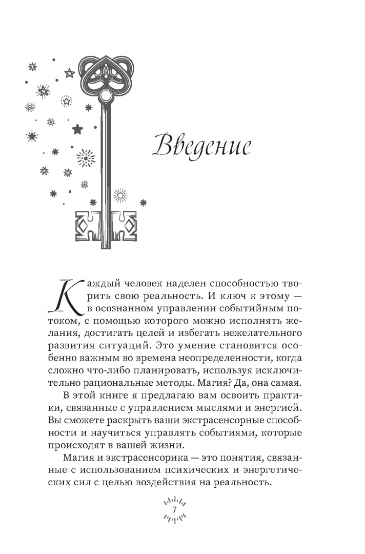 ОписаниеИздревле считалось, что магия - это удел избранных, наделенных особым даром. На самом же деле каждый из нас обладает уникальным экстрасенсорным потенциалом, который лишь ждет своего пробуждения. Просто большинство людей не осознают этого или не решаются развивать скрытые возможности.В действительности интуиция, ясновидение, управление энергиями - все это естественные способности человека. Они являются неотъемлемой частью нашей природы, но часто остаются невостребованными в современном - слишком рациональном и прагматичном - мире."Каждый человек наделен способностью творить свою реальность. И ключ к этому - в осознанном управлении событийным потоком, с помощью которого можно исполнять желания, достигать целей и избегать нежелательного развития ситуаций. Это умение становится особенно важным во времена неопределенности, когда сложно что-либо планировать, используя исключительно рациональные методы. Магия? Да, она самая.В этой книге я предлагаю вам освоить практики, связанные с управлением мыслями и энергией. Вы сможете раскрыть ваши экстрасенсорные способности и научиться управлять событиями, которые происходят в вашей жизни".Имлу ХагенСвернутьИздревле считалось, что магия - это удел избранных, наделенных особым даром. На самом же деле каждый из нас обладает уникальным экстрасенсорным потенциалом, который лишь ждет своего пробуждения. Просто большинство людей не осознают этого или не решаются развивать скрытые возможности.В действительности интуиция, ясновидение, управление энергиями - все это естественные способности человека. Они являются неотъемлемой частью нашей природы, но часто остаются невостребованными в современном - слишком рациональном и прагматичном - мире."Каждый человек наделен способностью творить свою реальность. И ключ к этому - в осознанном управлении событийным потоком, с помощью которого можно исполнять желания, достигать целей и избегать нежелательного развития ситуаций. Это умение становится особенно важным во времена неопределенности, когда сложно что-либо планировать, используя исключительно рациональные методы. Магия? Да, она самая.В этой книге я предлагаю вам освоить практики, связанные с управлением мыслями и энергией. Вы сможете раскрыть ваши экстрасенсорные способности и научиться управлять событиями, которые происходят в вашей жизни".Имлу ХагенСвернутьСвернуть