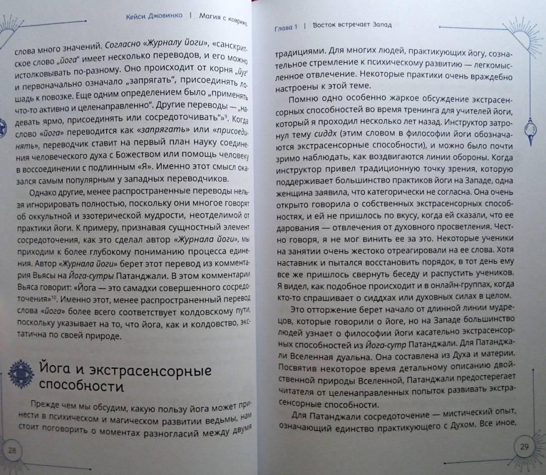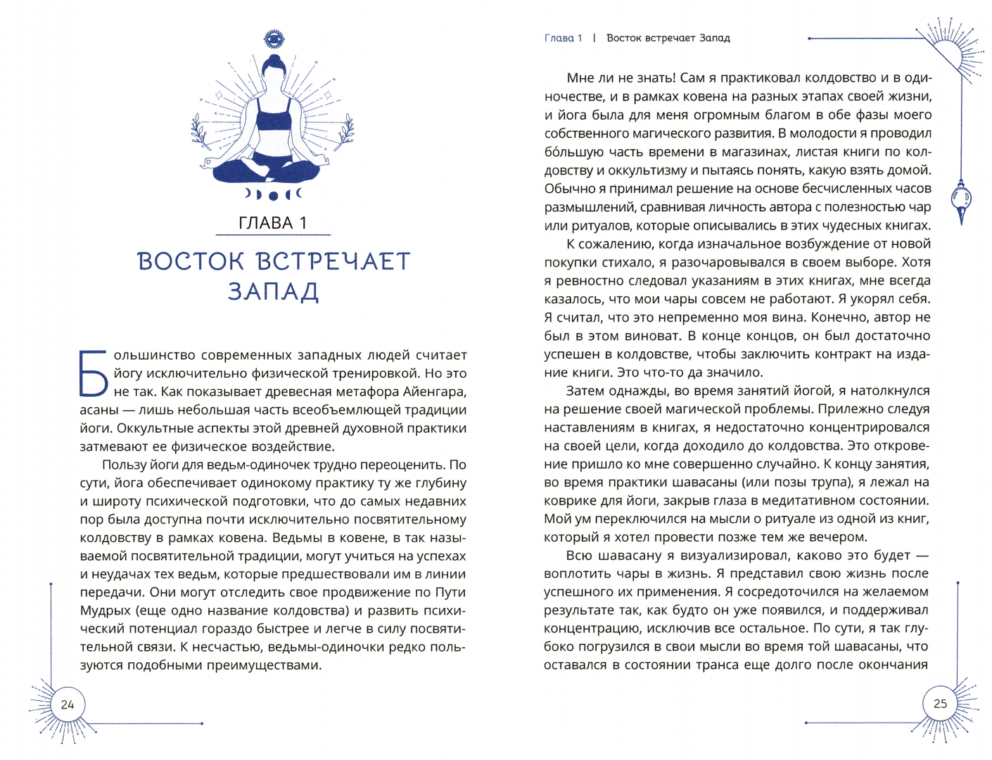 ОписаниеВ этой книге гармонично соединяются восточный и западный путь познания мира. Автор покажет и докажет, что магическая традиция полна заимствований из йоги, и расскажет, как усилить своё колдовство с помощью асан.Вы ощутите, что ваше тело - это настоящий магический инструмент. Йога научит внимательно относиться к своему здоровью, поддерживать хорошую физическую форму, тем самым качественно улучшая работу с тонкой энергией.Книга содержит множество иллюстраций и пояснений к выполнению разных асан, подробную информацию о том, для каких магических целей и когда лучше прибегать к тому или иному циклу упражнений. Также вы найдёте здесь медитации и визуализации для самых разных задач: исцеления, благополучия, активации чакр, астральной проекции.Со временем постоянная практика йоги поможет вам развить психические силы, чтобы эффективно колдовать и проводить магические ритуалы, достигая любых поставленных целей.В этой книге гармонично соединяются восточный и западный путь познания мира. Автор покажет и докажет, что магическая традиция полна заимствований из йоги, и расскажет, как усилить своё колдовство с помощью асан.Вы ощутите, что ваше тело - это настоящий магический инструмент. Йога научит внимательно относиться к своему здоровью, поддерживать хорошую физическую форму, тем самым качественно улучшая работу с тонкой энергией.Книга содержит множество иллюстраций и пояснений к выполнению разных асан, подробную информацию о том, для каких магических целей и когда лучше прибегать к тому или иному циклу упражнений. Также вы найдёте здесь медитации и визуализации для самых разных задач: исцеления, благополучия, активации чакр, астральной проекции.Со временем постоянная практика йоги поможет вам развить психические силы, чтобы эффективно колдовать и проводить магические ритуалы, достигая любых поставленных целей.