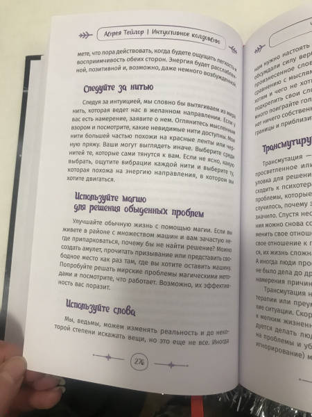 ОписаниеИнтуитивное колдовство - это колдовство, в котором реализуются разные подходы и концепции, оно не имеет строгих ограничений и не опирается на авторитетных личностей. Интуитивные ведьмы отличаются тем, что полагаются на свои навыки, отточенные в осознанной работе с энергией.В этом виде колдовства есть несколько основополагающих принципов.- Первый принцип - прислушивайтесь к инстинктам. Интуиция - лучший проводник, но время от времени мы не слышим ее в ежедневной суете. Важно знать, что вы на самом деле чувствуете, и уважать это.- Второй принцип - вы являетесь энергией. Всё во Вселенной - энергия, включая и нас самих. При помощи интуиции мы можем сбалансировать энергетические потоки внутри и вне нас.- Третий принцип - вы являетесь магией. Когда вы соединяете энергию со своими интуитивными желаниями, применяя магические знания, то можете изменить мир.Интуитивное колдовство - практика, которую создаете вы сами, очень личная. А цель этой книги - научить способам и средствам обретения внутренней силы, необходимой для духовного развития.СвернутьИнтуитивное колдовство - это колдовство, в котором реализуются разные подходы и концепции, оно не имеет строгих ограничений и не опирается на авторитетных личностей. Интуитивные ведьмы отличаются тем, что полагаются на свои навыки, отточенные в осознанной работе с энергией.В этом виде колдовства есть несколько основополагающих принципов.- Первый принцип - прислушивайтесь к инстинктам. Интуиция - лучший проводник, но время от времени мы не слышим ее в ежедневной суете. Важно знать, что вы на самом деле чувствуете, и уважать это.- Второй принцип - вы являетесь энергией. Всё во Вселенной - энергия, включая и нас самих. При помощи интуиции мы можем сбалансировать энергетические потоки внутри и вне нас.- Третий принцип - вы являетесь магией. Когда вы соединяете энергию со своими интуитивными желаниями, применяя магические знания, то можете изменить мир.Интуитивное колдовство - практика, которую создаете вы сами, очень личная. А цель этой книги - научить способам и средствам обретения внутренней силы, необходимой для духовного развития.СвернутьСвернуть