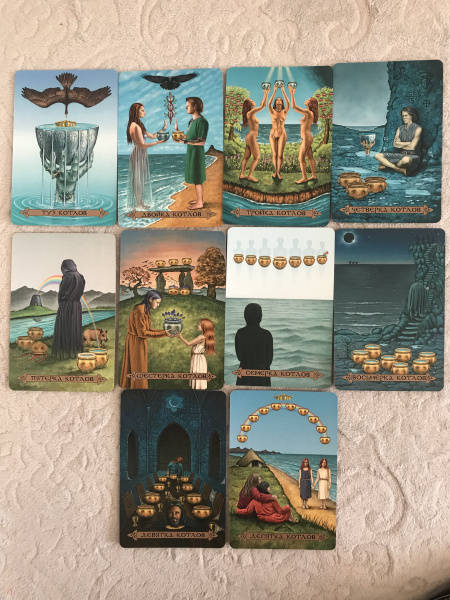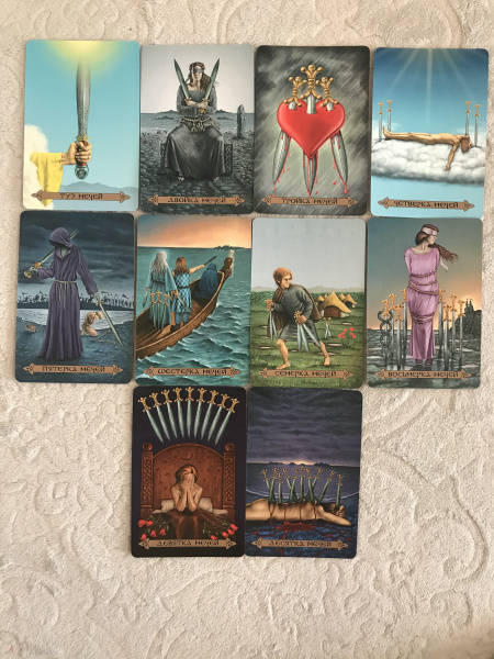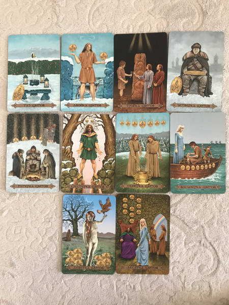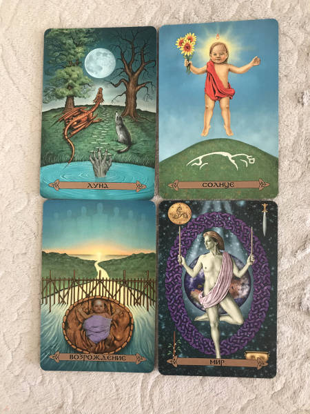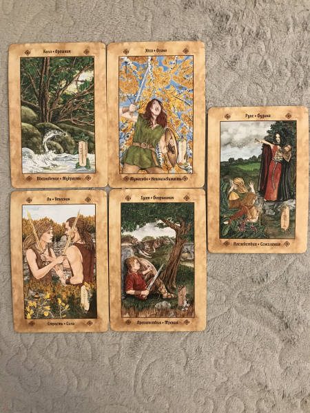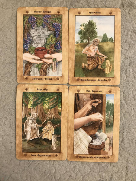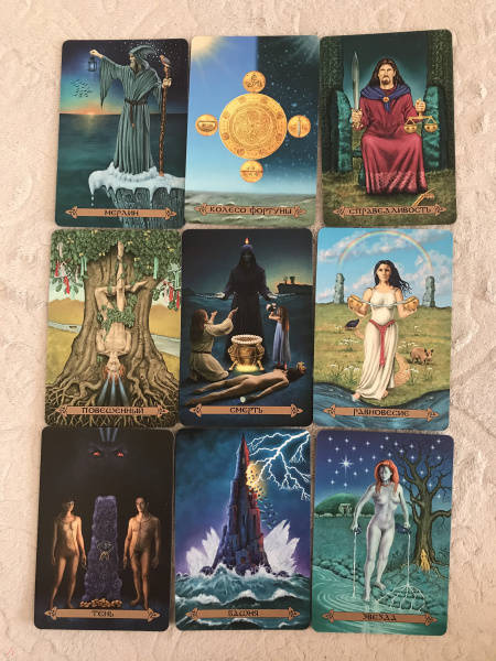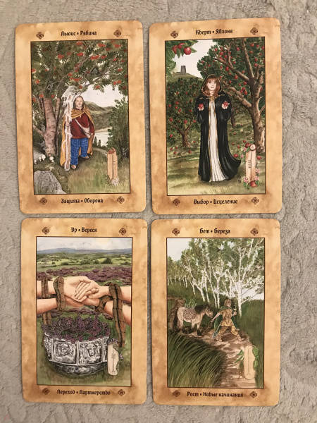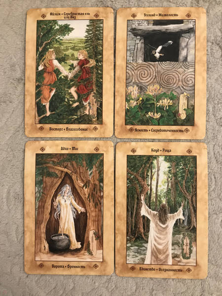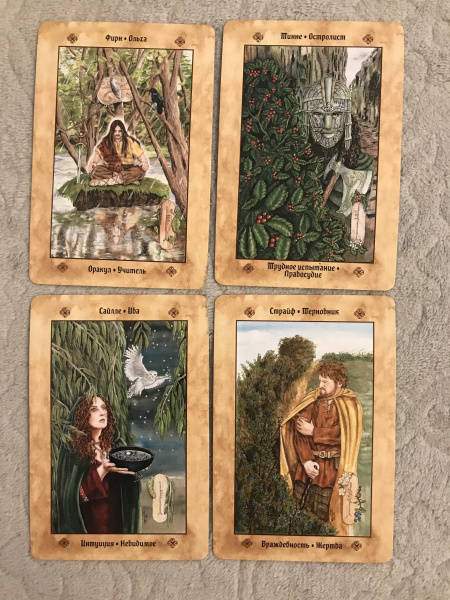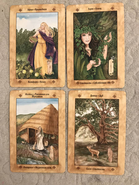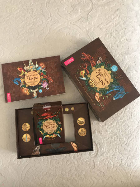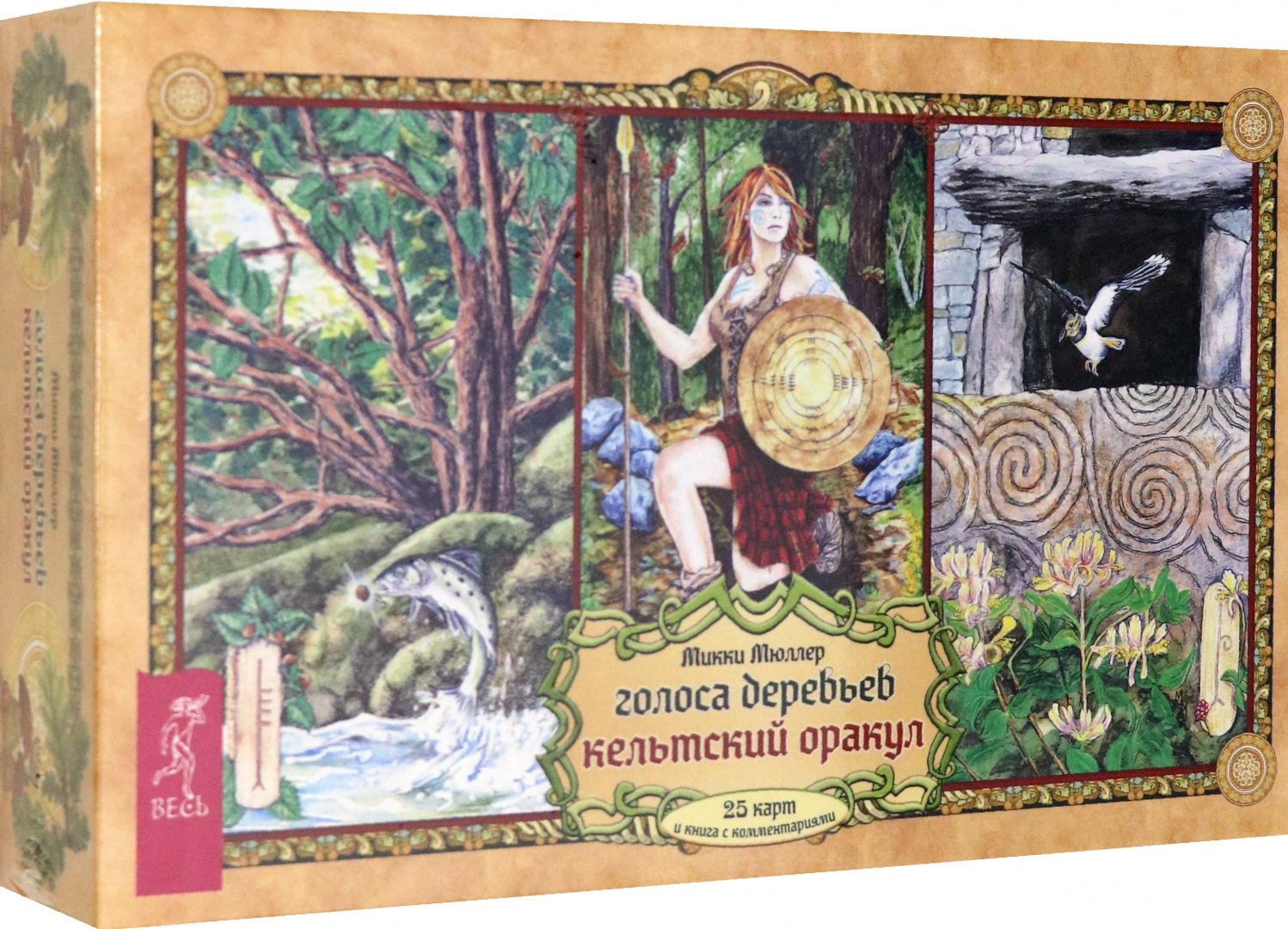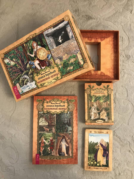 ОписаниеВашему вниманию предлагаются 2 книги + 2 набора карт.1. Голоса деревьев. Кельтский оракулПеред вами уникальная, великолепно иллюстрированная колода, созданная по системе древесного огама - алфавита древних кельтов, который применяли для предсказаний и в магических целях.В далекие времена кельты верили, что в каждом дереве живет волшебный дух, с которым можно общаться благодаря магии. Древний народ изучал специфические духовные вибрации деревьев и их магические свойства. Эти знания дошли до нас в легендах и сказаниях. Сегодня вы тоже можете обратиться к деревьям, духам, живущим в них, - за мудрым советом, духовной поддержкой и целительной энергией.Подарите себе возможность овладеть богатейшей предсказательной практикой древних кельтов, развить интуицию и образное мышление. Откройте свое сердце, и вы услышите голоса деревьев!О чем книгаВ данный комплект входит колода из 25 карт и книга с комментариями, в которой вы найдете:- интересный рассказ об истории кельтов и их связи с волшебным миром деревьев;- объяснение принципа действия кельтского оракула;- рекомендации по работе с картами - освящение карт, чтение посланий деревьев, изготовление атрибутов для гадания;- подробное описание и толкование каждой карты в прямом и перевернутом положениях;- ритуалы магии деревьев - для предсказаний и медитаций;- три карточных расклада для прояснения вопросов любой сложности.Почему карты стоит купить"Когда мы находимся вблизи деревьев, то можем почувствовать умиротворение. Свет, проходящий через зеленую крону летним днем, способен успокоить наш дух, наполнить сердца радостью и придать сил, чтобы мы ощутили себя молодыми и свободными.Когда мы сажаем дерево, то испытываем удовлетворение, поскольку понимаем, что это дерево будет расти и без нас, радовать других и вдохновлять. Мы делаем это во благо Земли.Деревья по-прежнему наш приют, наша связь со священной природой и сила, ежедневно исцеляющая наши жизни" (Микки Мюллер).Данный набор дарит реальную возможность приобщиться к таинственному наследию кельтов, которые искренне почитали лес и видели в деревьях энергию, силу и мудрость Земли.Для кого эти картыОракул снабжен подробной книгой с комментариями, поэтому работать с колодой смогут даже новички в области предсказаний, магии и Таро.В целом карты адресованы всем, кто:- интересуется предсказательными практиками и Таро; - изучает историю кельтов, язычества и магического наследия предков;- с почтением и уважением относится к миру Природы;- ищет ответы на вопросы о своем предназначении, о взаимоотношениях с близкими людьми, о перспективах развития в той или иной области;- стремится глубоко познать свой внутренний мир.Колода и книга упакованы в удобную прочную коробку, красиво оформлены - они станут великолепным подарком!Размер карт: 110х75 мм.2. Кельтское ТароСтоит вам открыть первую страницу книги или распаковать коробочку с картами, как вы погрузитесь в мир кельтов - с его богами, богинями, магическими существами и мудрыми древними сказаниями. Это не просто колода карт. Это сокровищница, наполненная кельтскими преданиями (из которых вы почерпнете немало полезных советов для обычной жизни) и магических гадательных практик (которыми пользовались древние кельты).Невероятно красивые карты, отрисованные вручную художником-кельтистом, пом